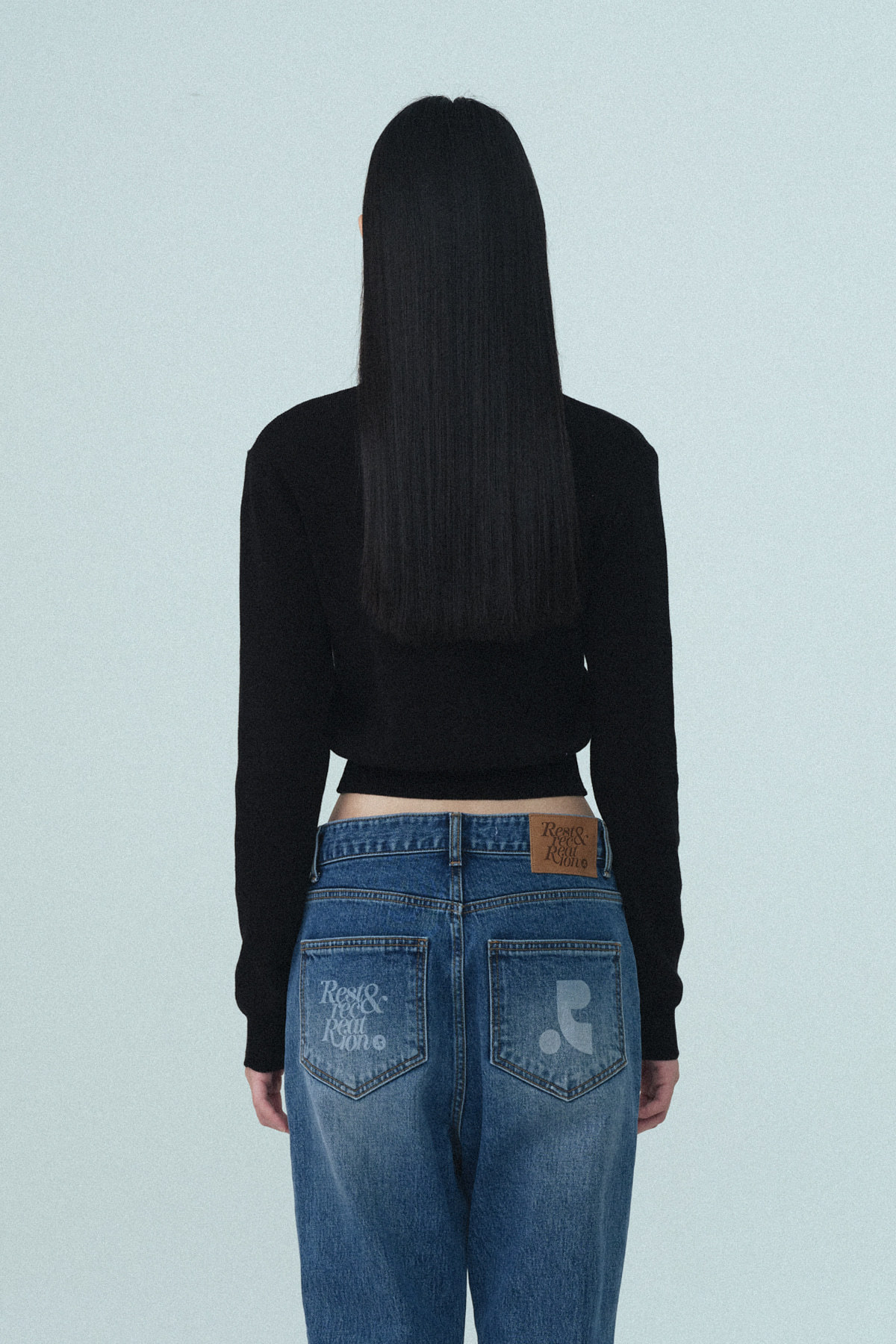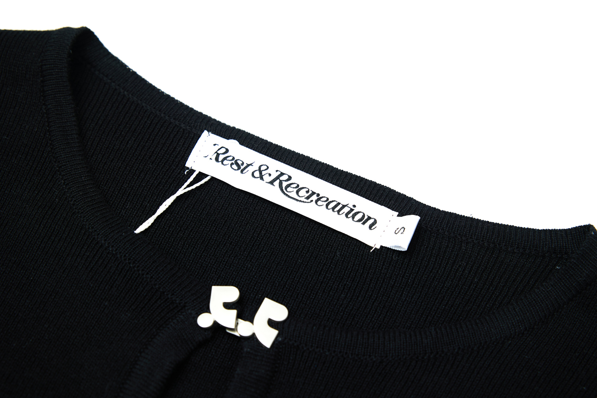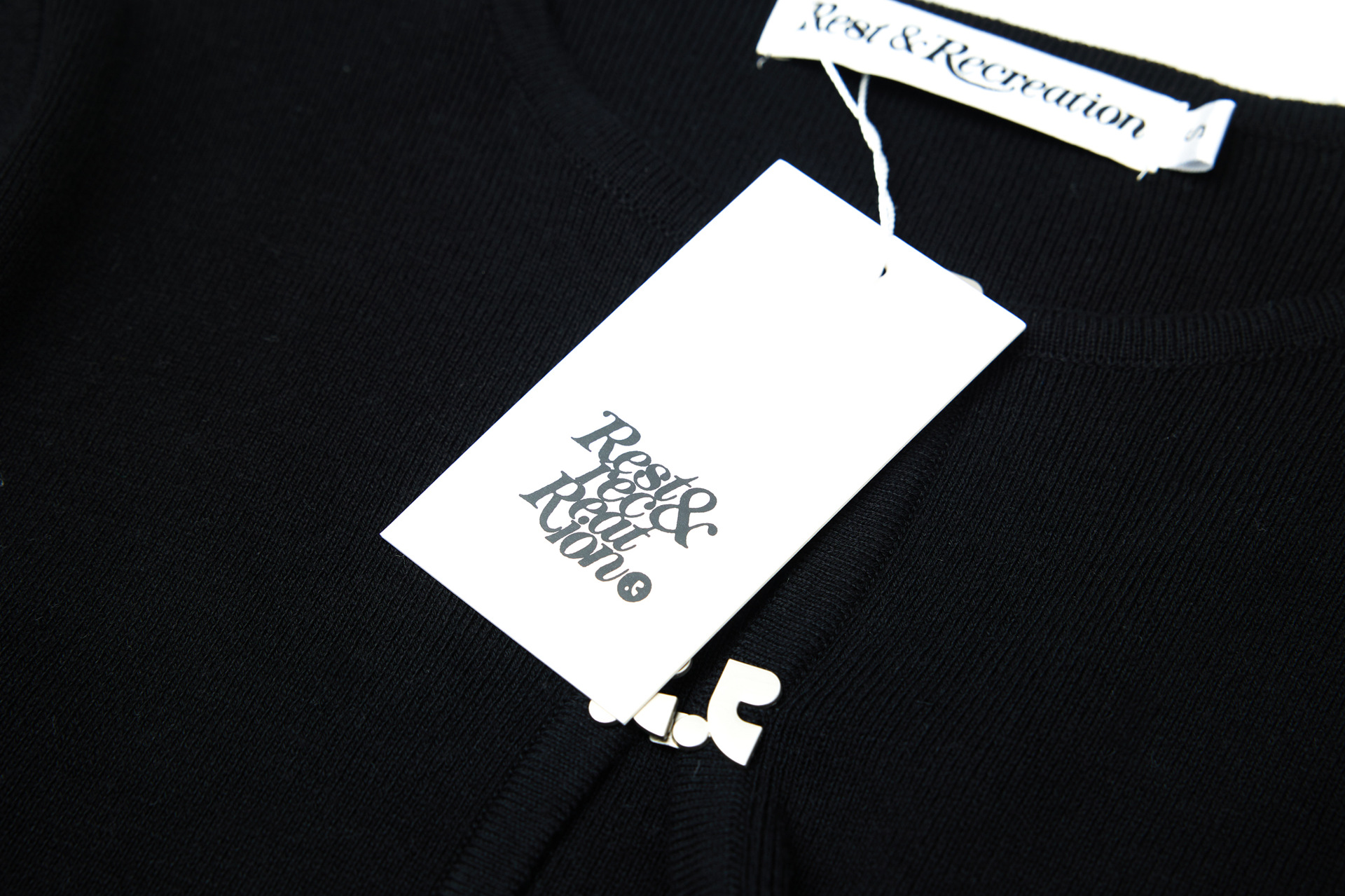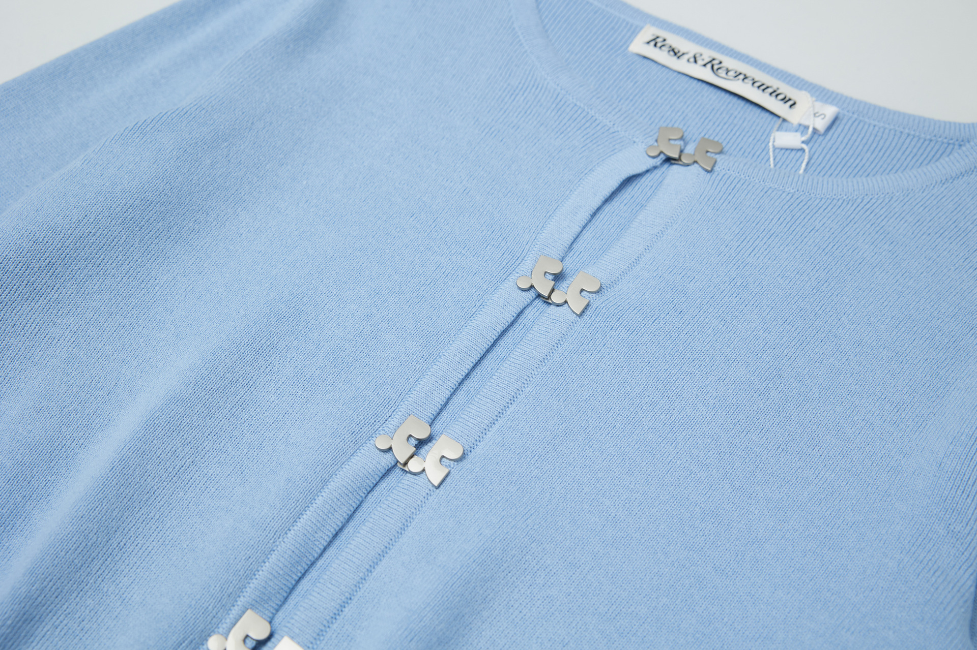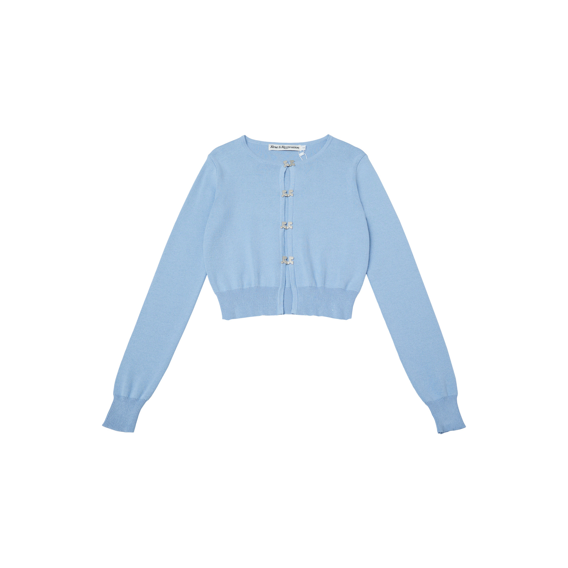 한국 restandrecreation 더블 R 버튼 니트 카디건 재킷 여성 RR 슬림핏 크롭 탑
