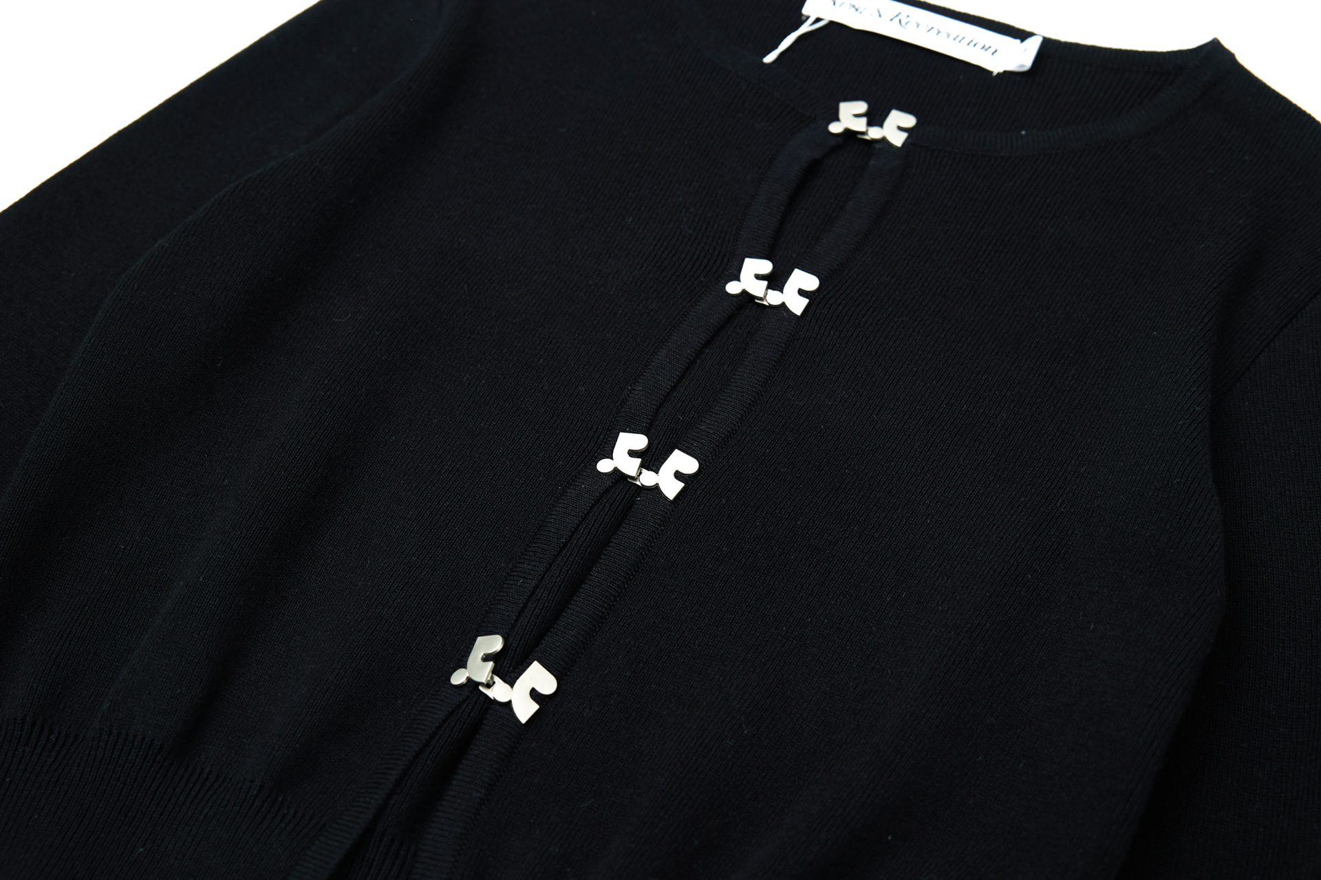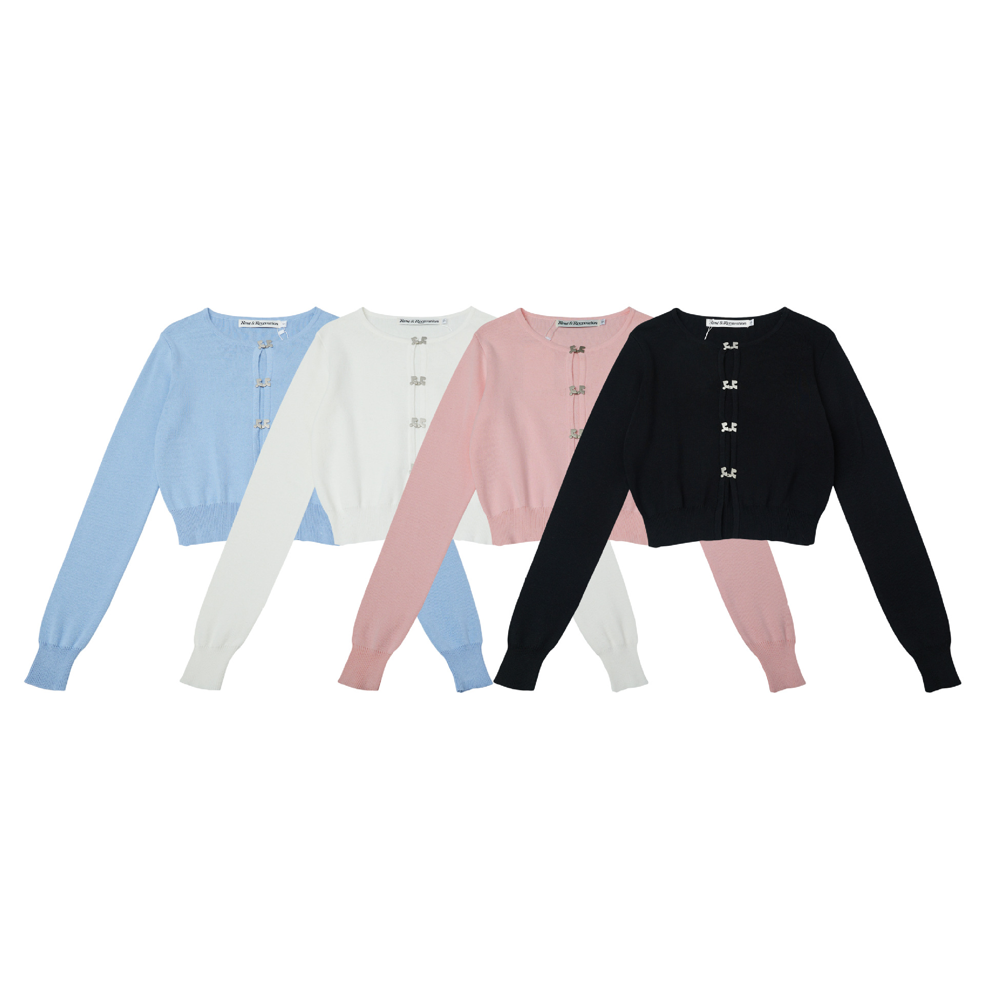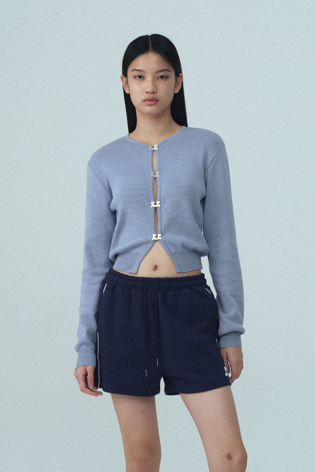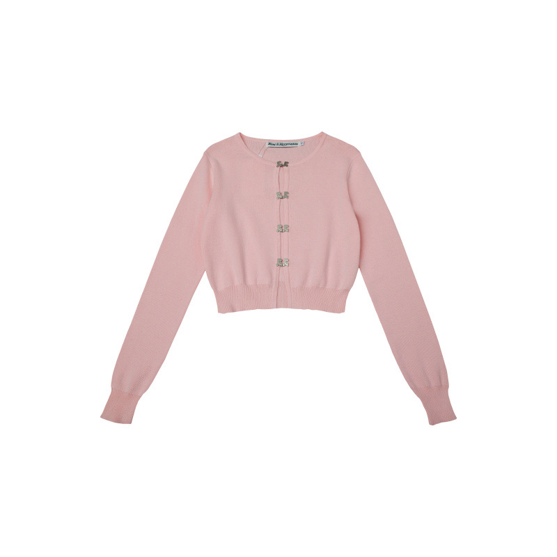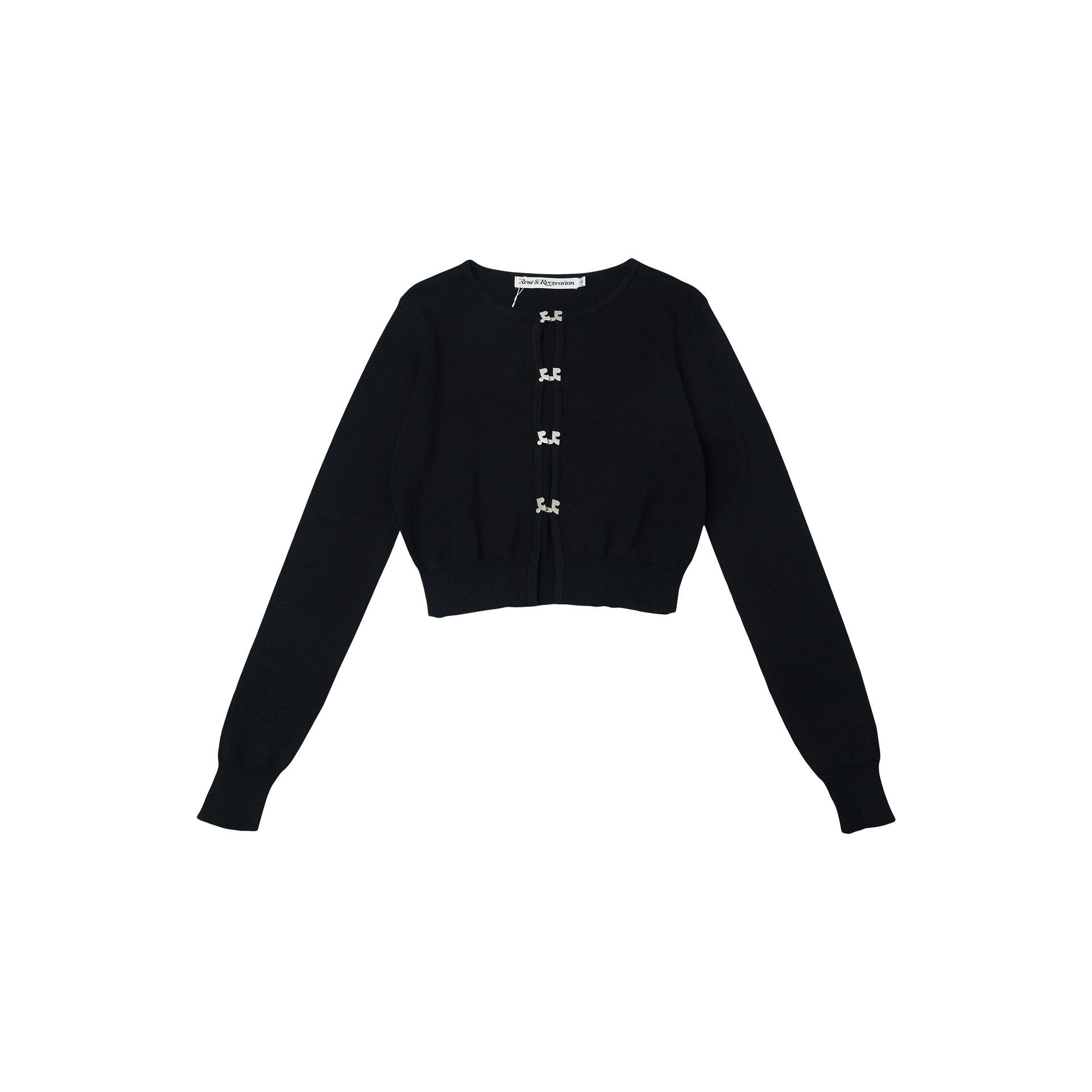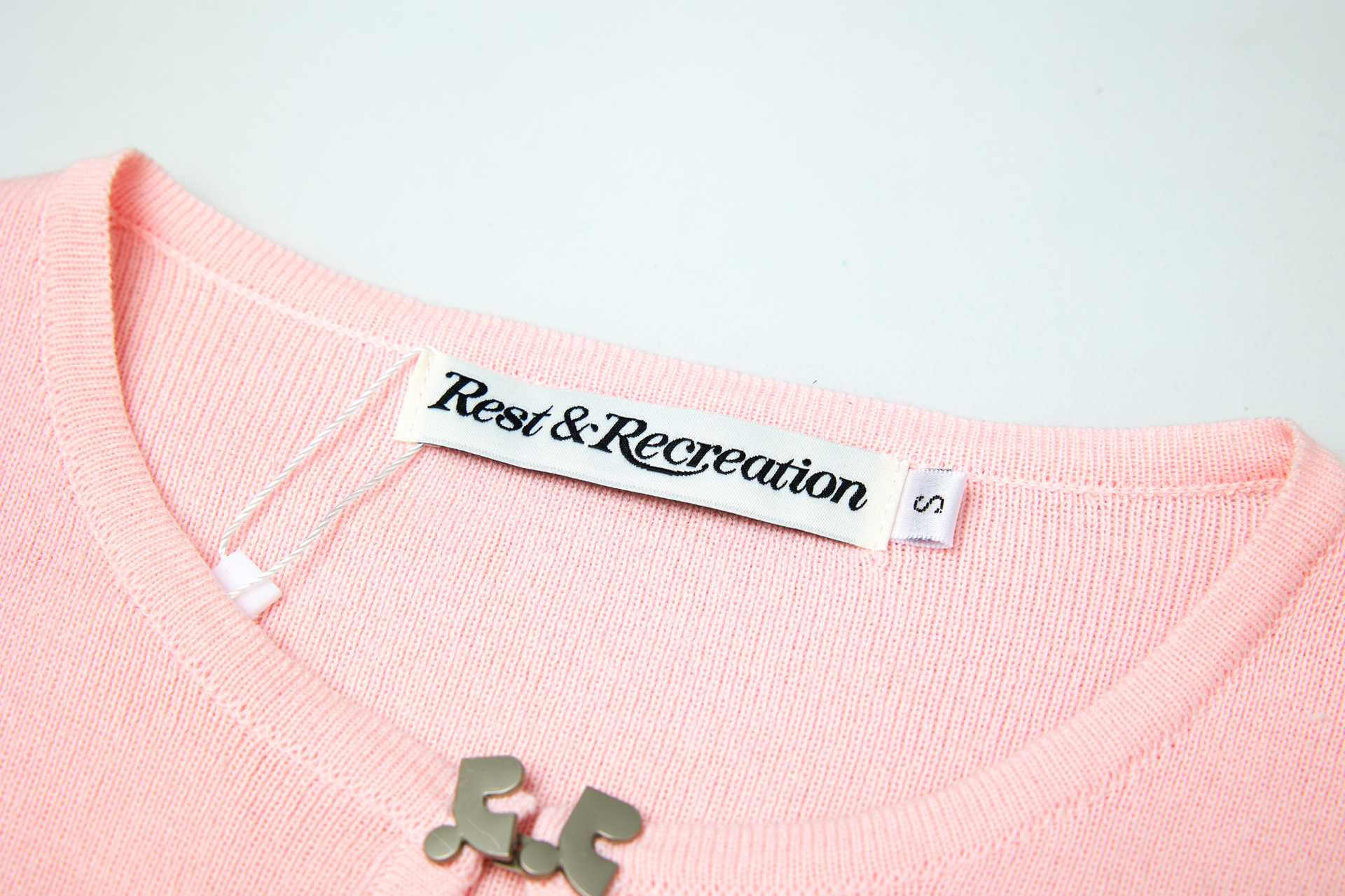 한국 restandrecreation 더블 R 버튼 니트 카디건 재킷 여성 RR 슬림핏 크롭 탑