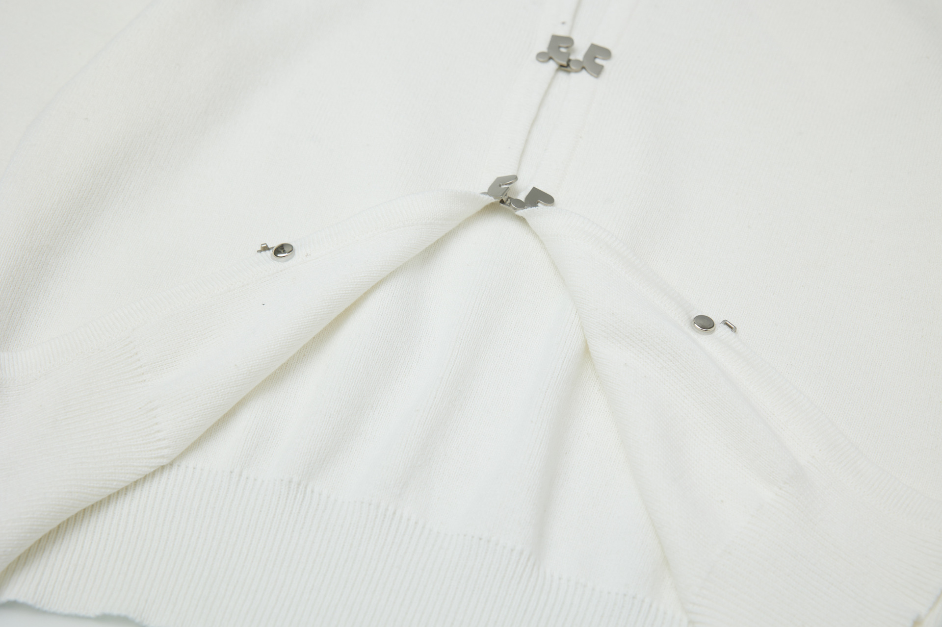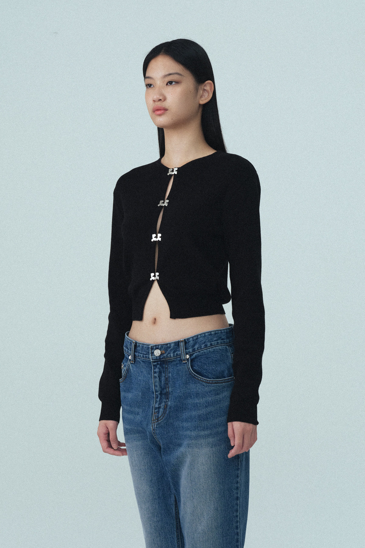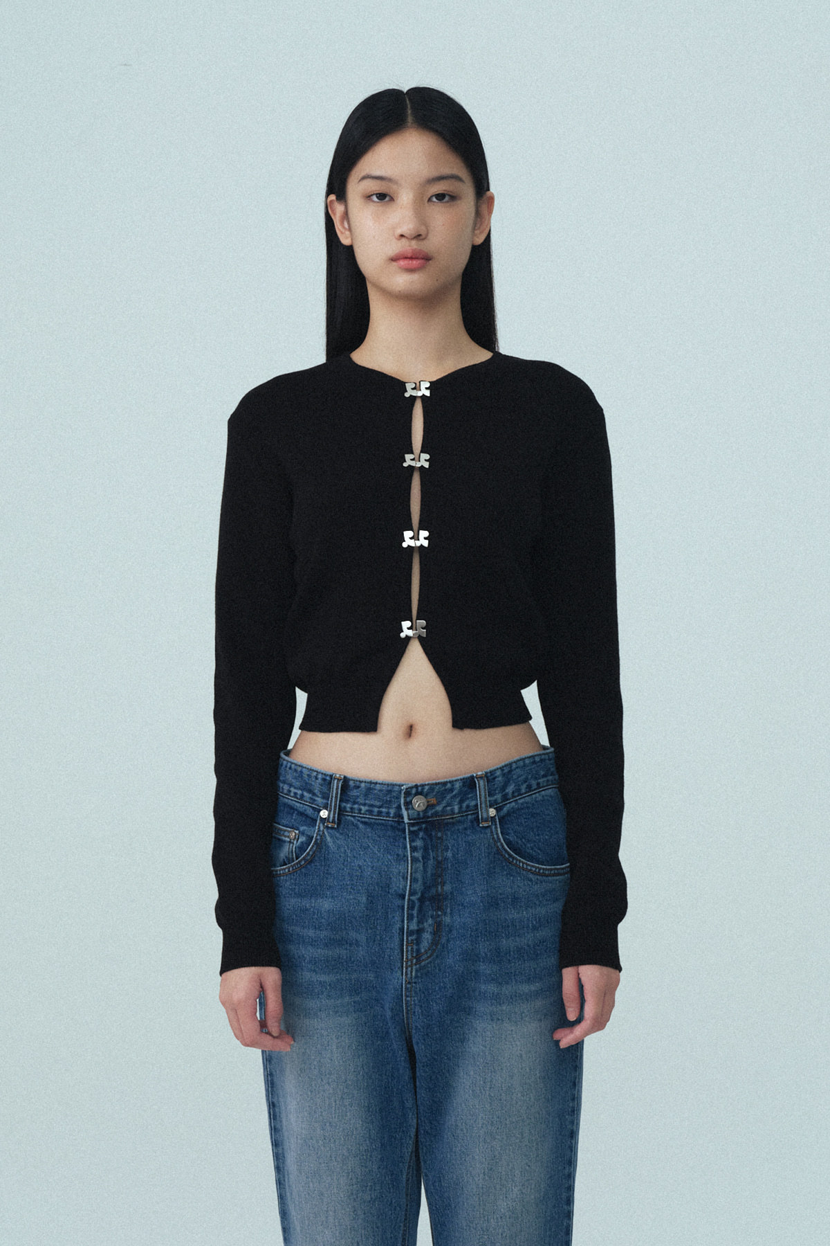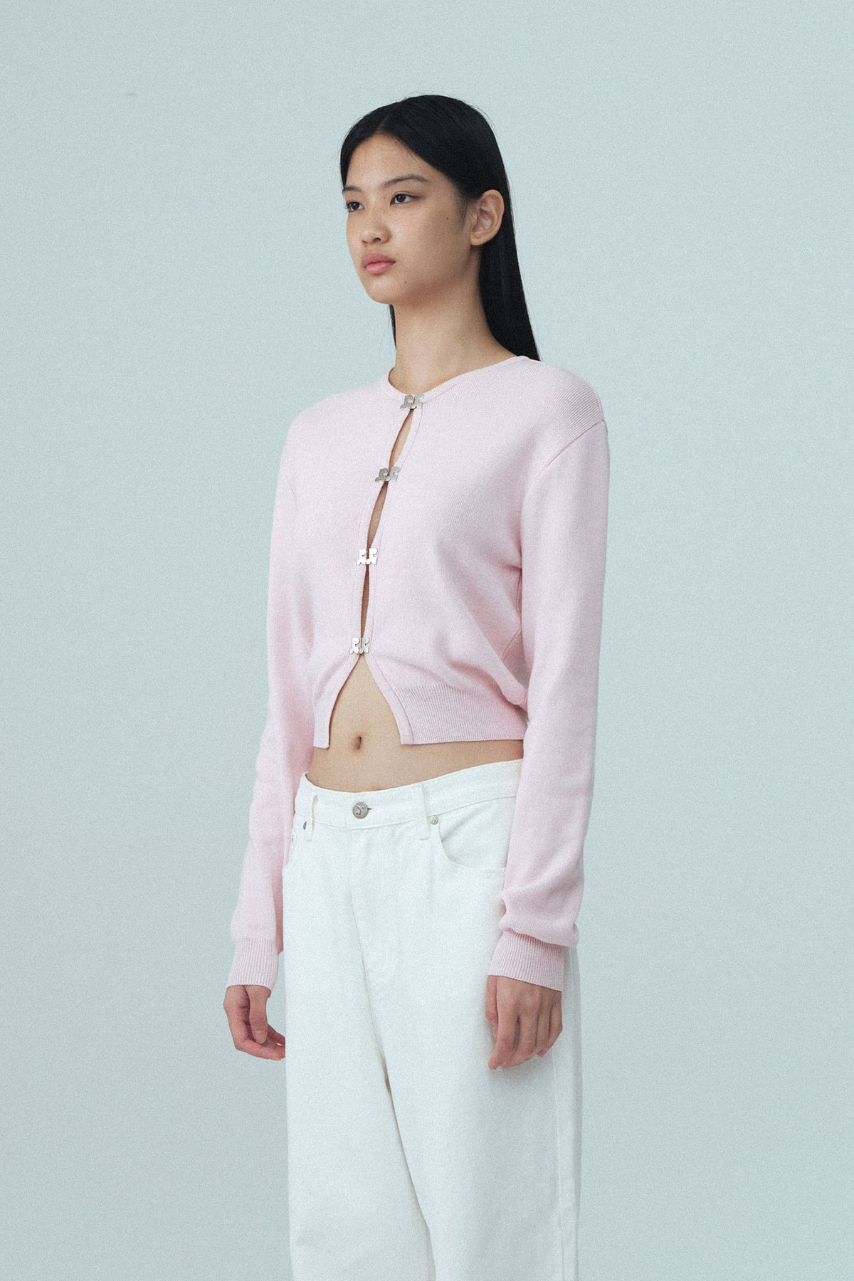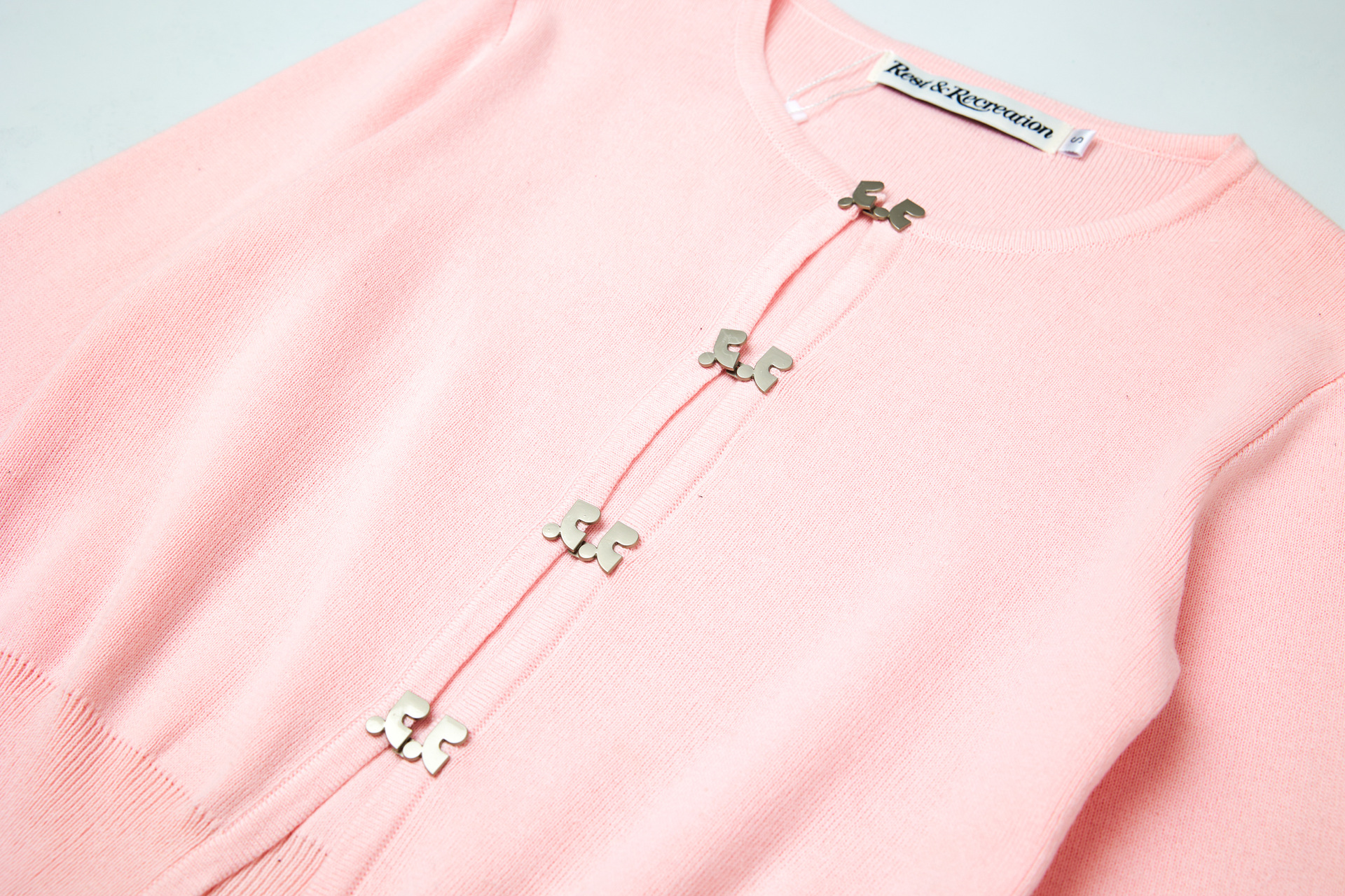 한국 restandrecreation 더블 R 버튼 니트 카디건 재킷 여성 RR 슬림핏 크롭 탑