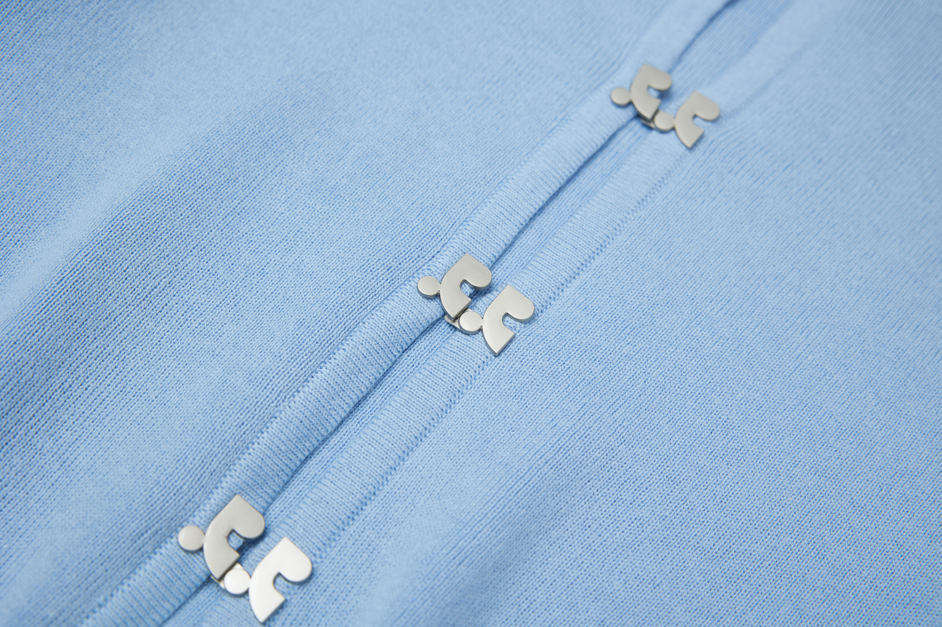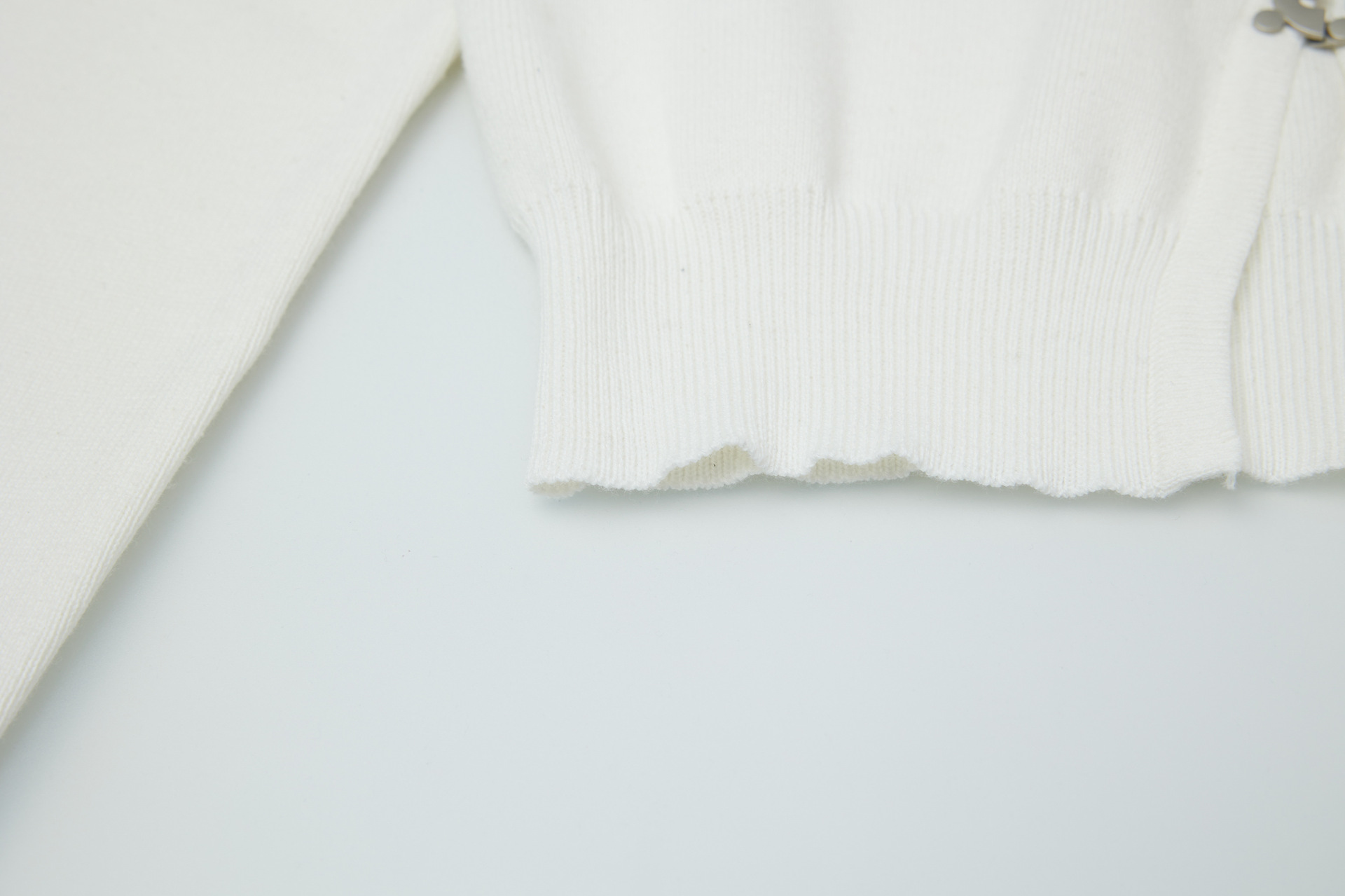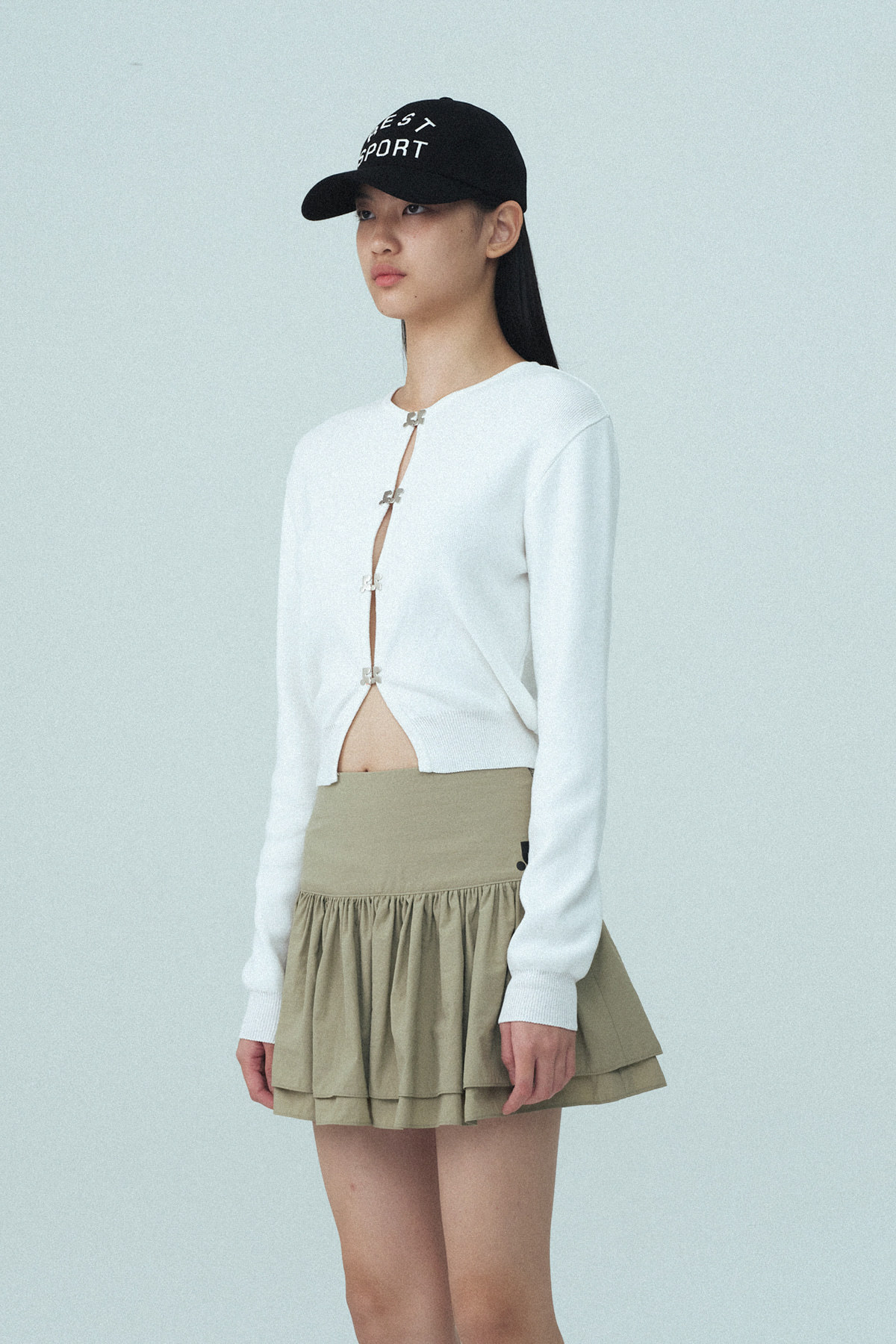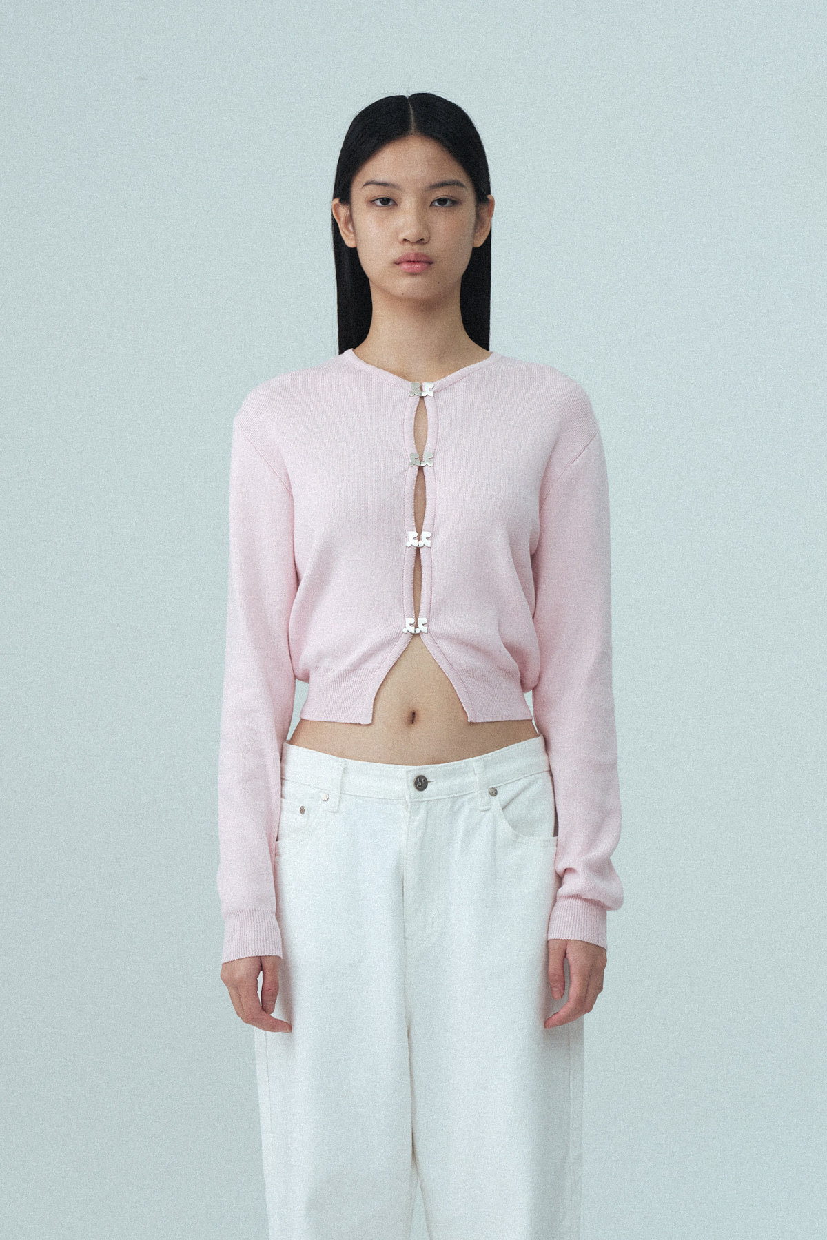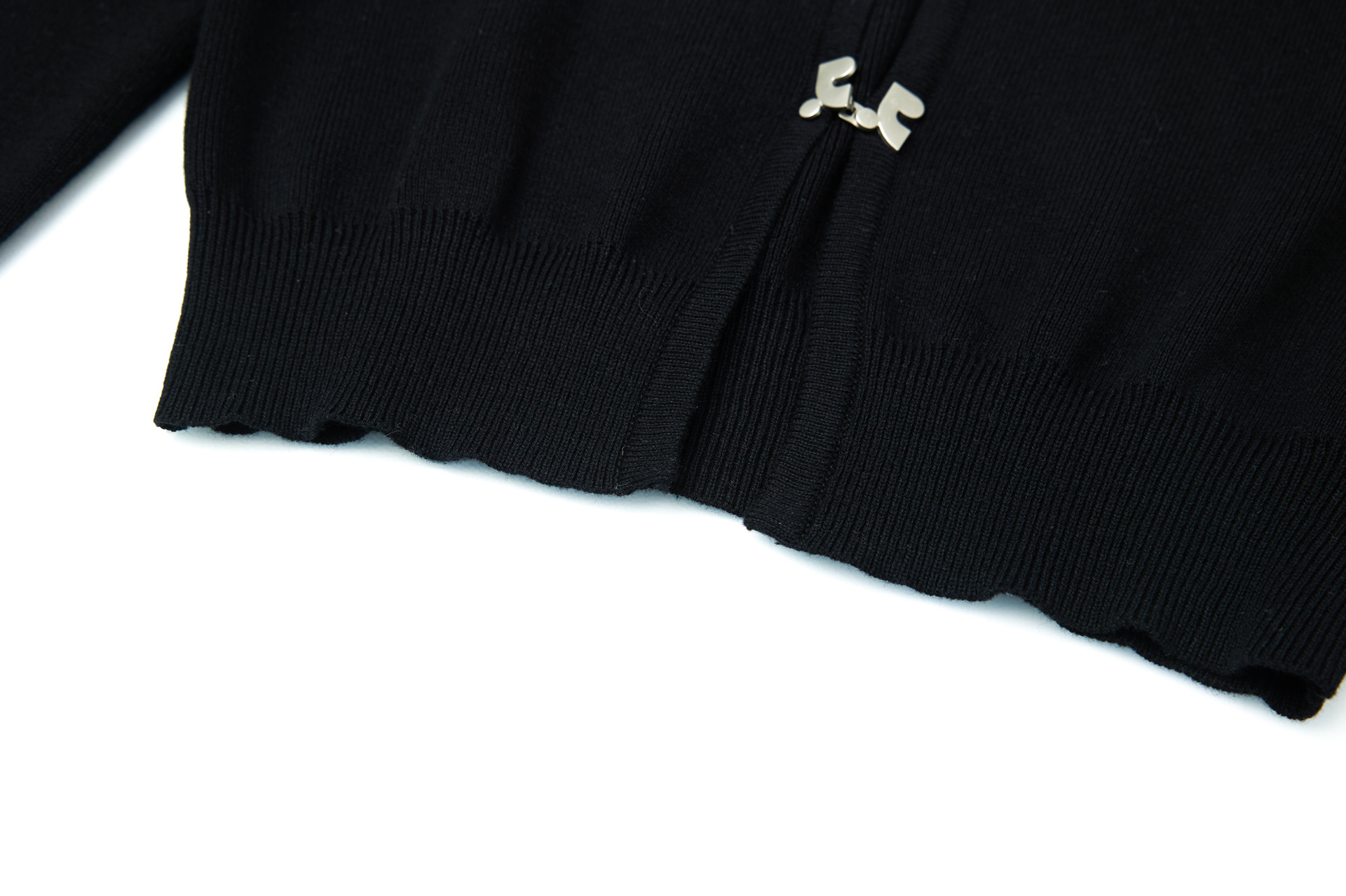 한국 restandrecreation 더블 R 버튼 니트 카디건 재킷 여성 RR 슬림핏 크롭 탑