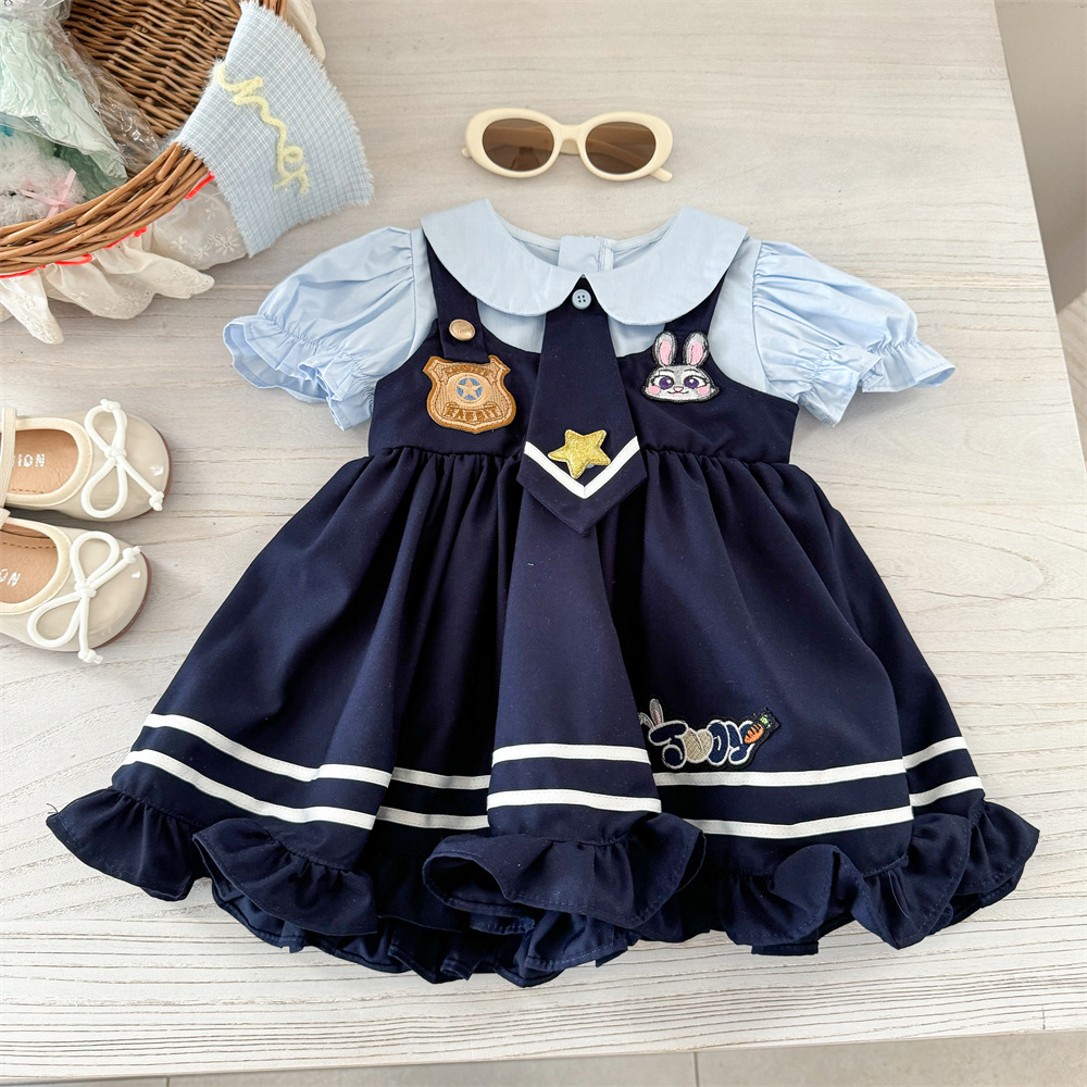 스위트샤오시 여아 로리타 공주 드레스, 세련된 2025년 신상 여름 아기 여아 토끼 경찰관 원피스스토어 가기