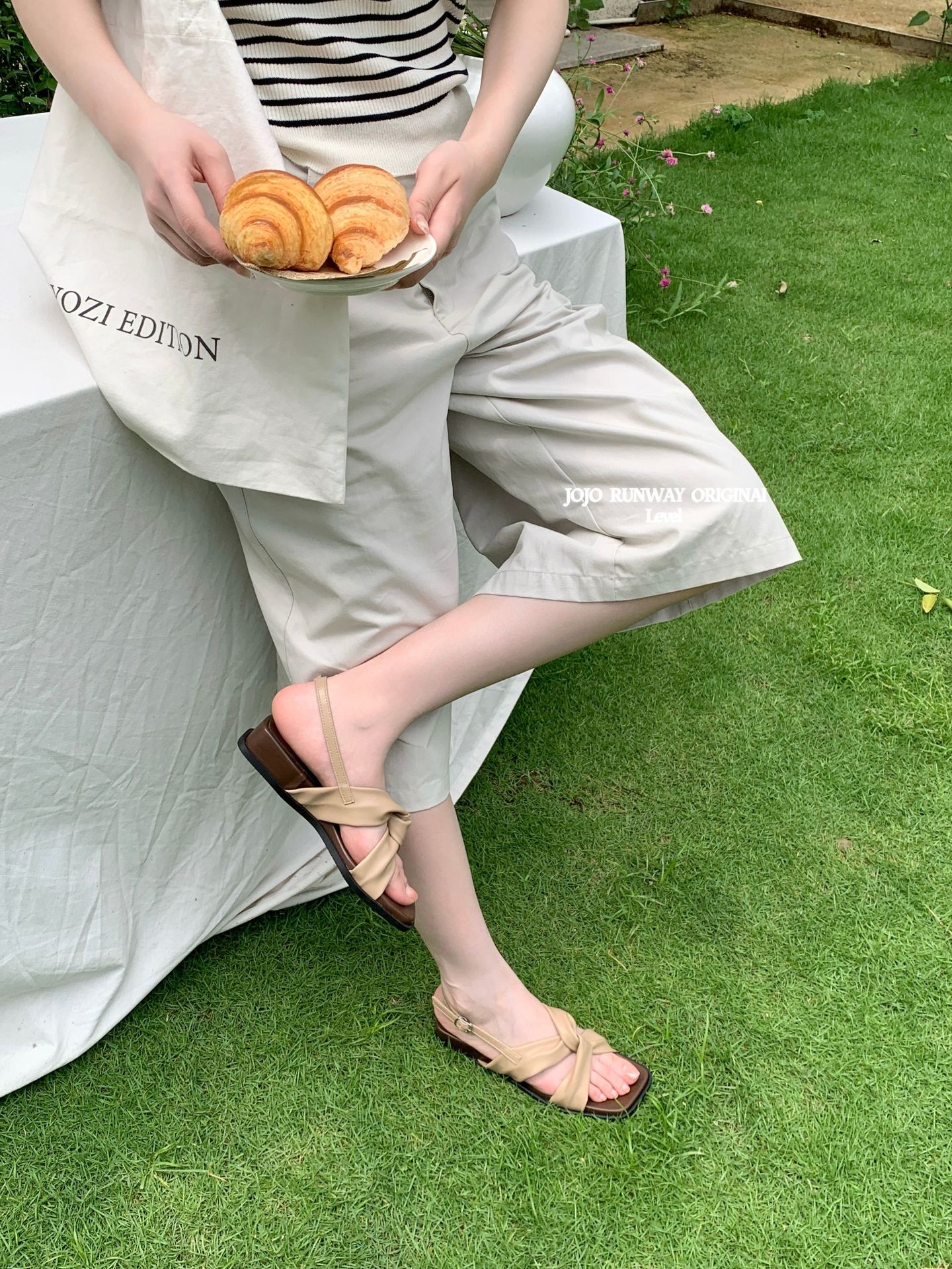 2025 레트로 로마 오픈 토 소프트 가죽 크로스 스트랩 샌들 여성 의상 여름 쐐기 스커트 원 스트랩 샌들스토어 가기