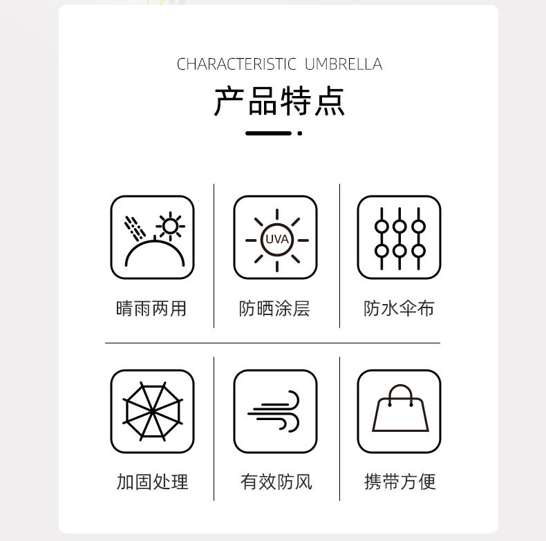 클리어런스 도매 신선한 접이식 우산 태양 보호 UV 보호 비 또는 빛 비닐 태양 우산 파라솔 광고스토어 가기