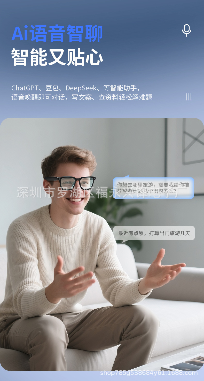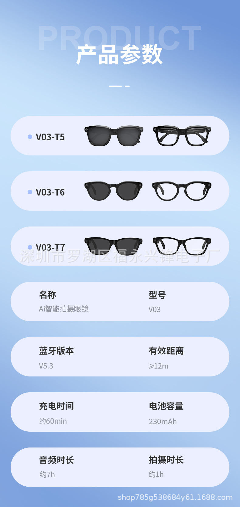 국경 간 신제품 사진 인식 번역 AI 스마트 안경 블랙 테크놀로지 통화 및 음악 듣기 남성과 여성을 위한 Bluetooth 오디오스토어 가기