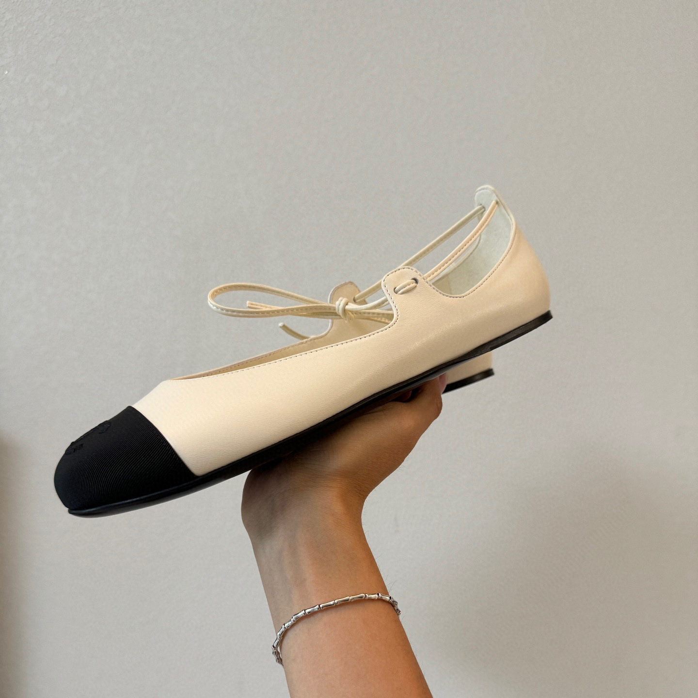 봄 패션 발레 슈즈, 리본 플랫 슈즈, 프렌치 가죽 컬러 블록 스몰 프래그런스 슈즈, 양가죽 여성 슈즈