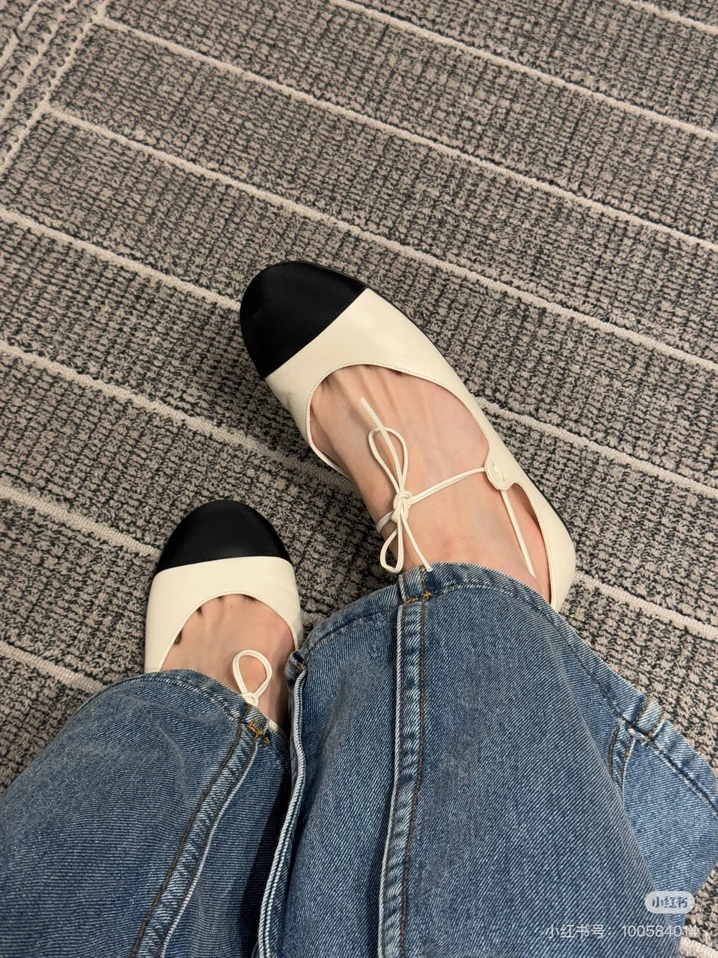봄 패션 발레 슈즈, 리본 플랫 슈즈, 프렌치 가죽 컬러 블록 스몰 프래그런스 슈즈, 양가죽 여성 슈즈스토어 가기