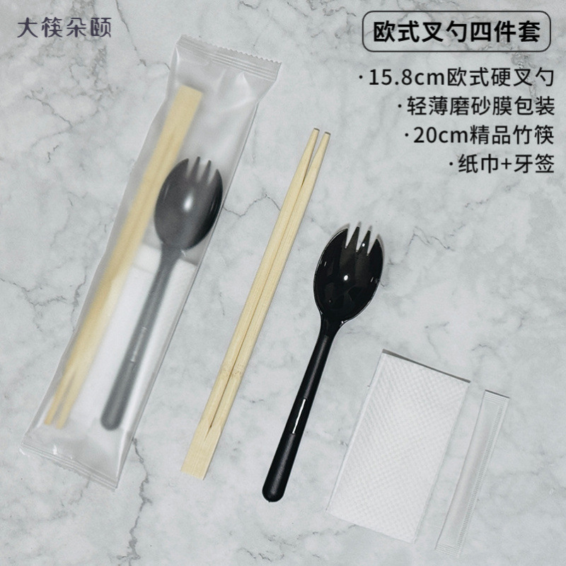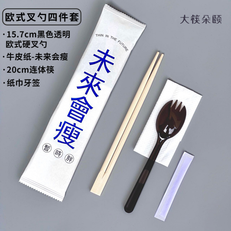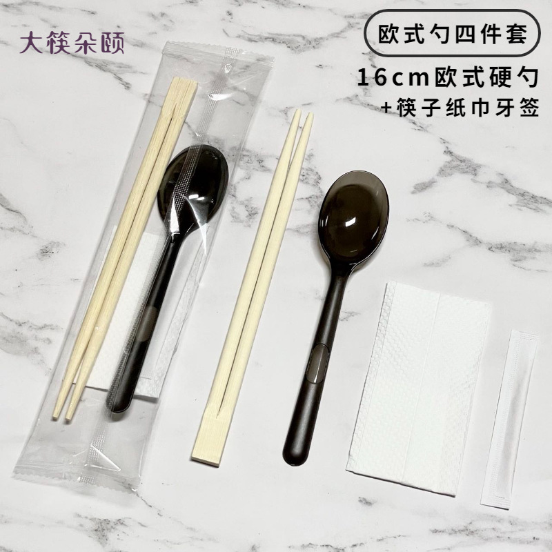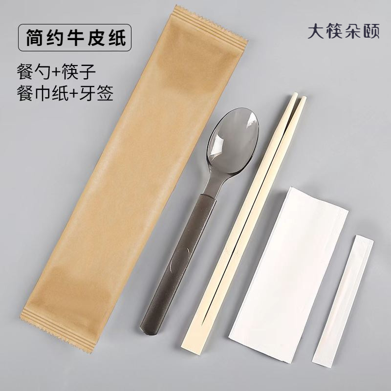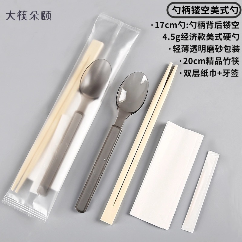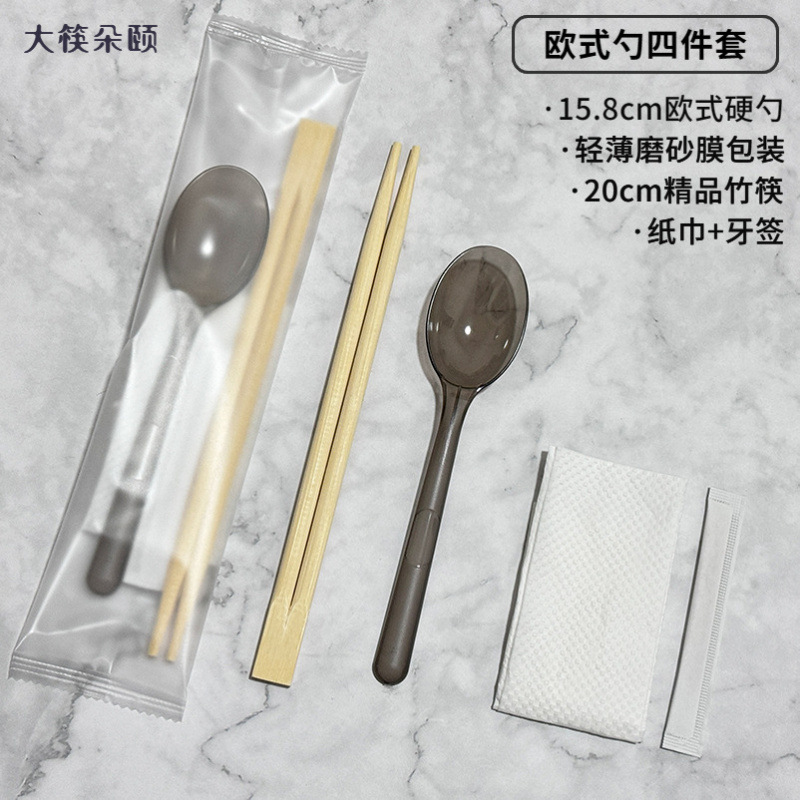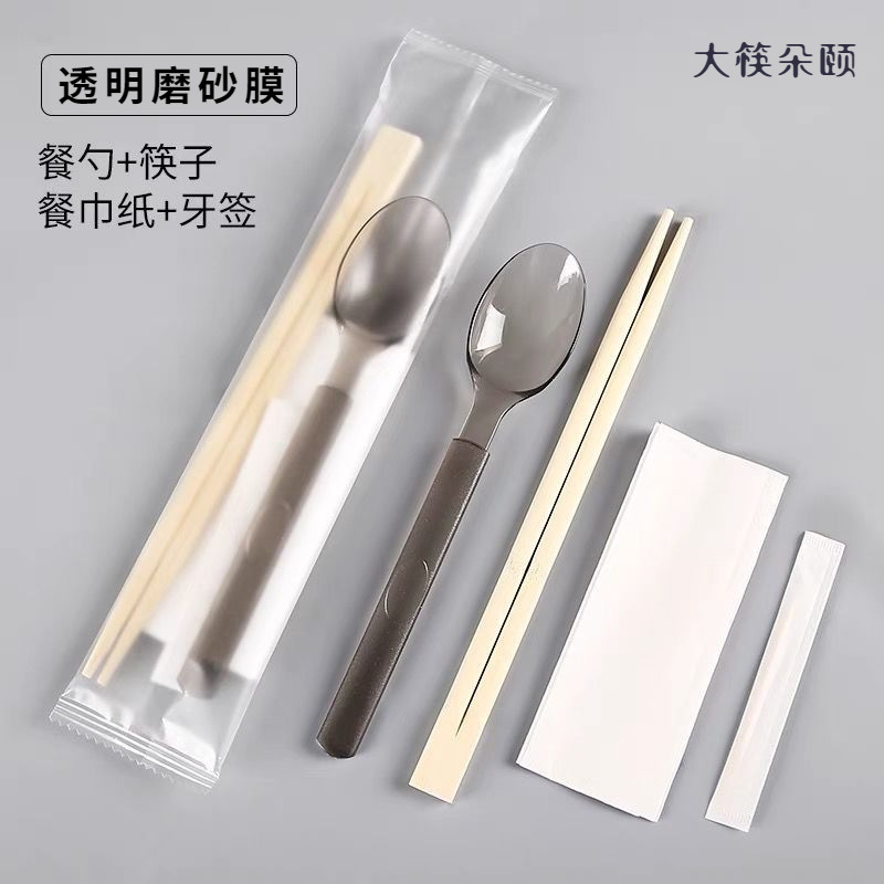 숟가락 숟가락 4 조각 식사 가방 테이크 아웃 비빔밥 프로스티드 하드 투하오 페이퍼 타월 이쑤시개 못이 들어간 일회용 젓가락스토어 가기