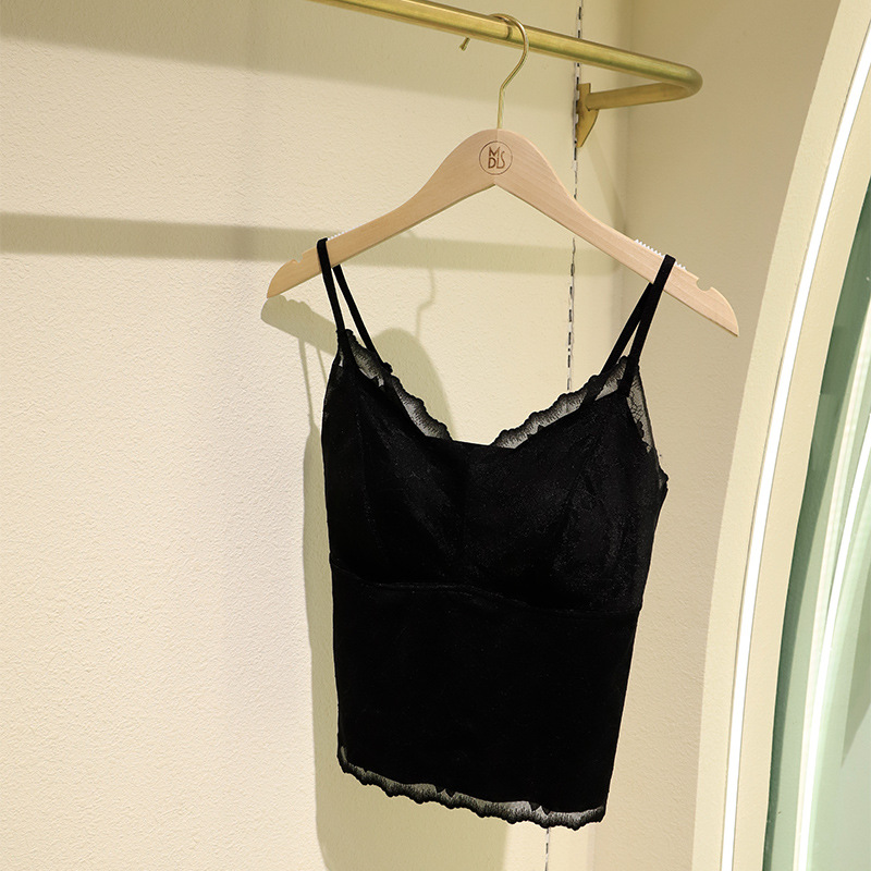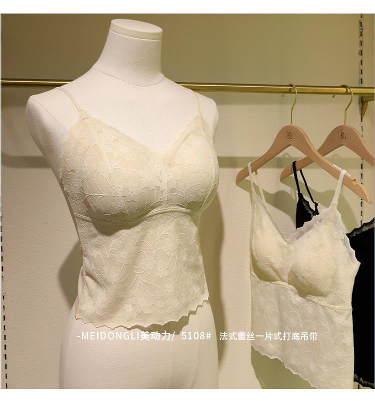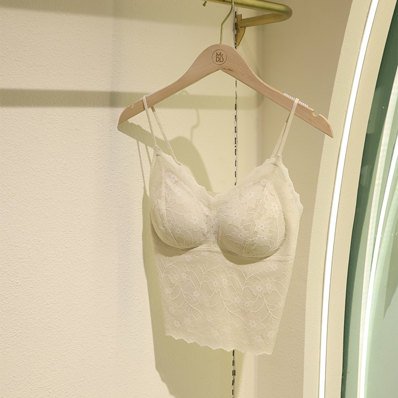초봄 프렌치 레이스 얇은 끈나시 여성용 원피스 가슴패드 내장 뷰티백 이너웨어 브라 일체형 끈나시스토어 가기