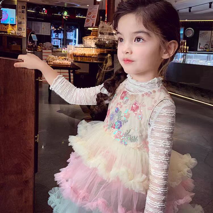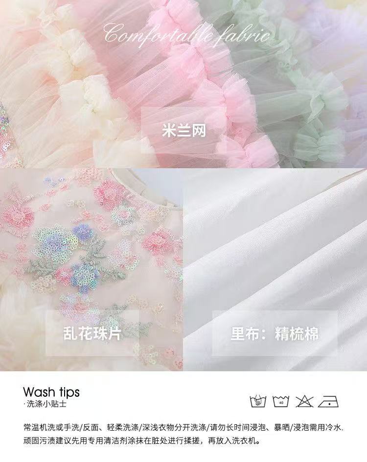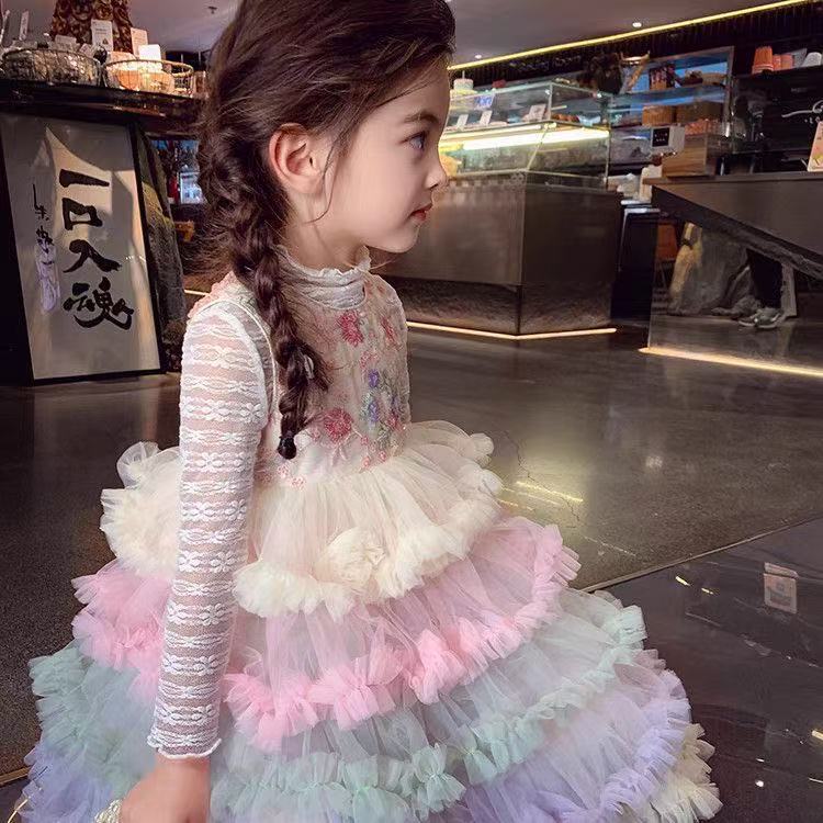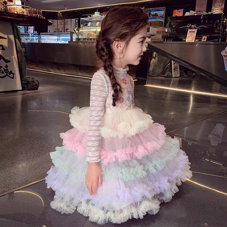 여자 드레스 여름 드레스 2025 새로운 어린이 무지개 푹신한 메쉬 공주 드레스 슈퍼 유행 여자 조끼 드레스스토어 가기