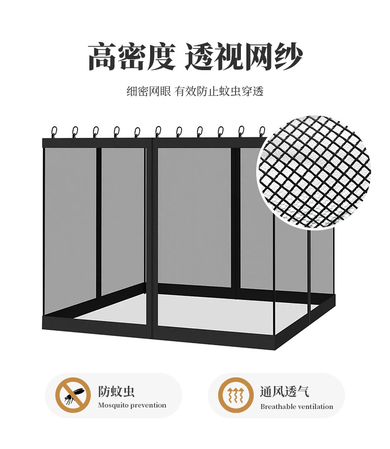 초대형 공간, 네 개의 문이 완전히 열리는 방충 및 차양 기능이 있는 야외 캠핑 및 정원 필수품 모기장 텐트스토어 가기