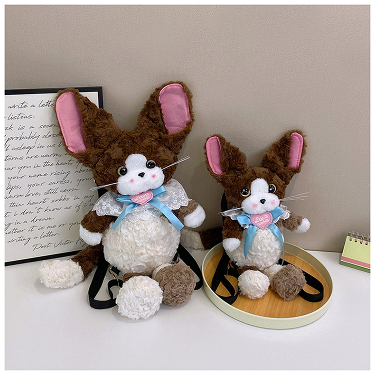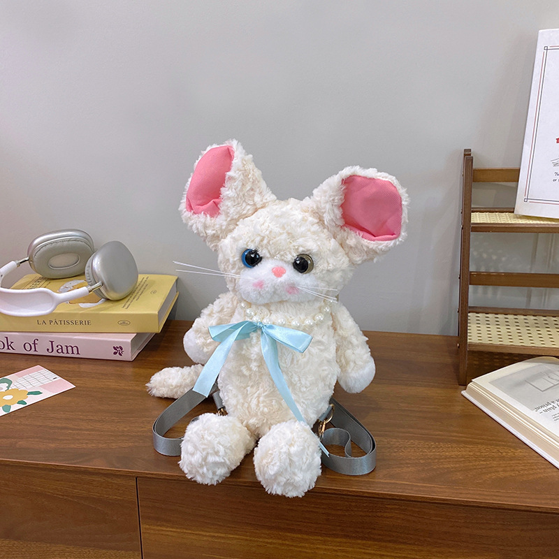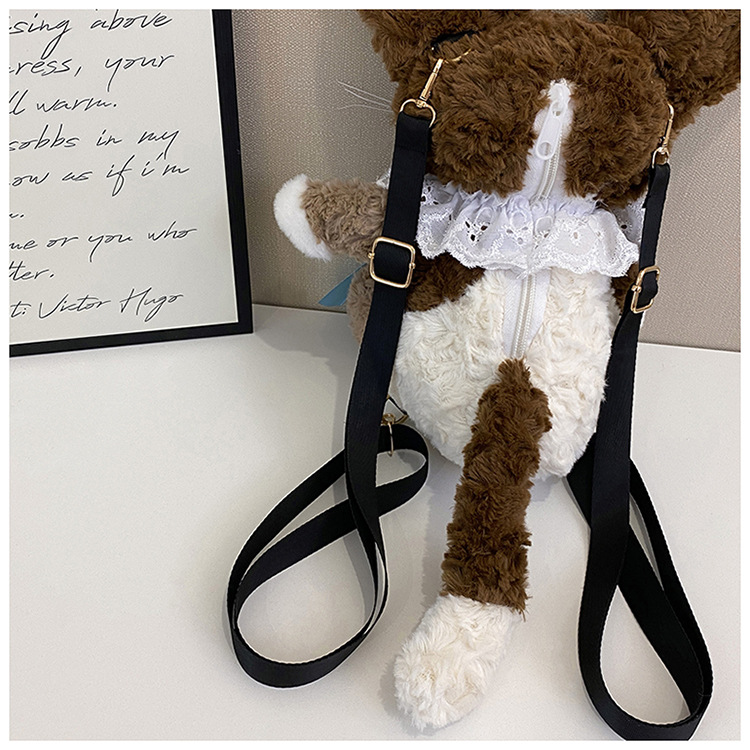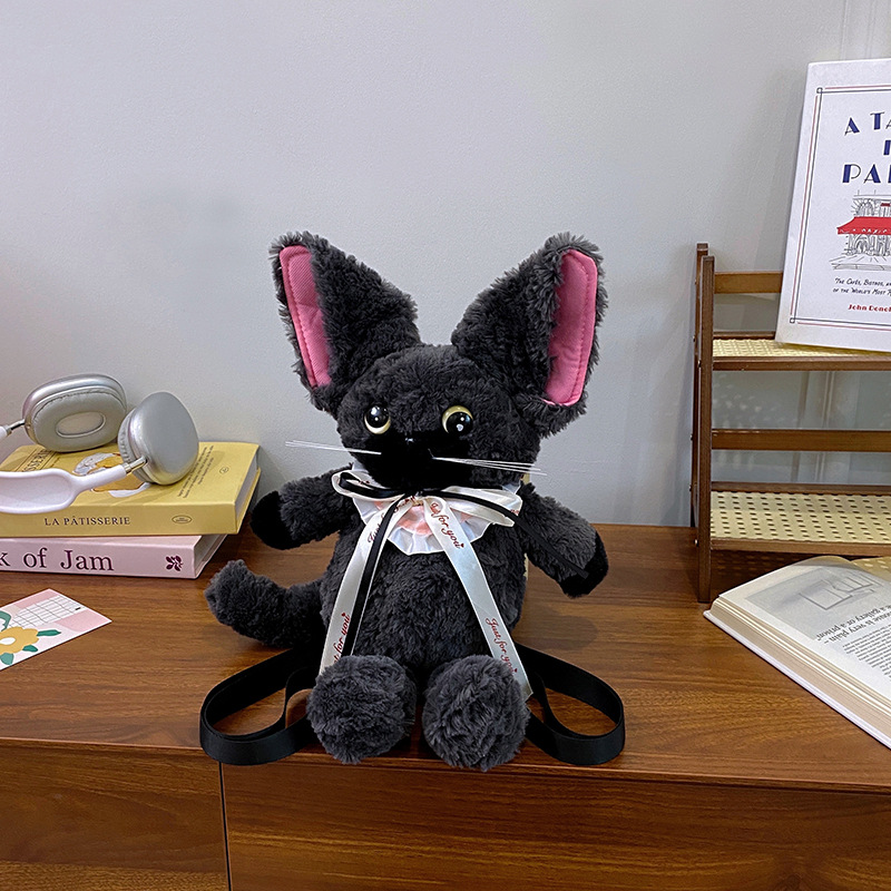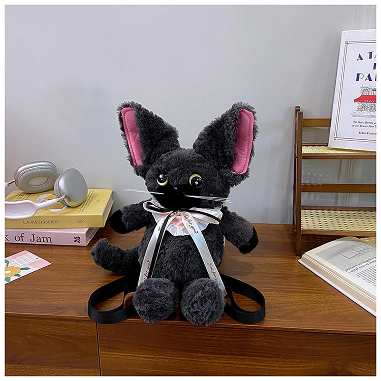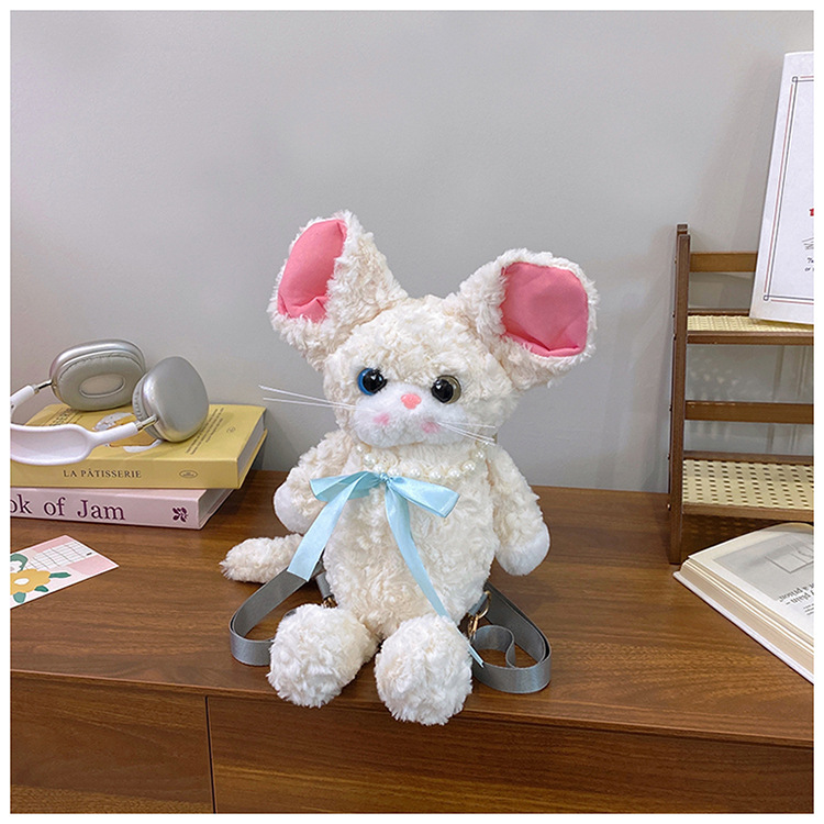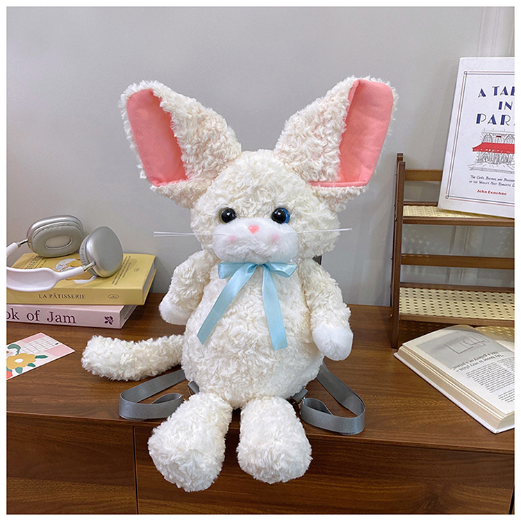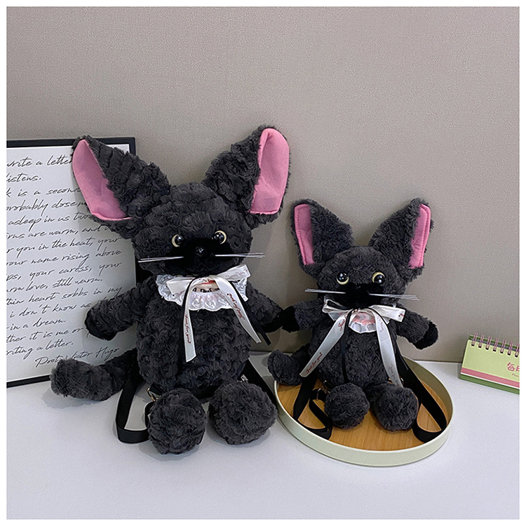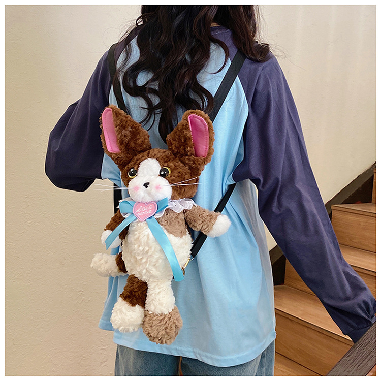 달리기 데본 곱슬 고양이 인형 배낭 가방 귀여운 만화 고양이 인형 플러시 배낭 여성을위한 생일 선물