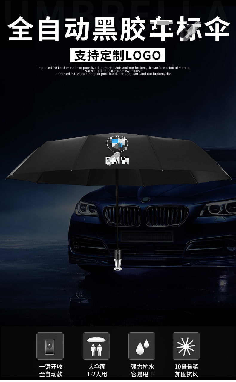 완전 자동 10 뼈 3 배 블랙 접착제 우산 롤 벤 C 보물 VIP 접는 차 4S 비즈니스 선물 광고 우산