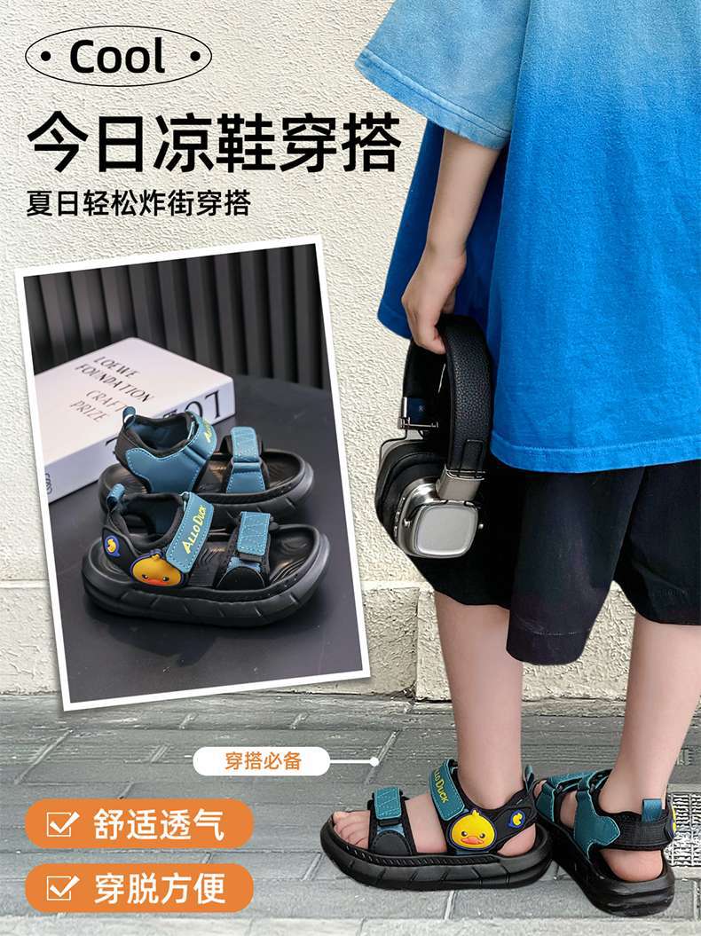 오리 어린이 샌들 여름 새 아기 해변 신발 중대형 어린이를위한 야외 캐주얼 미끄럼 방지 소년 소녀 신발