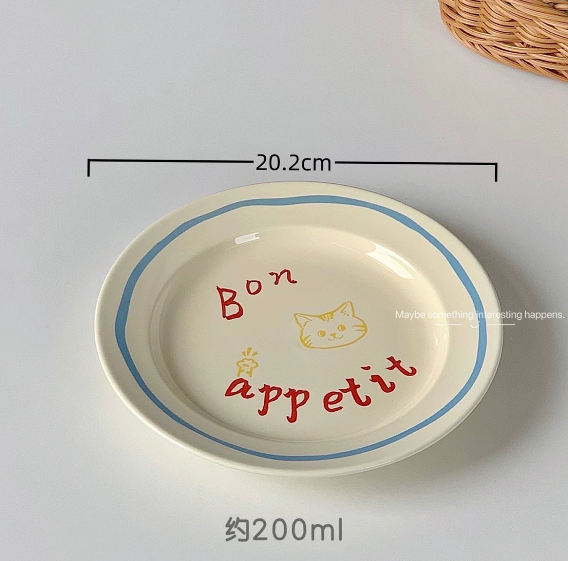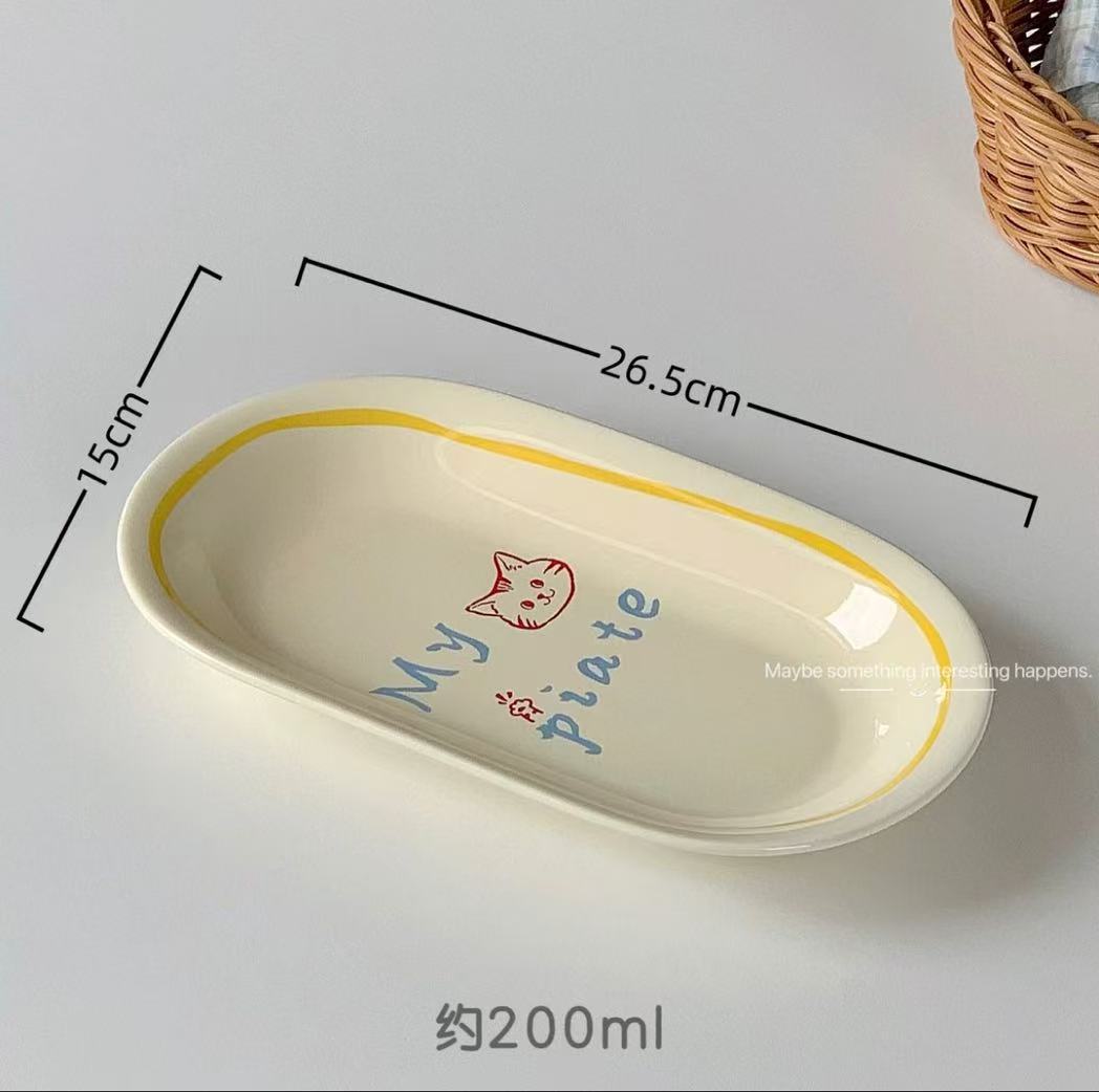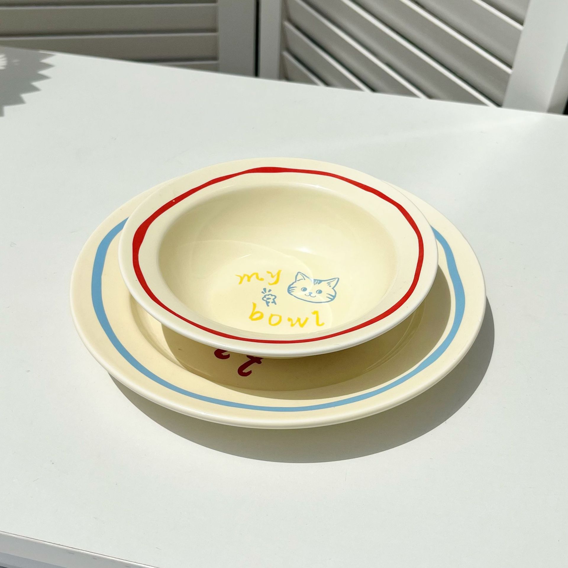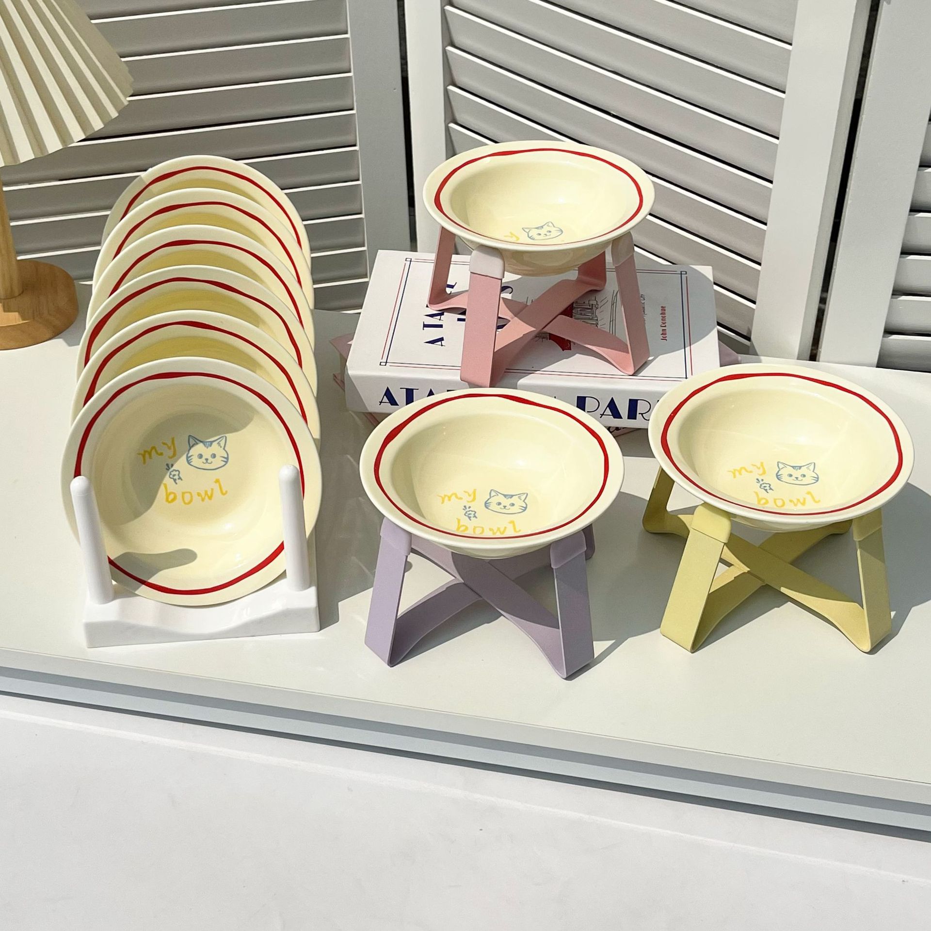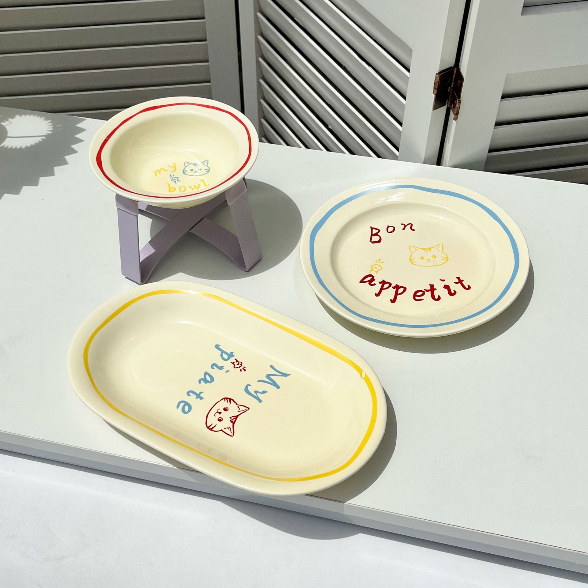 Ins 스타일 크림 색상 고급 귀여운 고양이 세라믹 접시 대구경 애완 동물 고양이와 개 간식 캔 접시스토어 가기