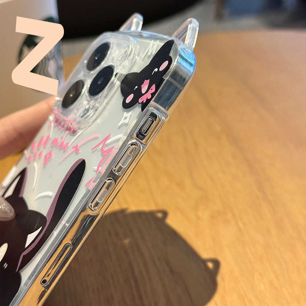 Apple 16 귀여운 고양이 귀 휴대 전화 케이스에 적합 iphone15pro 크리 에이 티브 13 큰 얼굴 고양이 팔찌 보호 커버