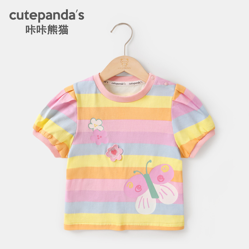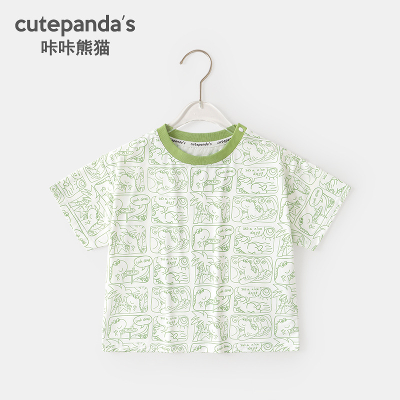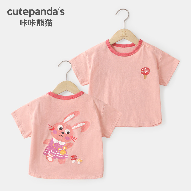 [2개 선택 38위안] Kaka Panda 여아 반팔 티셔츠 남아 여름 옷 아동 여름 조끼 아동복스토어 가기