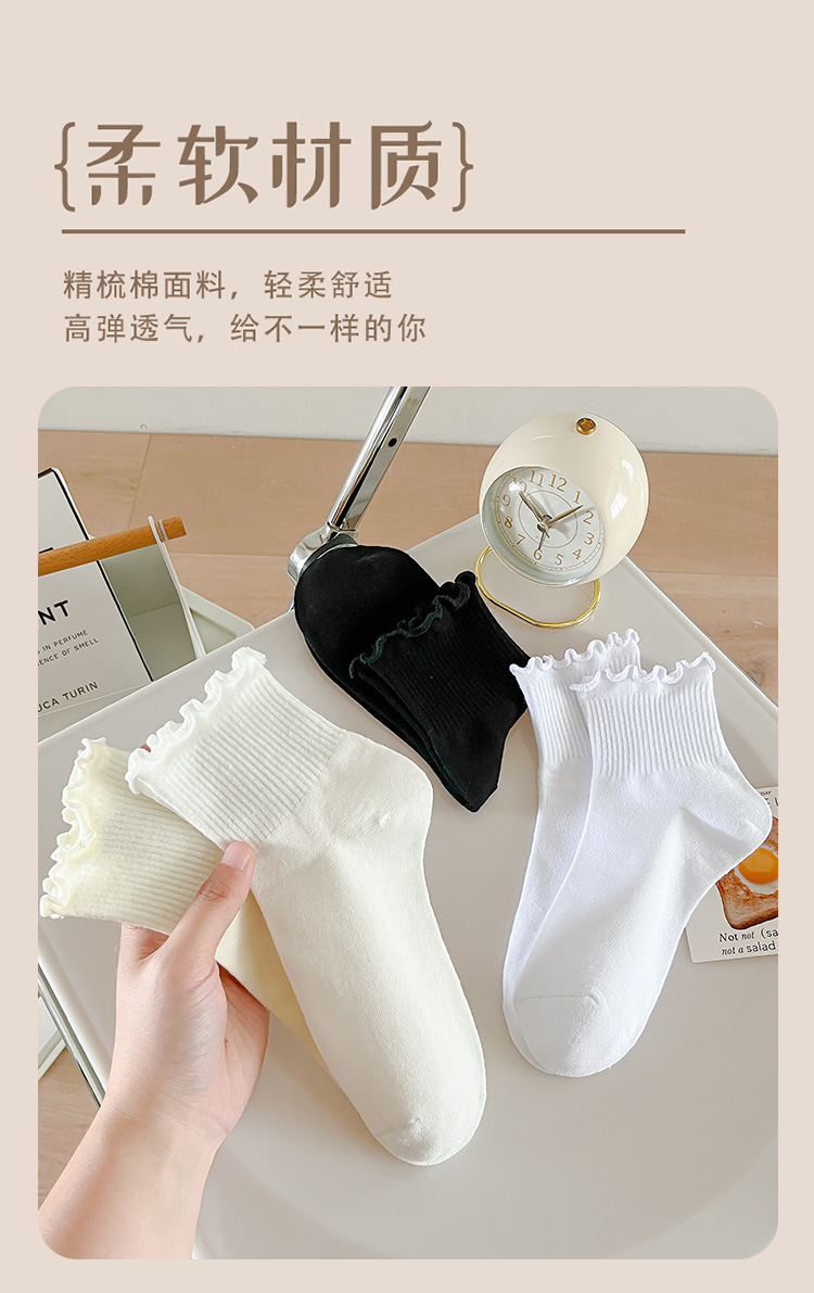 여성용 귀마개 양말, 얇은 종아리 중간 여름 검은색 레이스 양말, 작은 가죽 신발, 짧은 종아리 흰색 짧은 양말