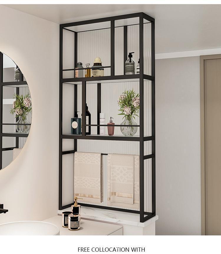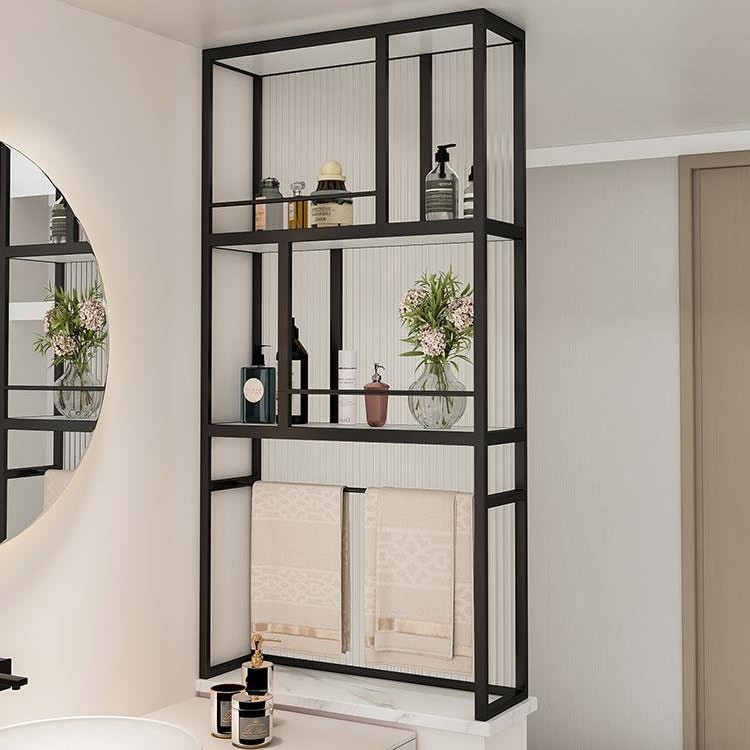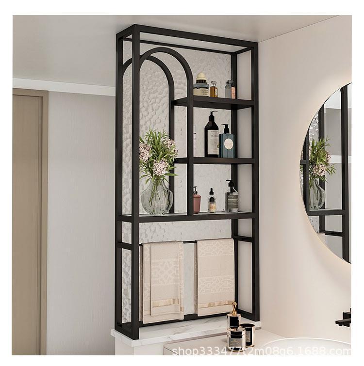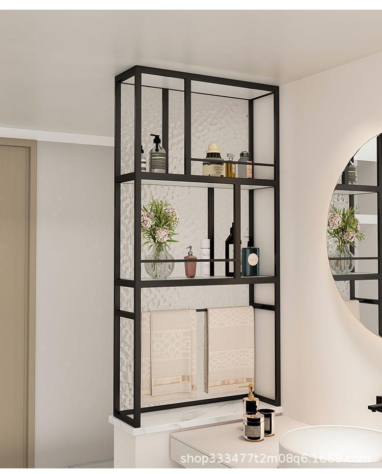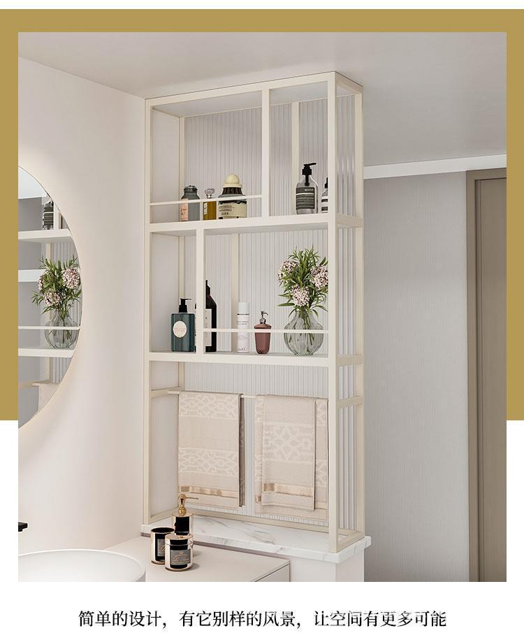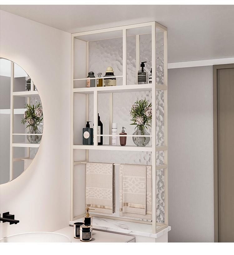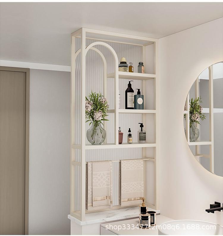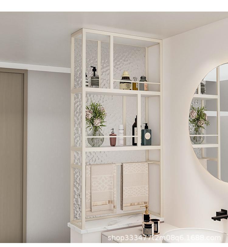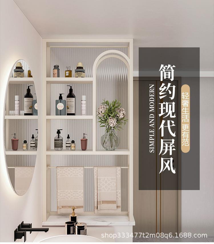 욕실 세면대 건식 및 습식 공간 분리형 스크린 수납장, 청동유리 물결무늬 반벽 칸막이 선반, 가정용 수납스토어 가기