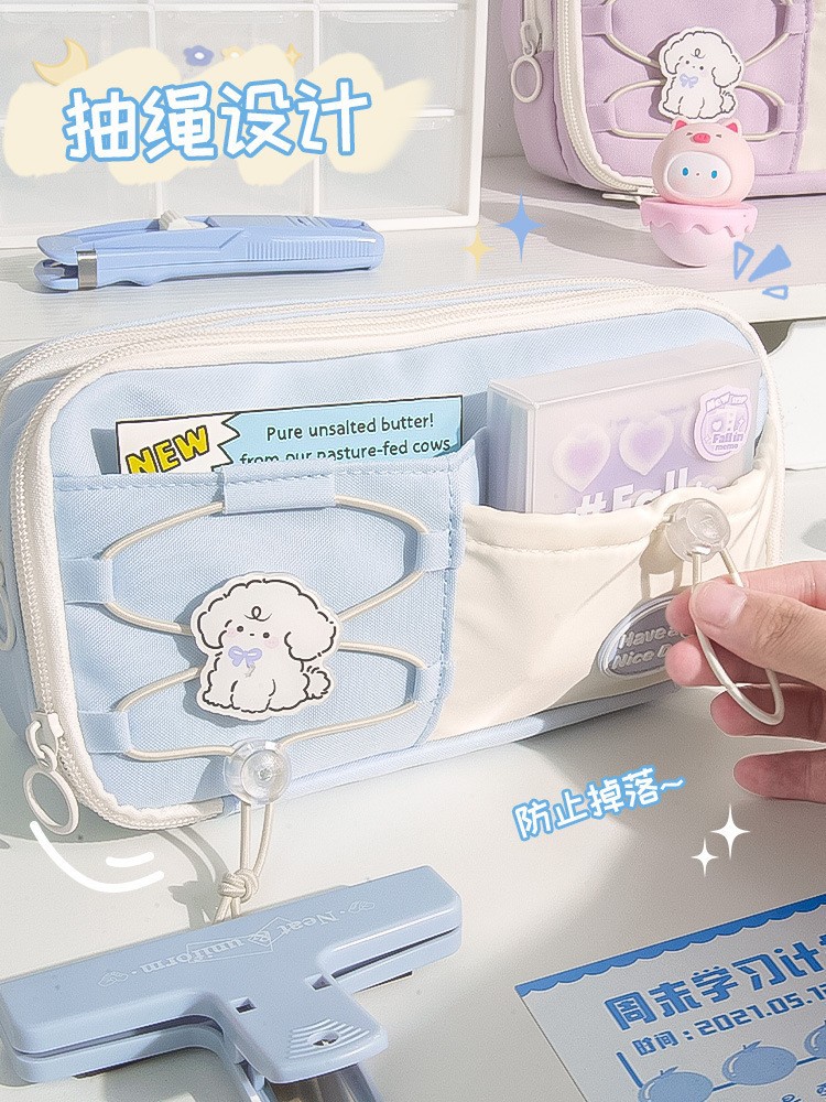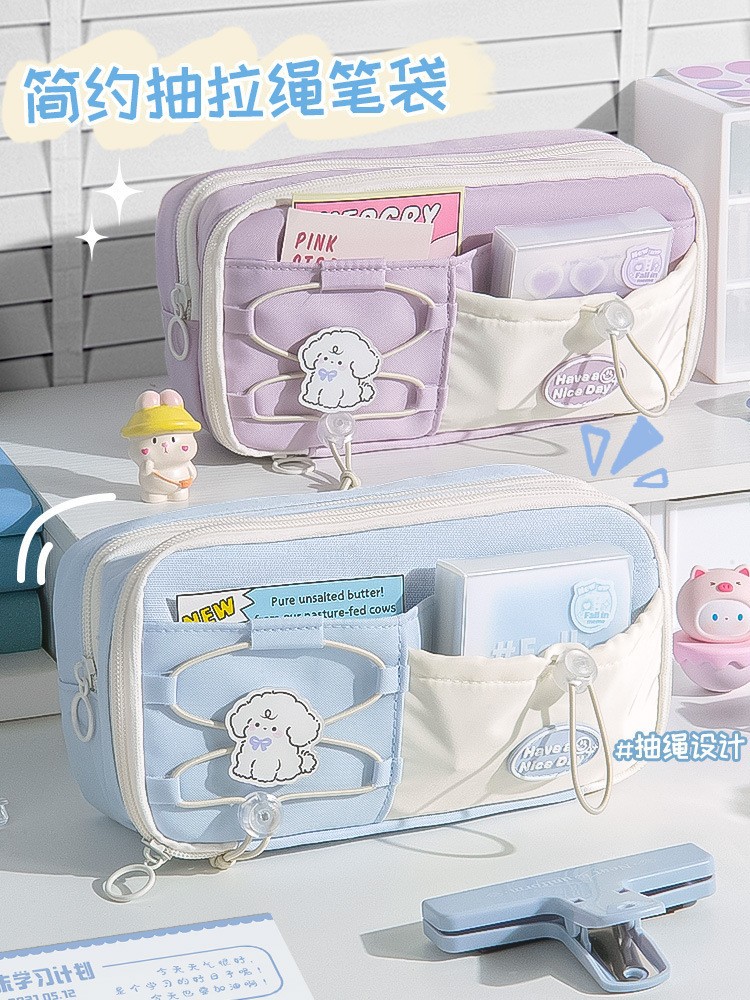 소녀들을 위한 귀여운 대용량 연필 가방 2025 새로운 졸라매는 끈 학생 소금 시리즈 틈새 스타일 문구 상자 연필 가방 공장