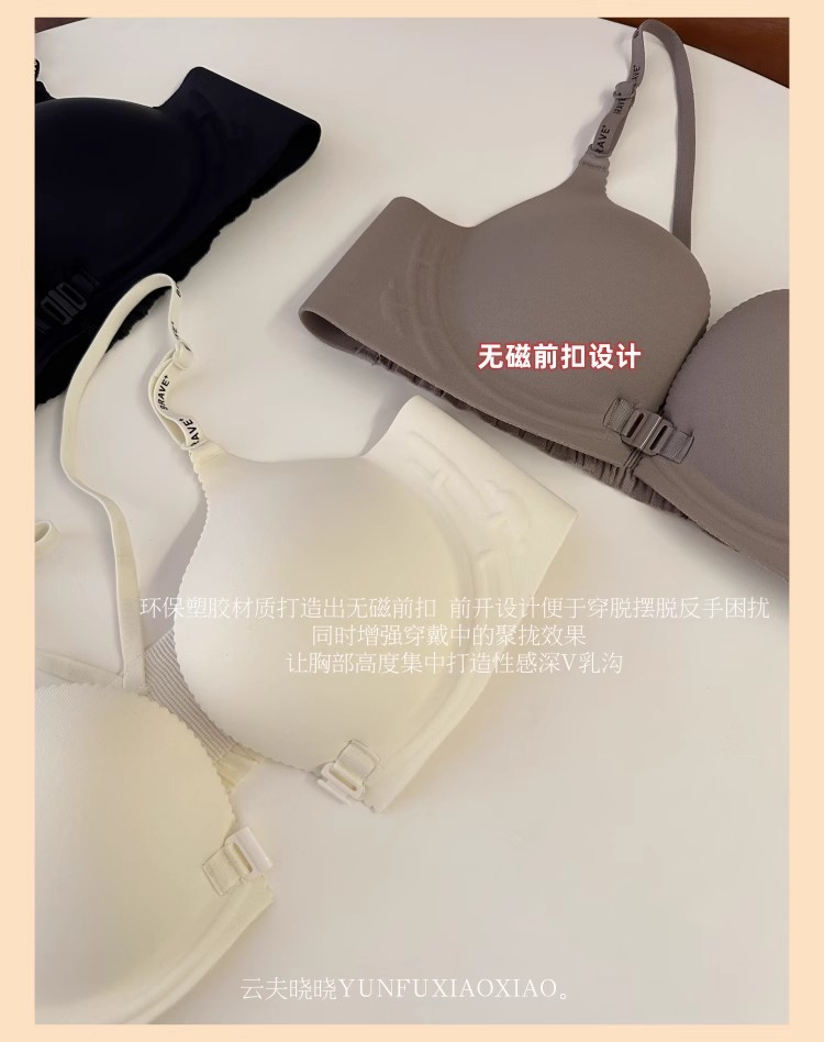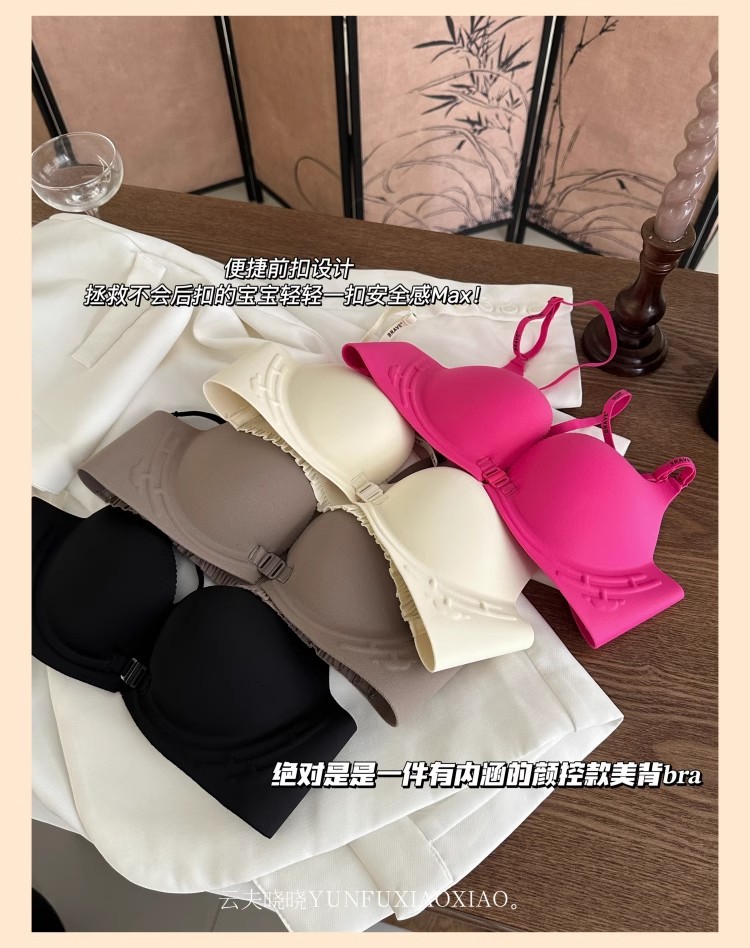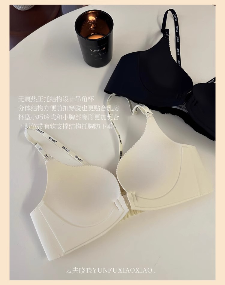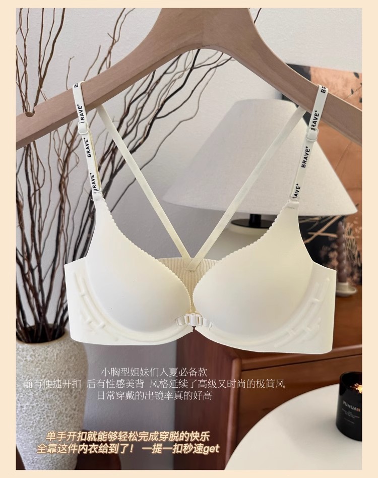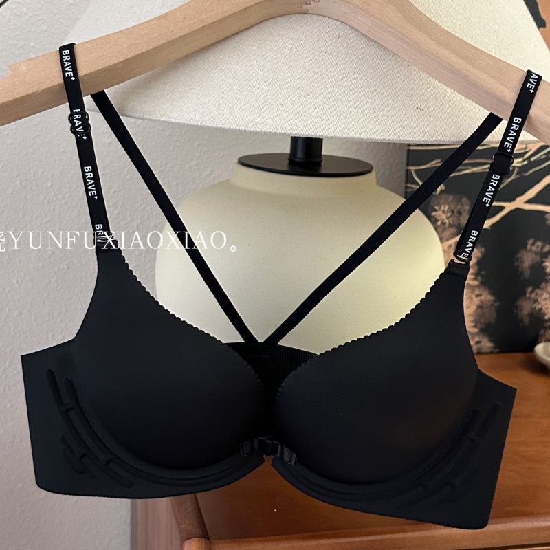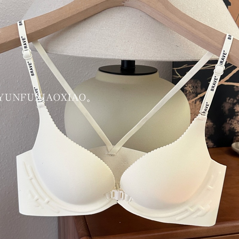 2025 프론트 클로저 뷰티백 브라 여성용 작은 가슴 모아주는 레터 스트랩 소녀 브라 여름 얇은 누드 느낌 패드 포함