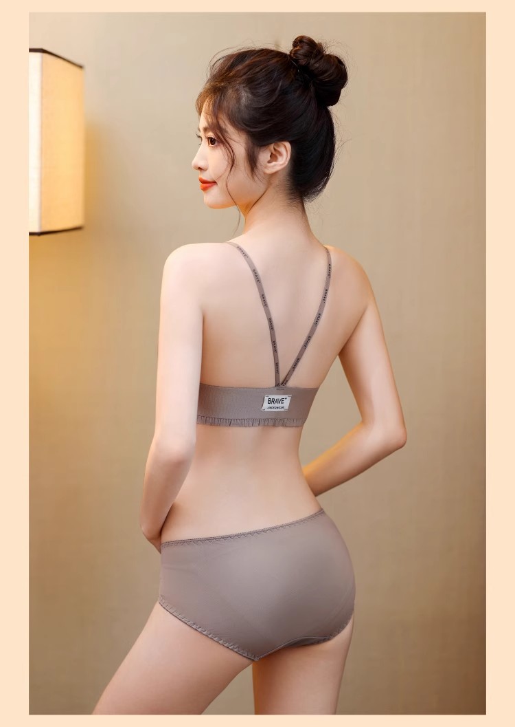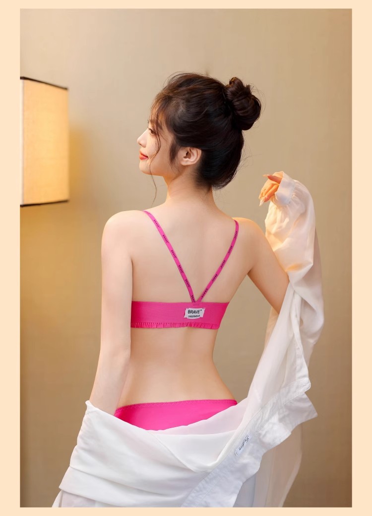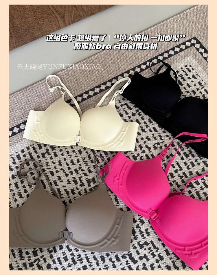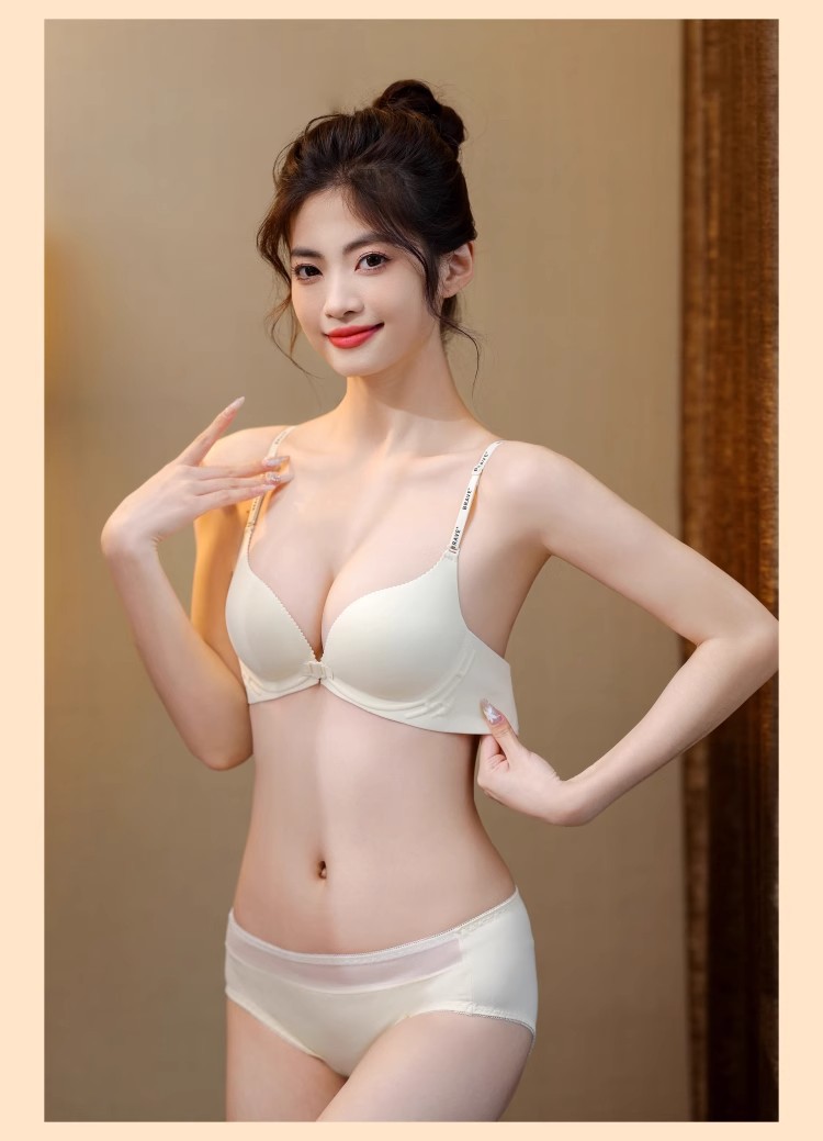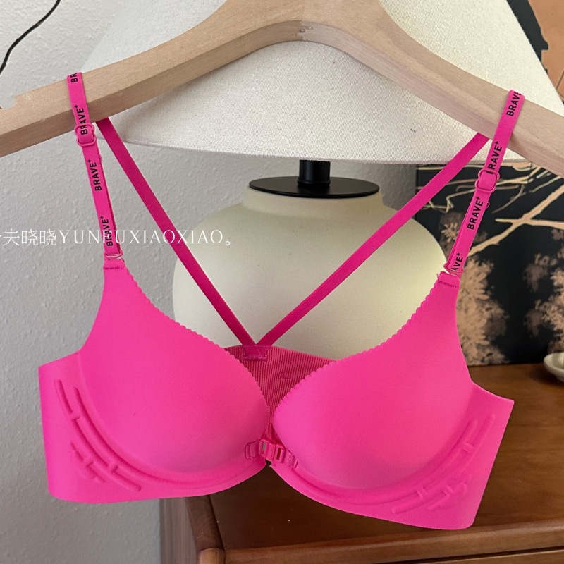 2025 프론트 클로저 뷰티백 브라 여성용 작은 가슴 모아주는 레터 스트랩 소녀 브라 여름 얇은 누드 느낌 패드 포함