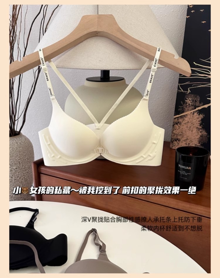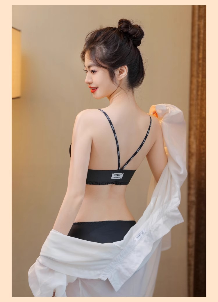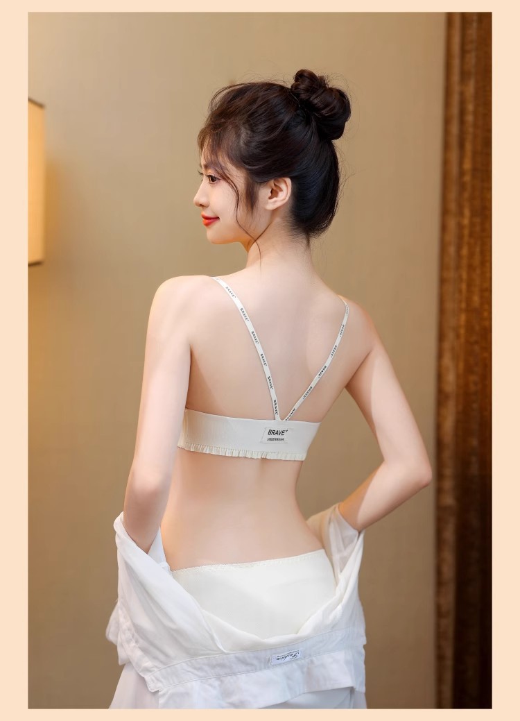 2025 프론트 클로저 뷰티백 브라 여성용 작은 가슴 모아주는 레터 스트랩 소녀 브라 여름 얇은 누드 느낌 패드 포함스토어 가기