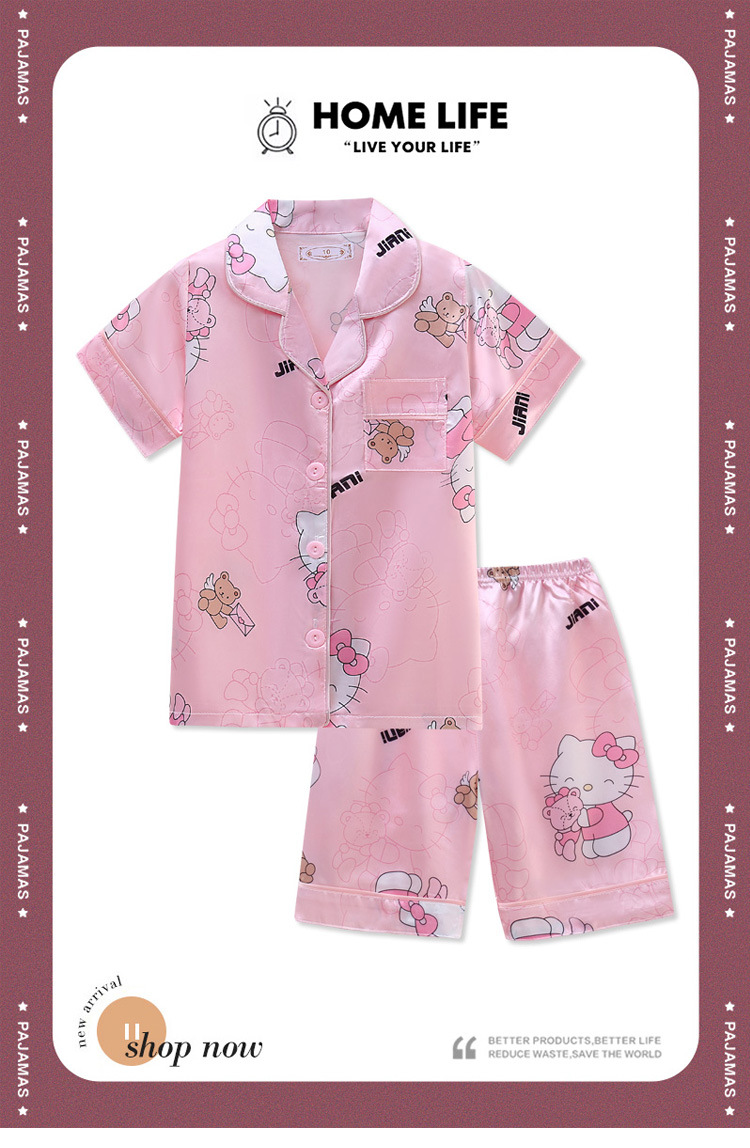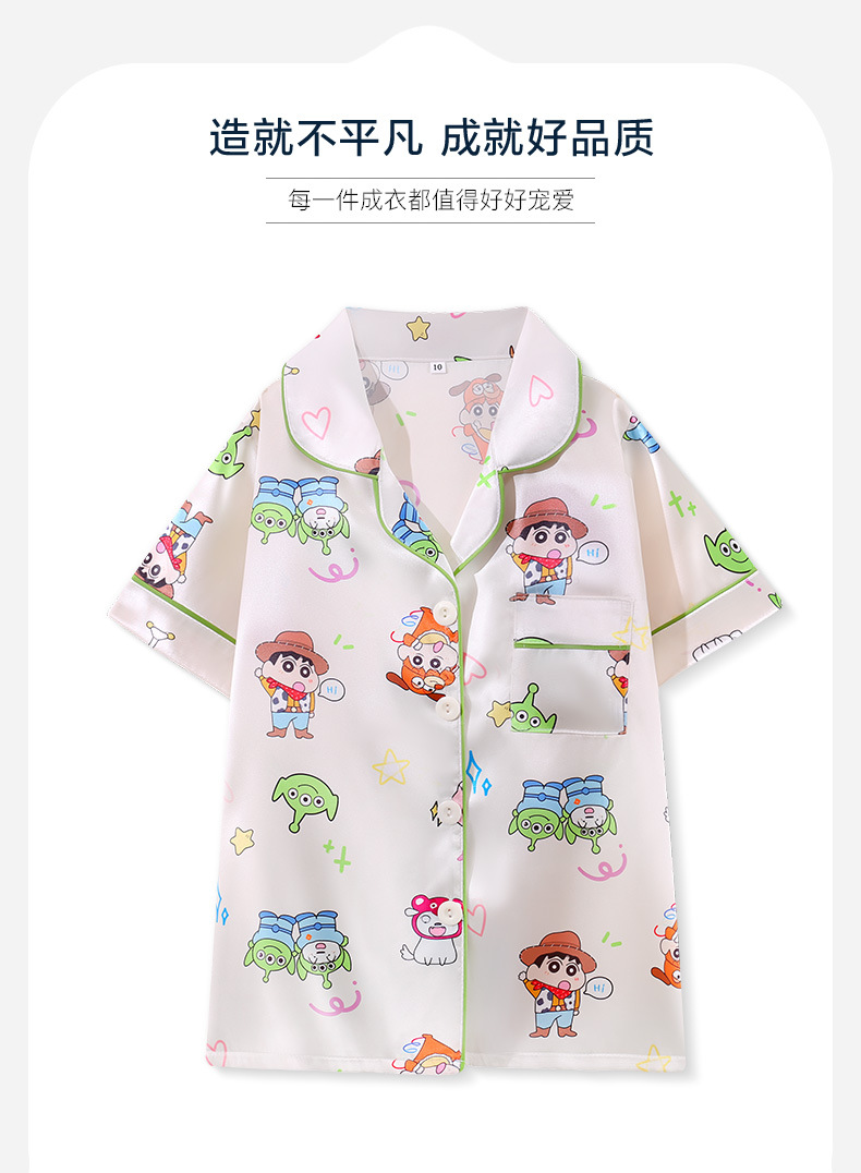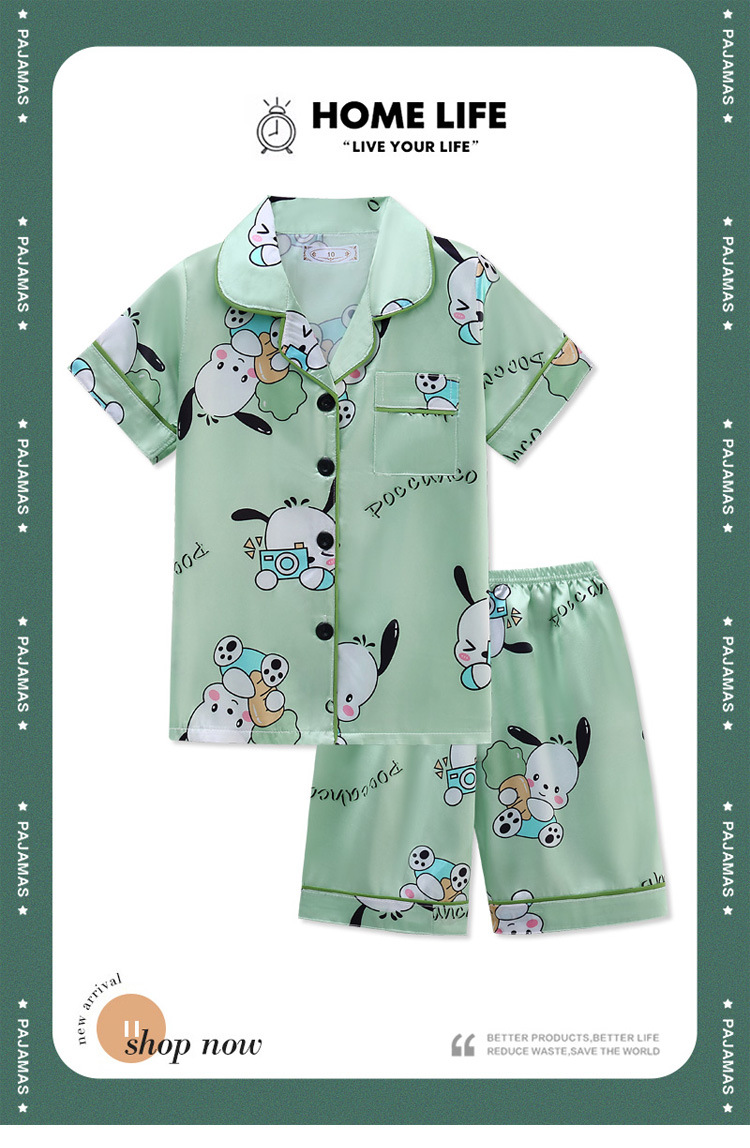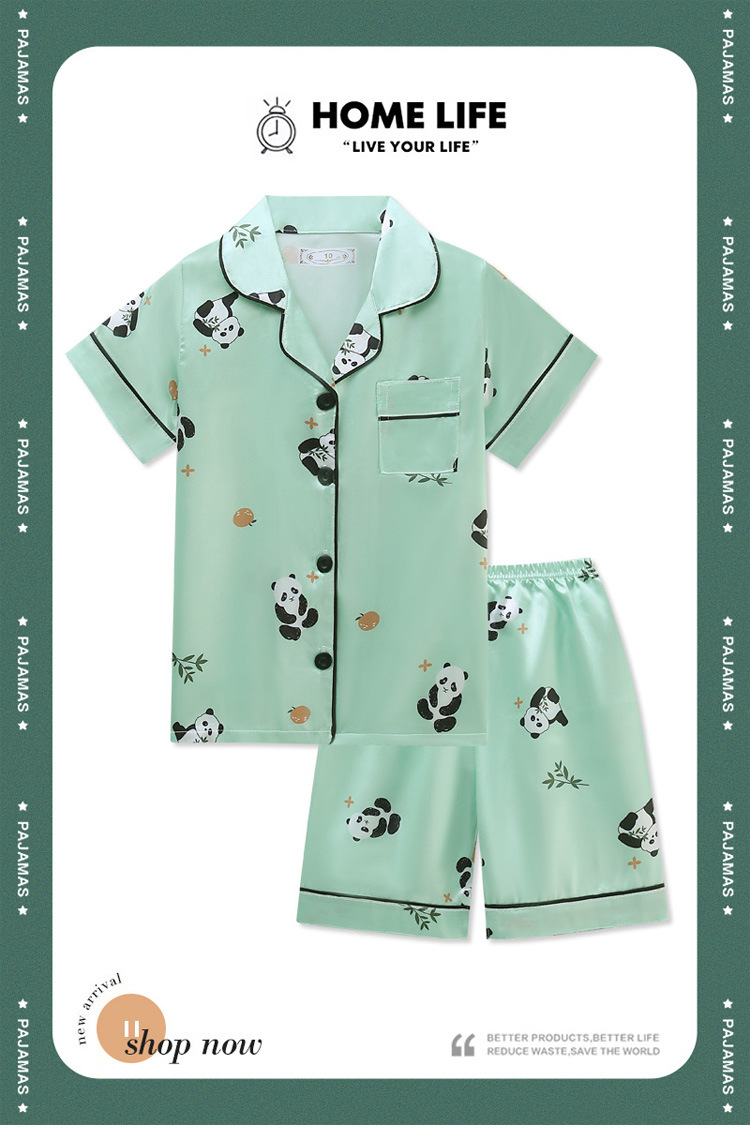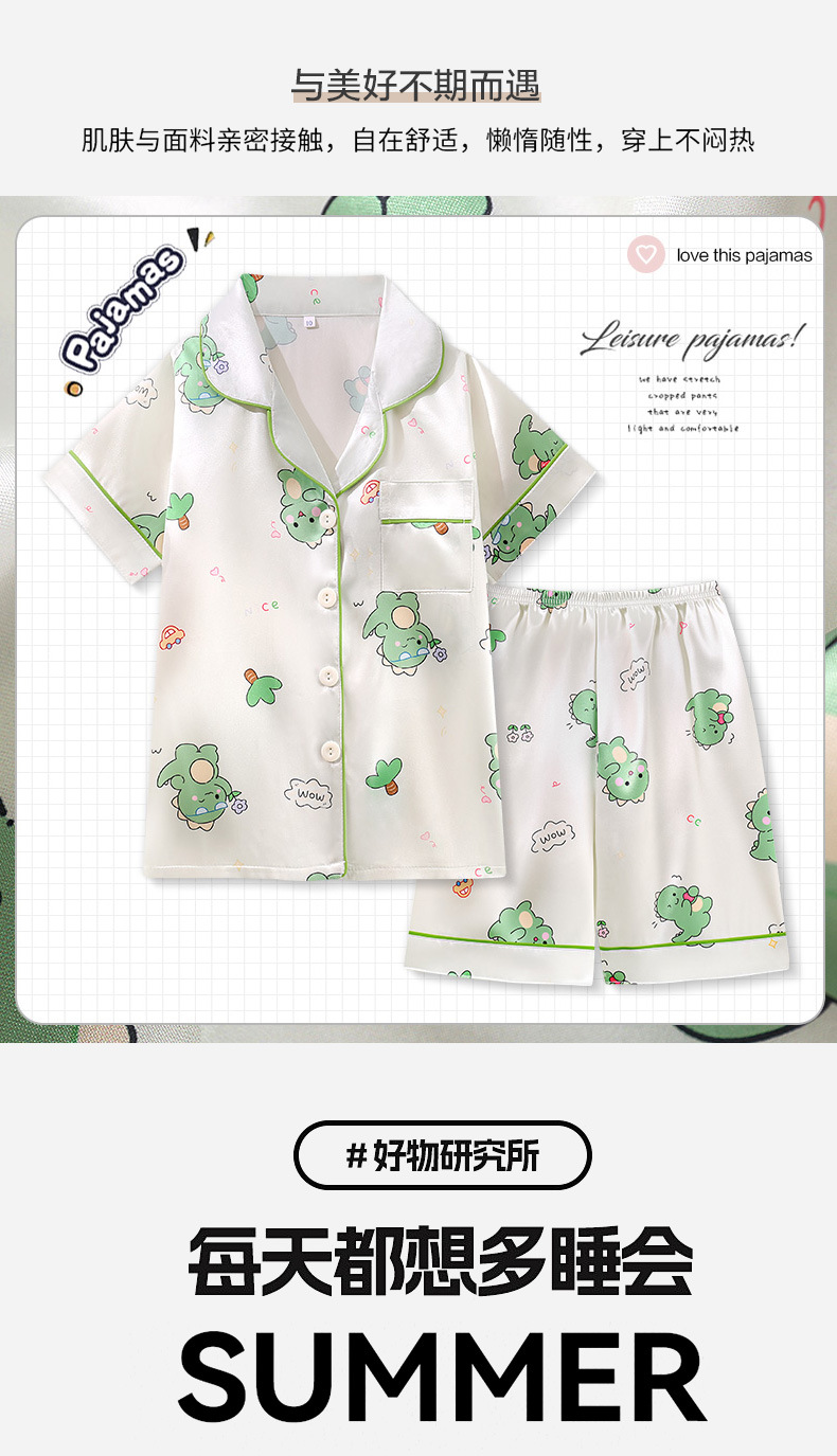 여름 어린이 아이스 실크 파자마 얇은 반팔 반바지 카디건 옷깃 귀여운 만화 소년과 소녀 한국 스타일 세트스토어 가기