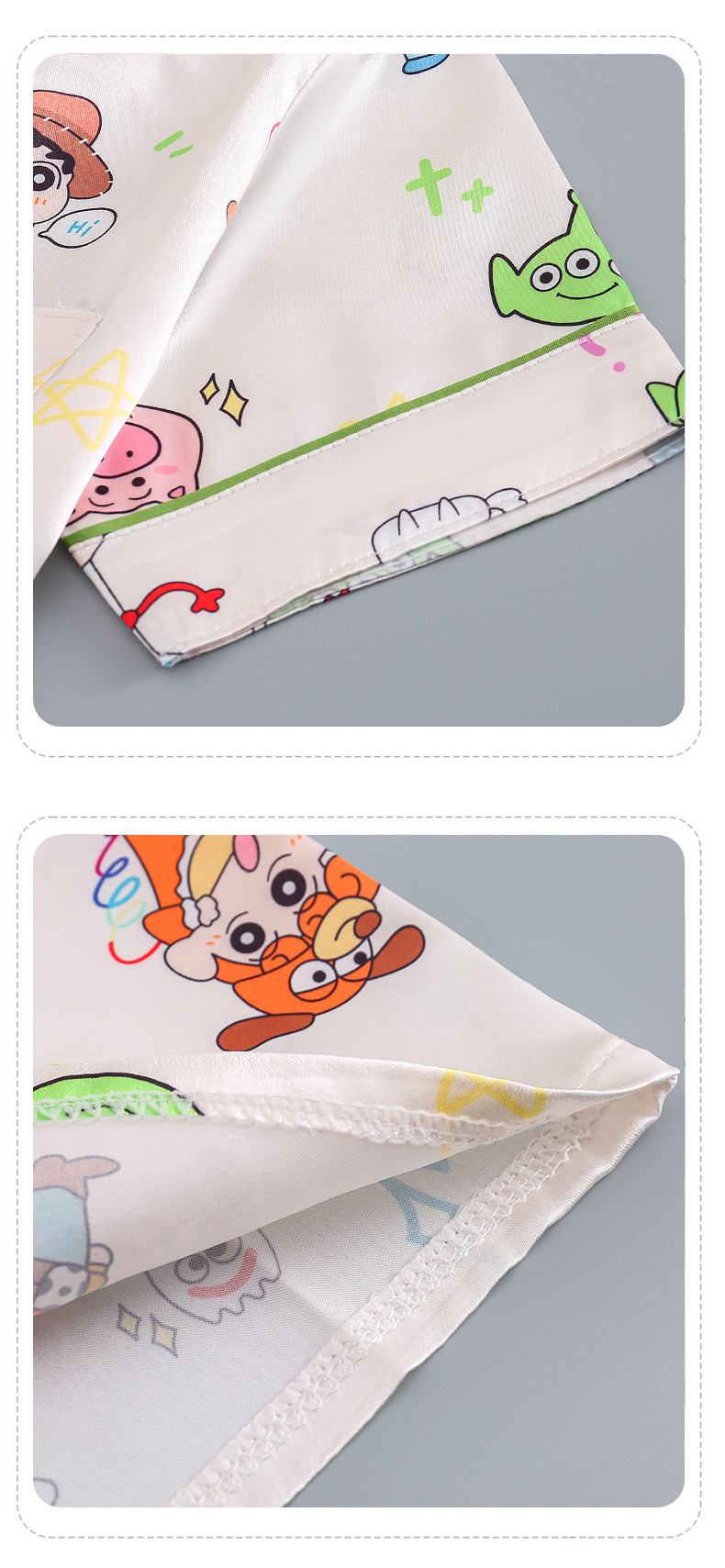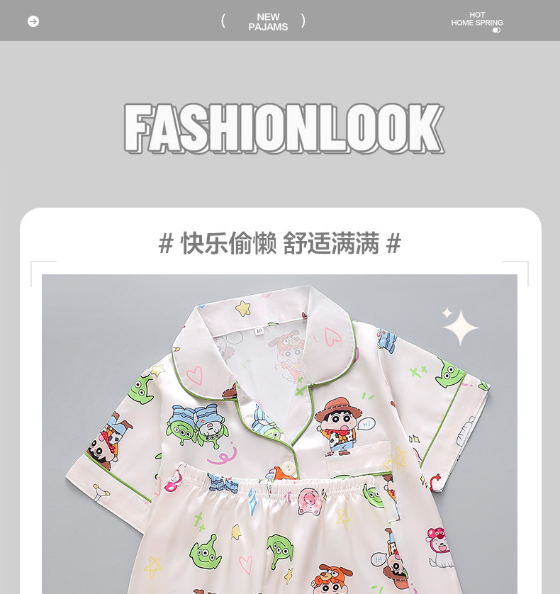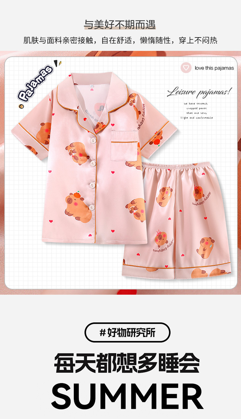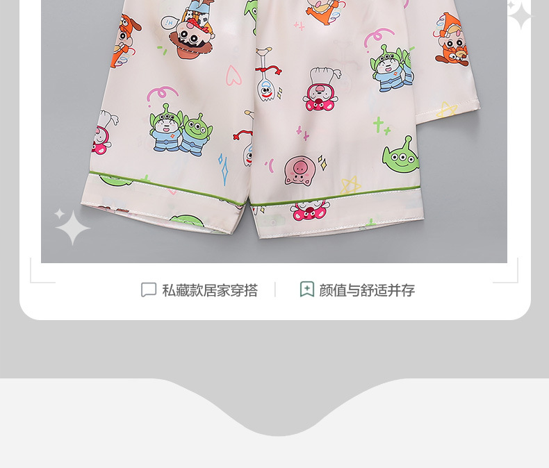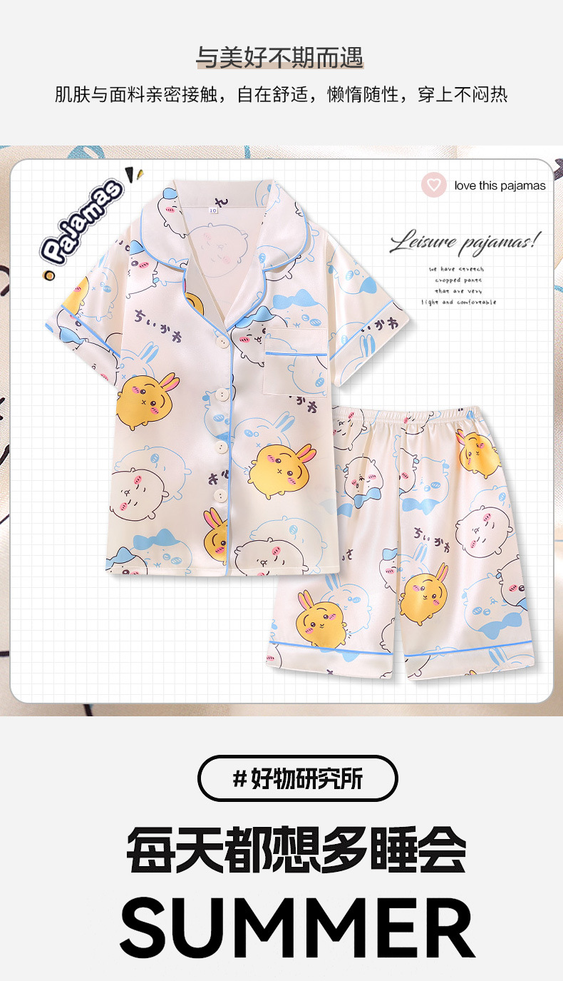 여름 어린이 아이스 실크 파자마 얇은 반팔 반바지 카디건 옷깃 귀여운 만화 소년과 소녀 한국 스타일 세트스토어 가기