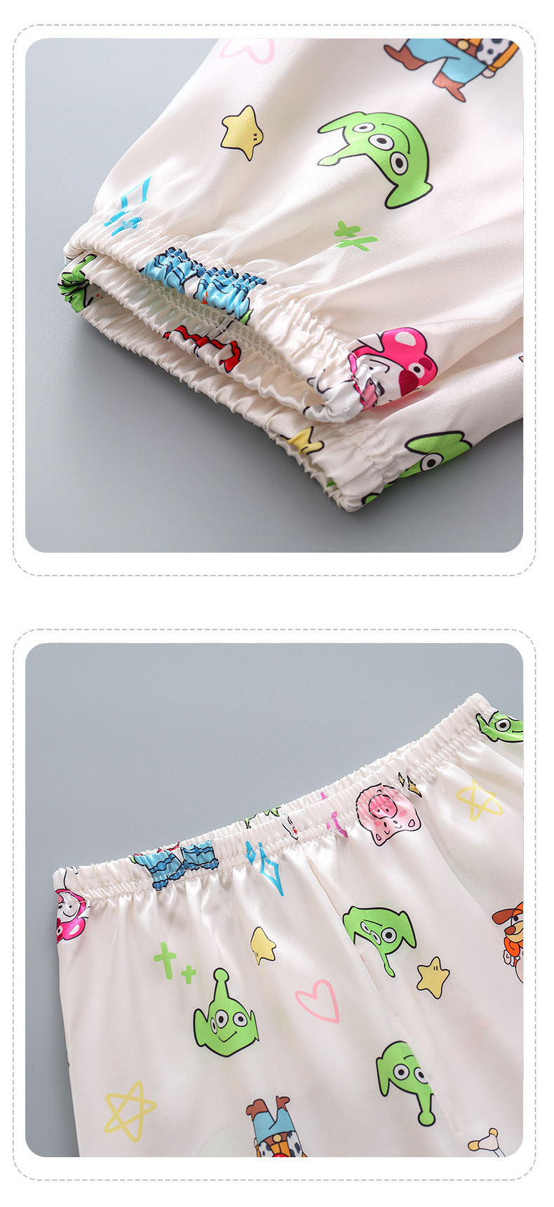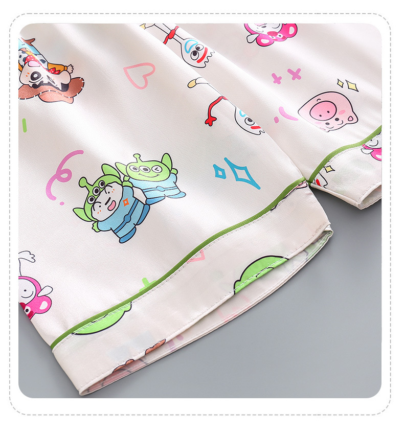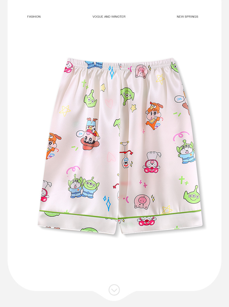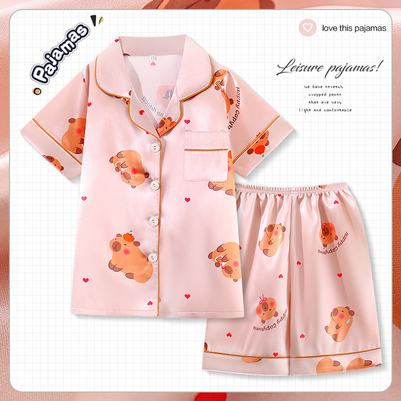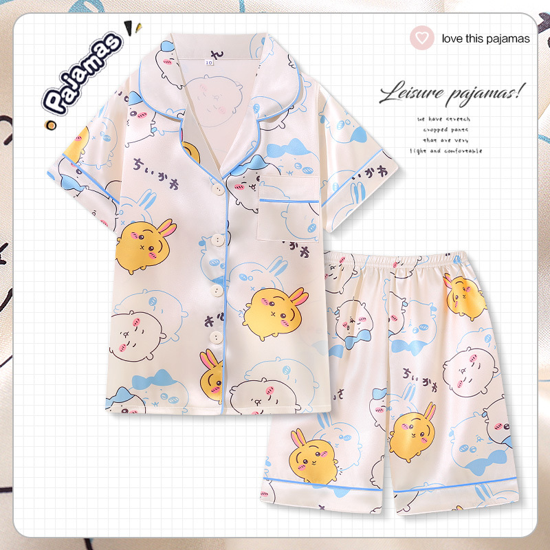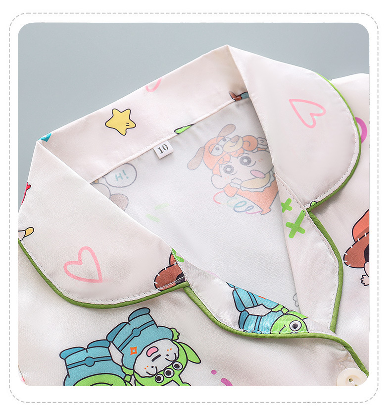 여름 어린이 아이스 실크 파자마 얇은 반팔 반바지 카디건 옷깃 귀여운 만화 소년과 소녀 한국 스타일 세트