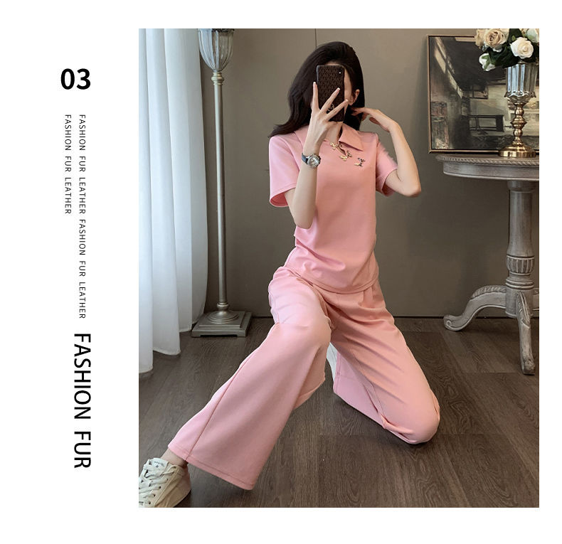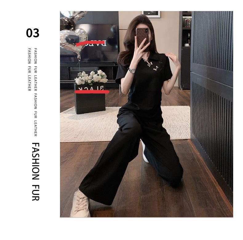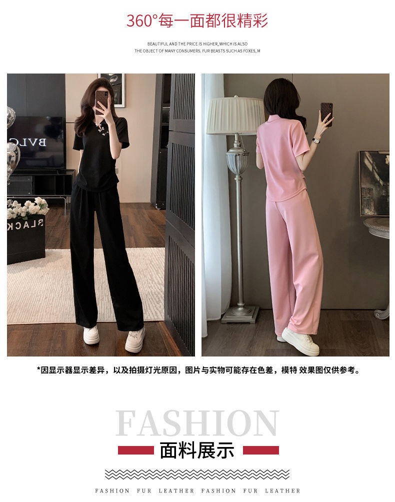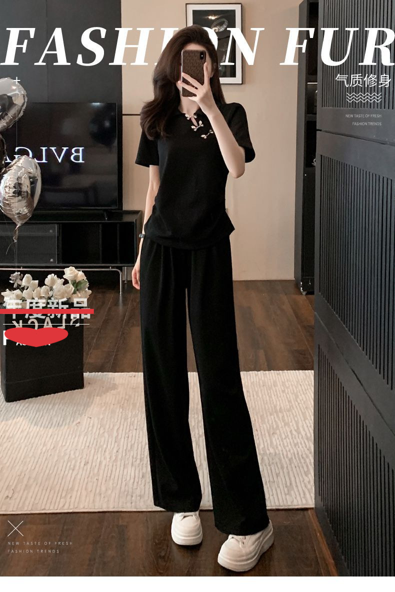 폭발적인 새로운 중국 스타일 국가 스타일 캐주얼 와이드 다리 바지 세트 여신 여름 패션 연령 감소 슬리밍 스포츠 투피스 세트스토어 가기
