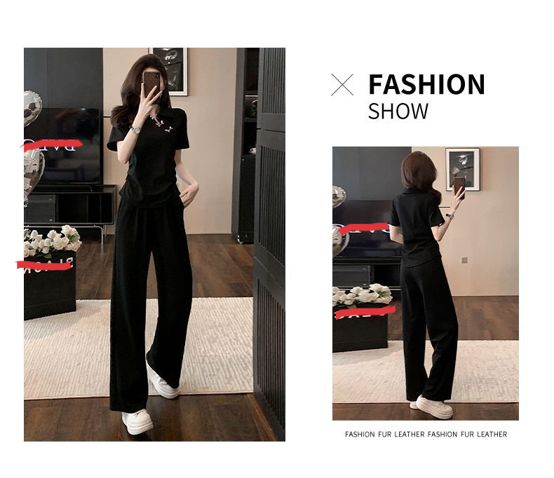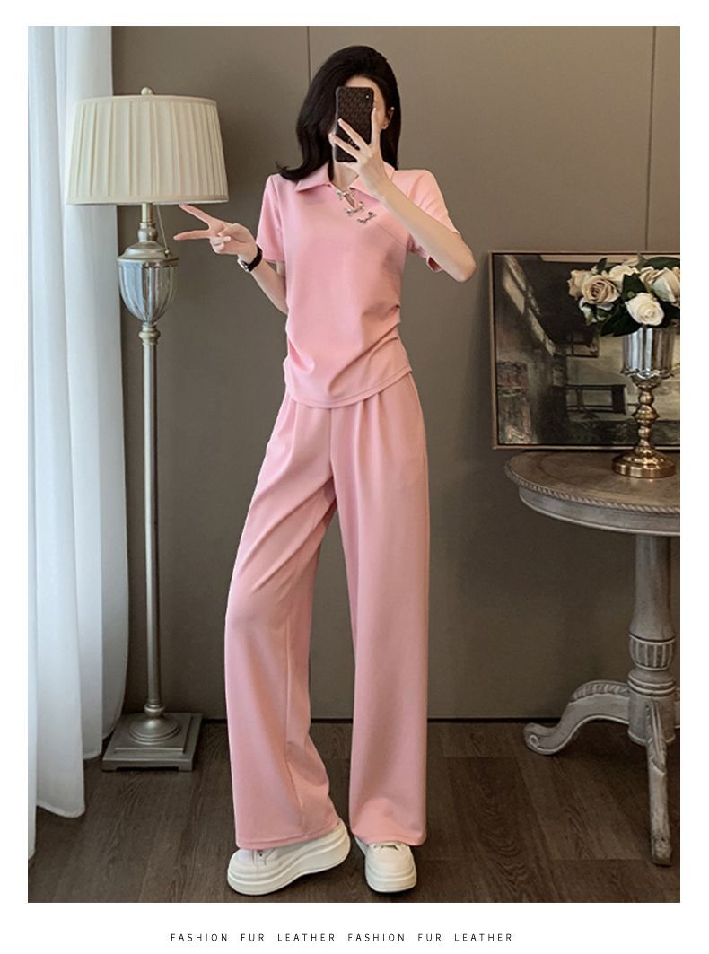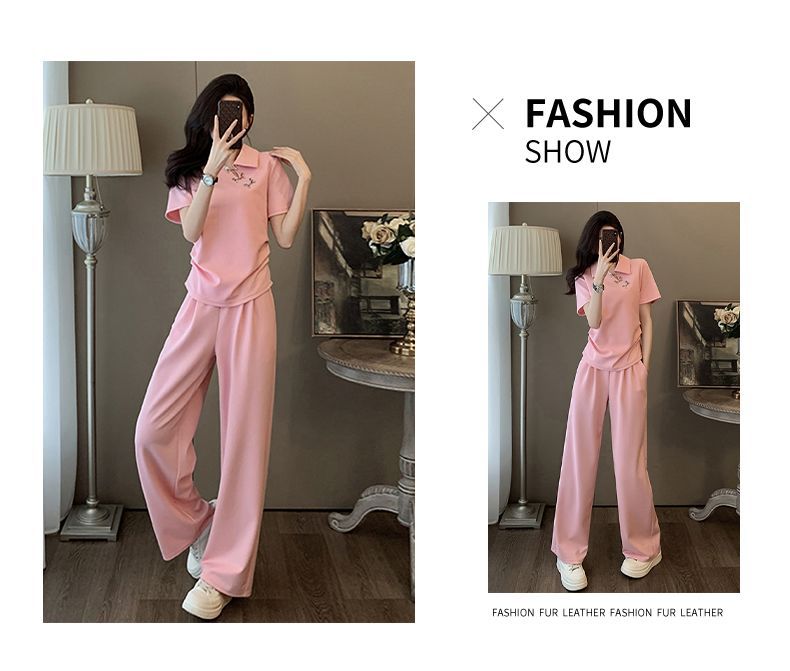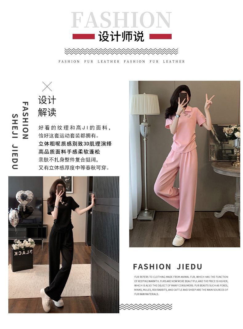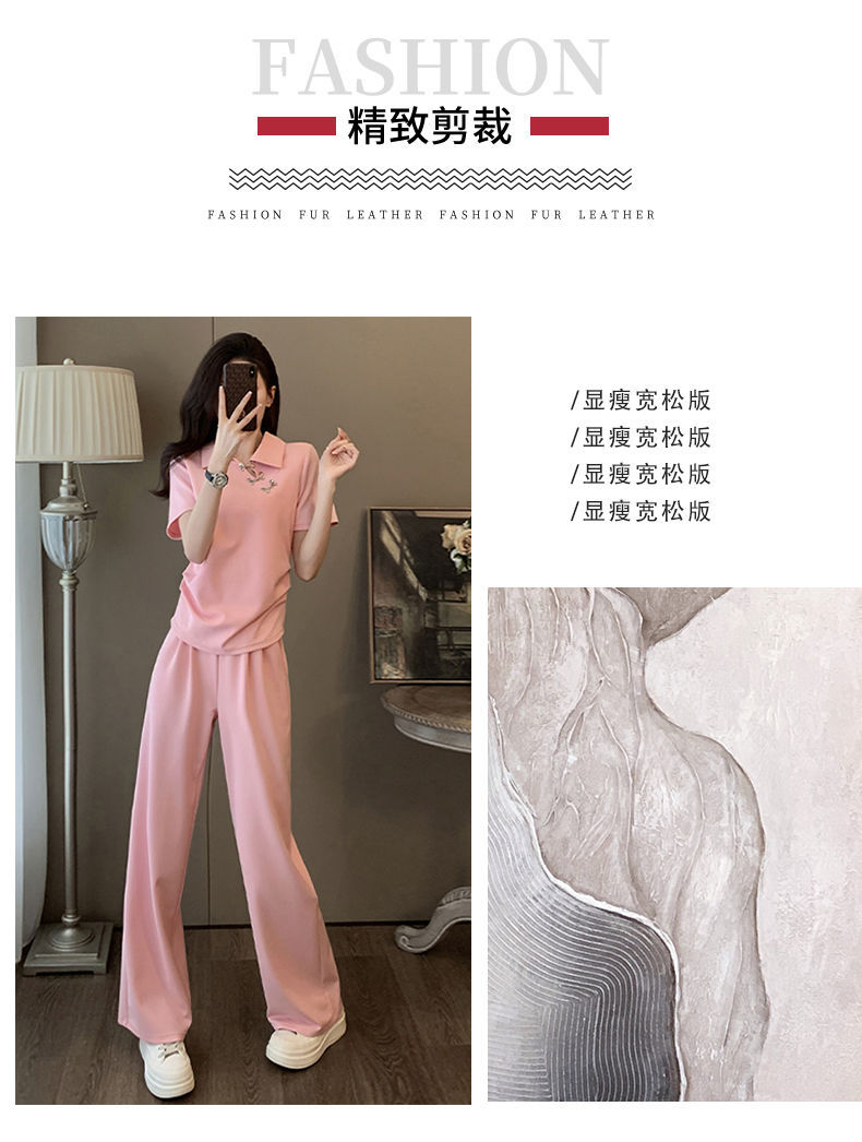 폭발적인 새로운 중국 스타일 국가 스타일 캐주얼 와이드 다리 바지 세트 여신 여름 패션 연령 감소 슬리밍 스포츠 투피스 세트스토어 가기