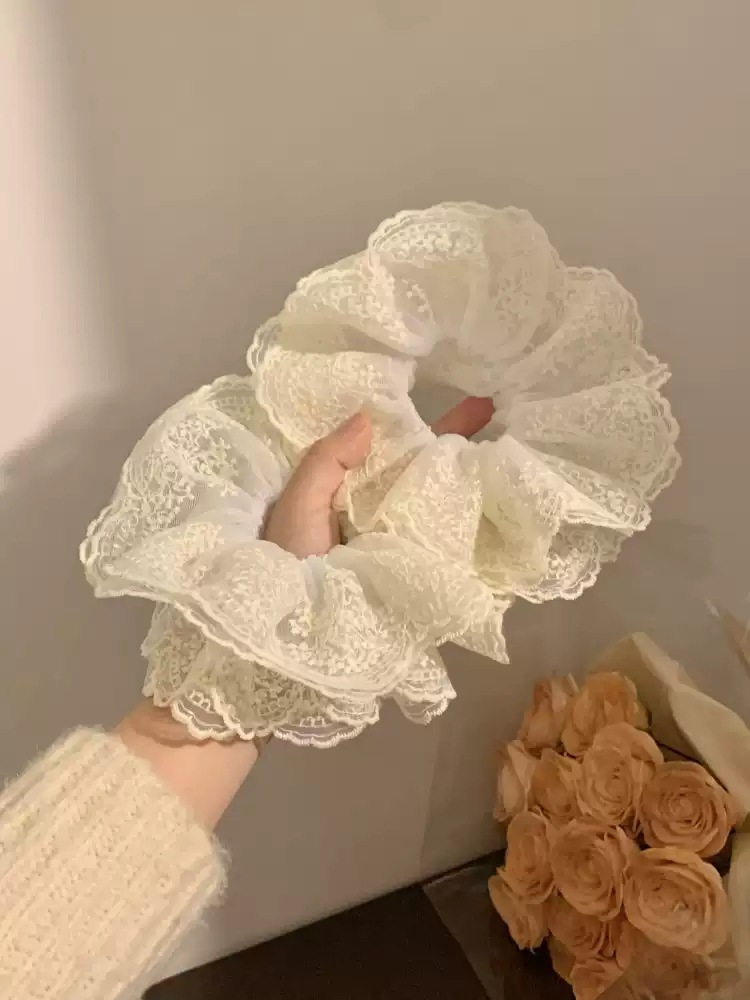 여름 큰 흰색 레이스 큰 내장 헤어 링 여성의 하이 엔드 게으른 스타일 헤어 볼 헤어 로프 헤드웨어스토어 가기