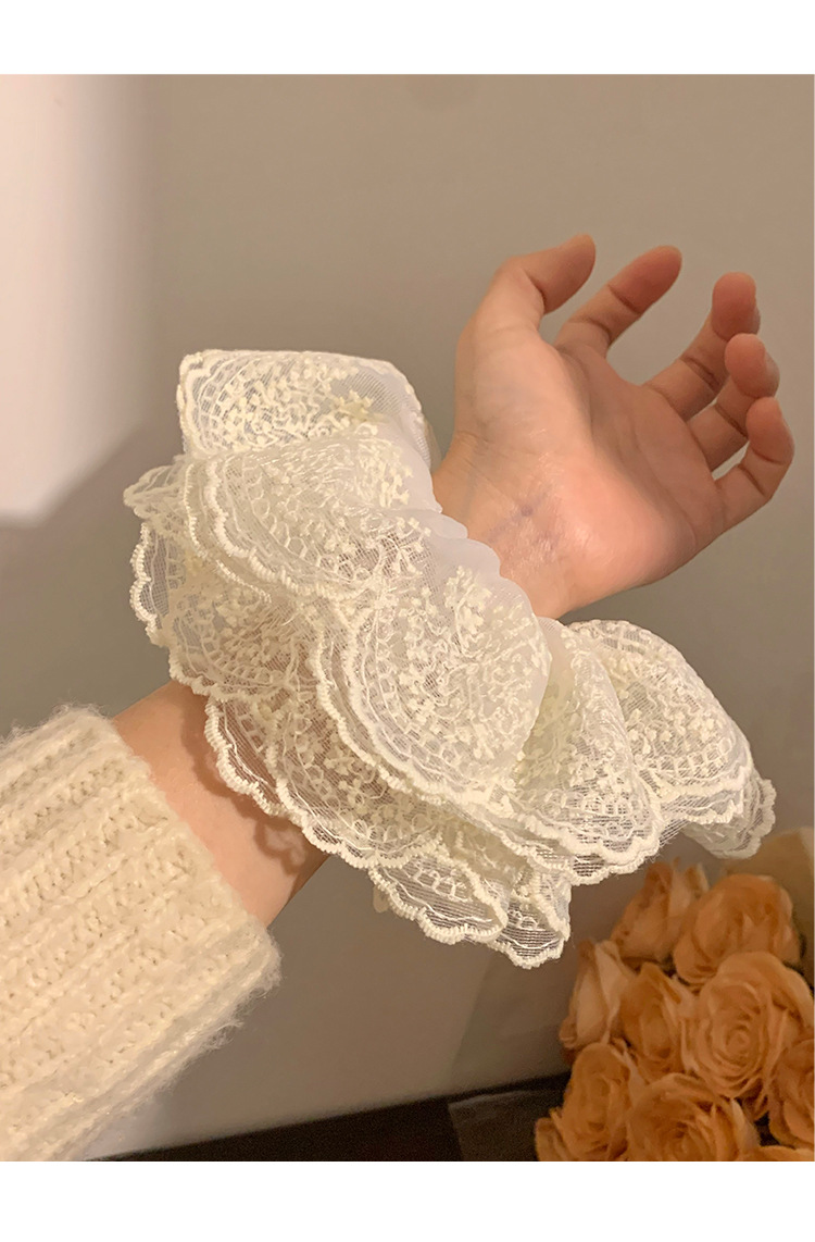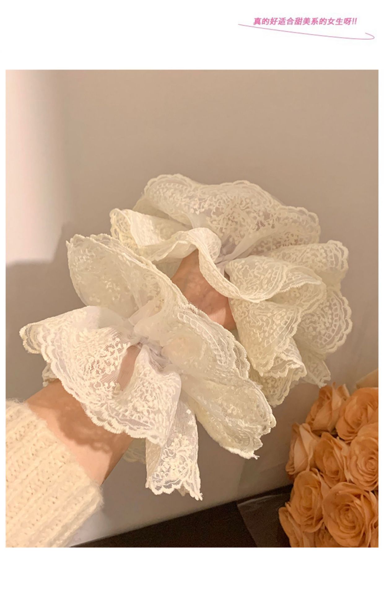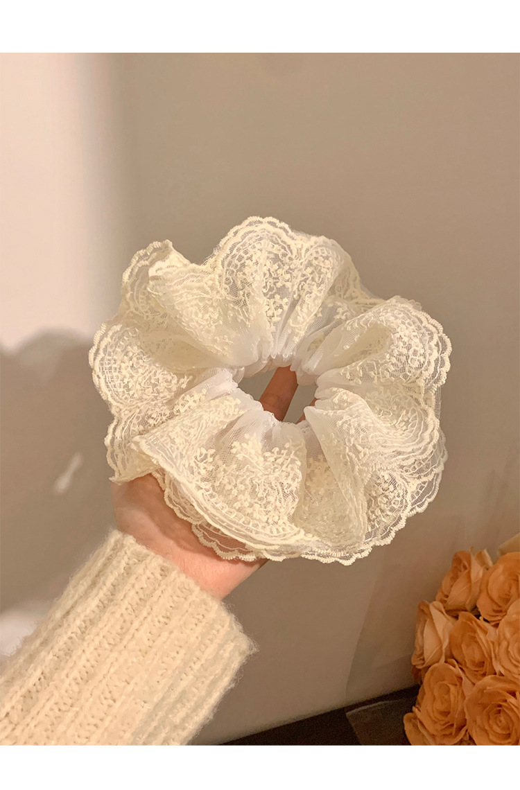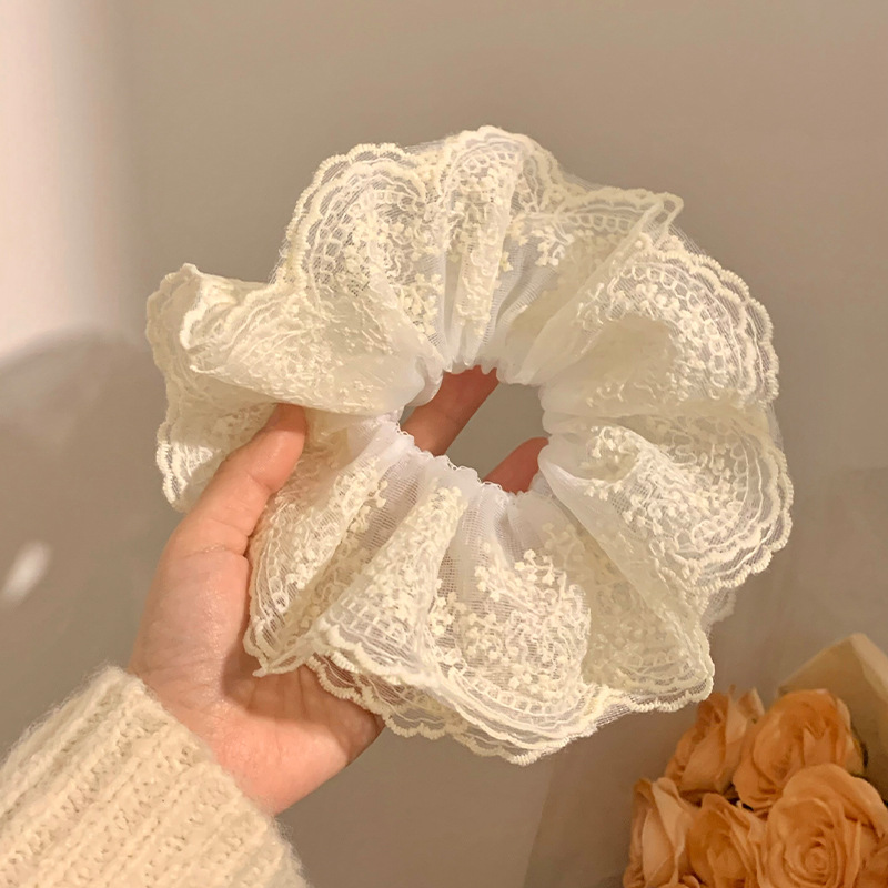 여름 큰 흰색 레이스 큰 내장 헤어 링 여성의 하이 엔드 게으른 스타일 헤어 볼 헤어 로프 헤드웨어