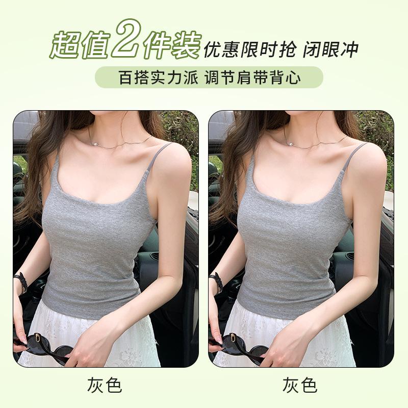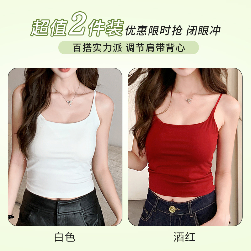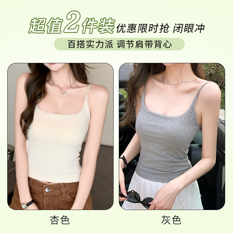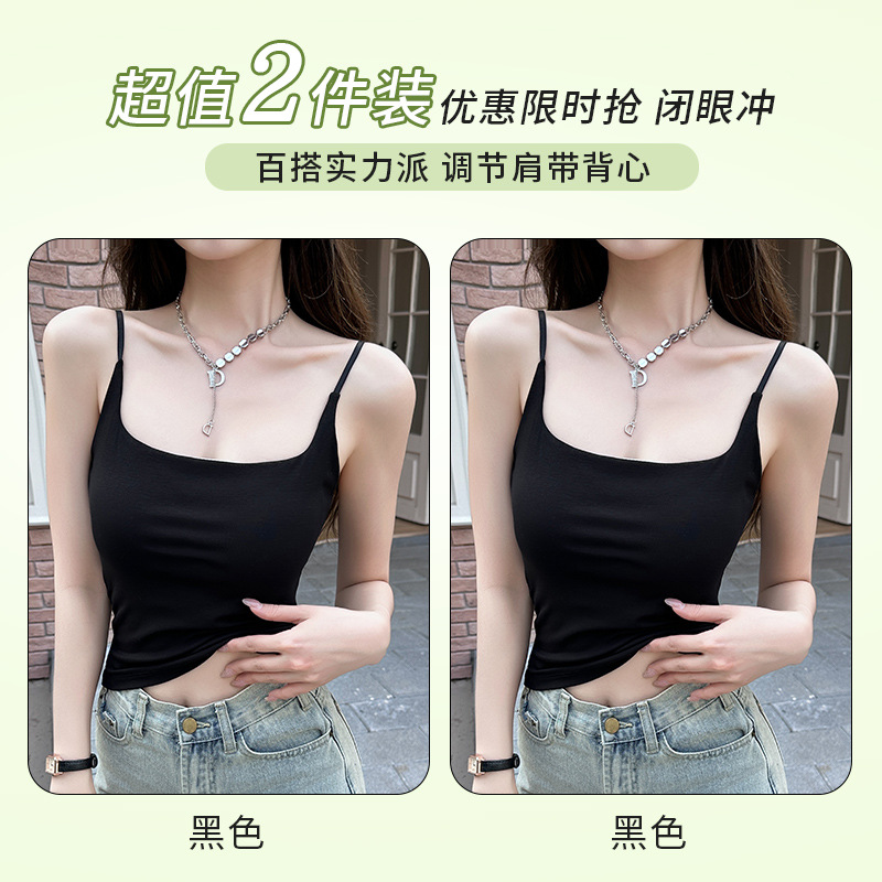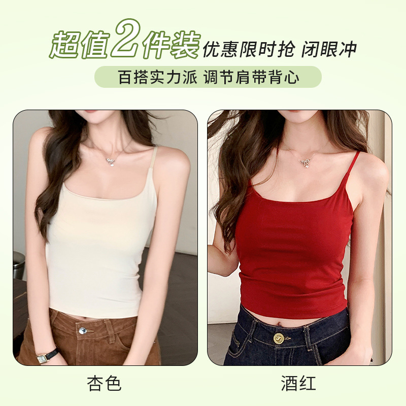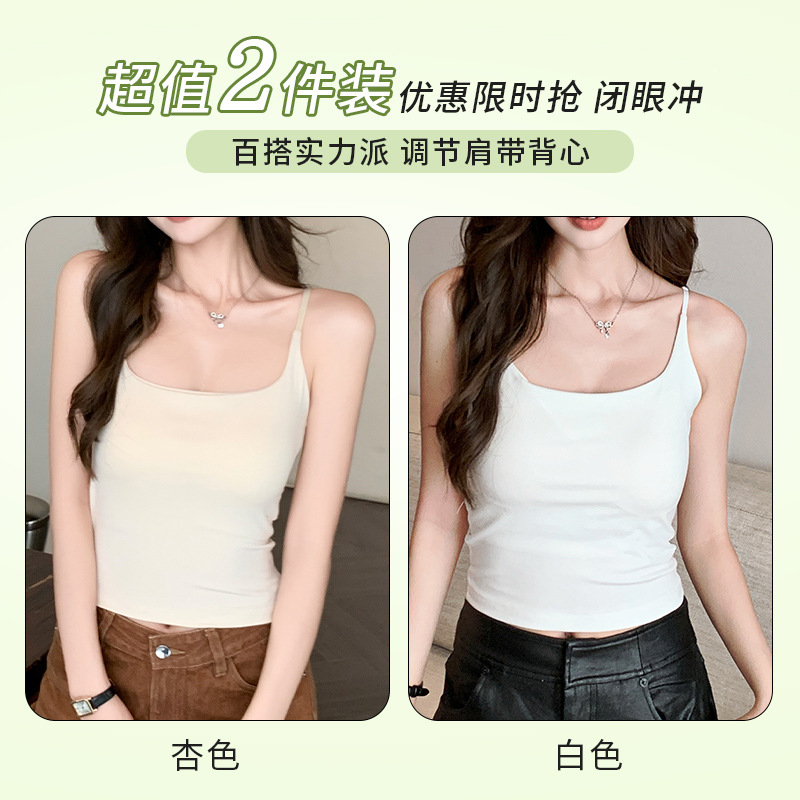 작은 Camisole 여성의 조정 가능한 여름 2025 새로운 스타일 내부 패딩 가슴 패드베이스 슬림핏 속옷 외복 탑스토어 가기