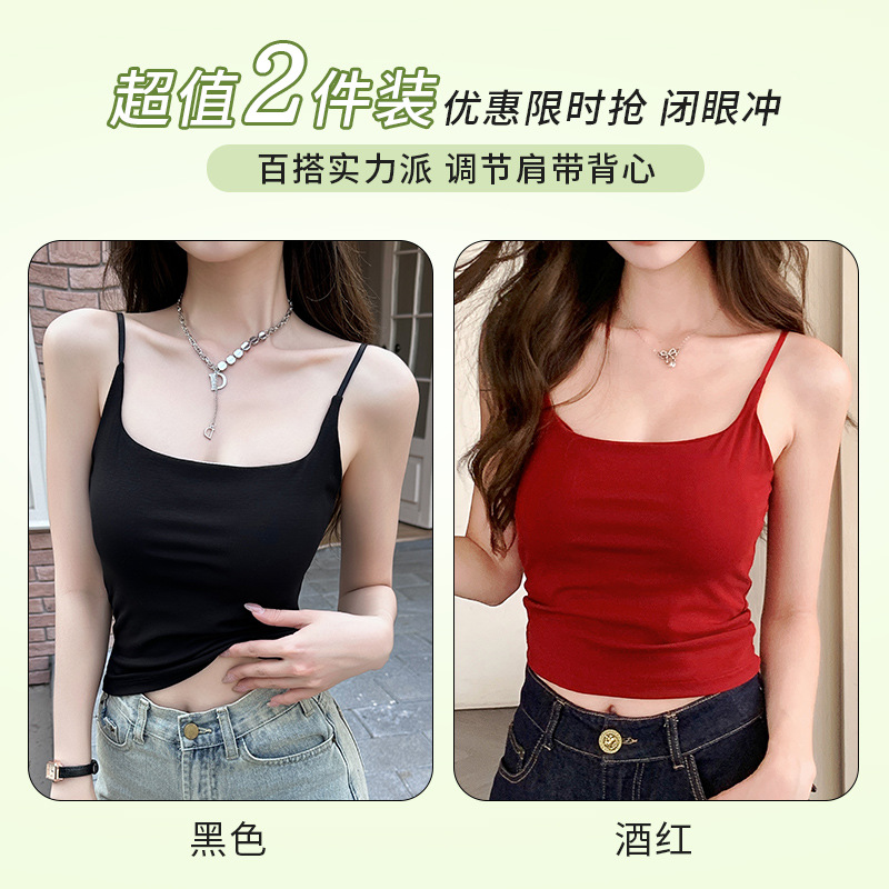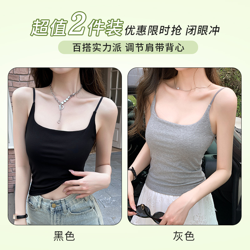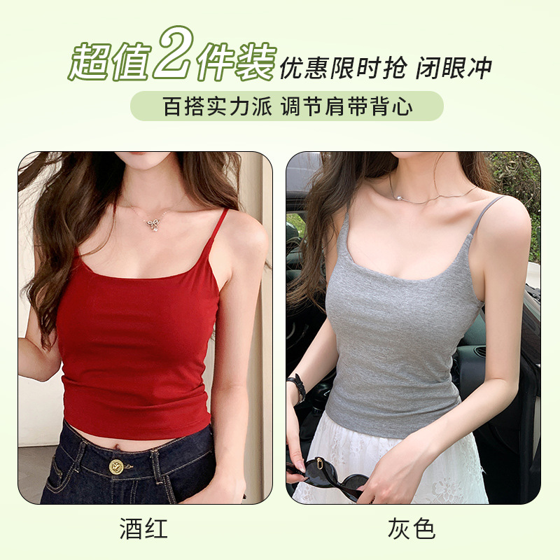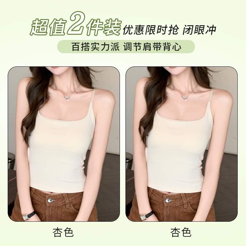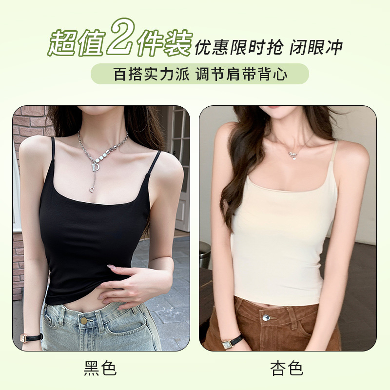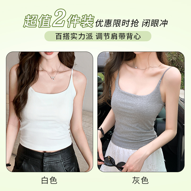 작은 Camisole 여성의 조정 가능한 여름 2025 새로운 스타일 내부 패딩 가슴 패드베이스 슬림핏 속옷 외복 탑스토어 가기