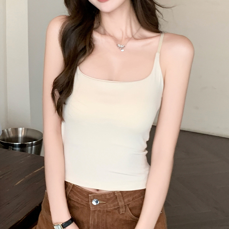 작은 Camisole 여성의 조정 가능한 여름 2025 새로운 스타일 내부 패딩 가슴 패드베이스 슬림핏 속옷 외복 탑