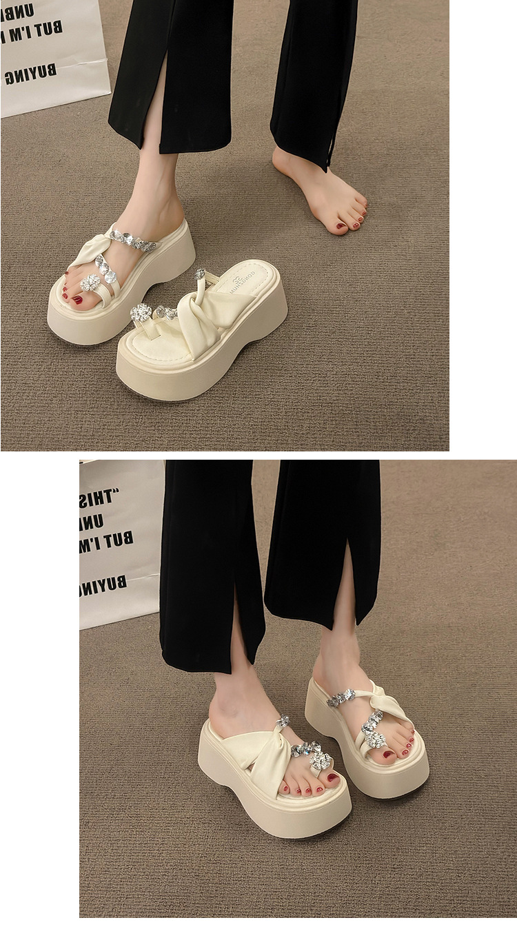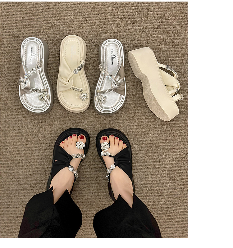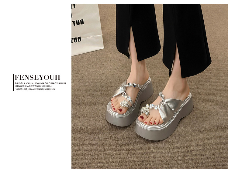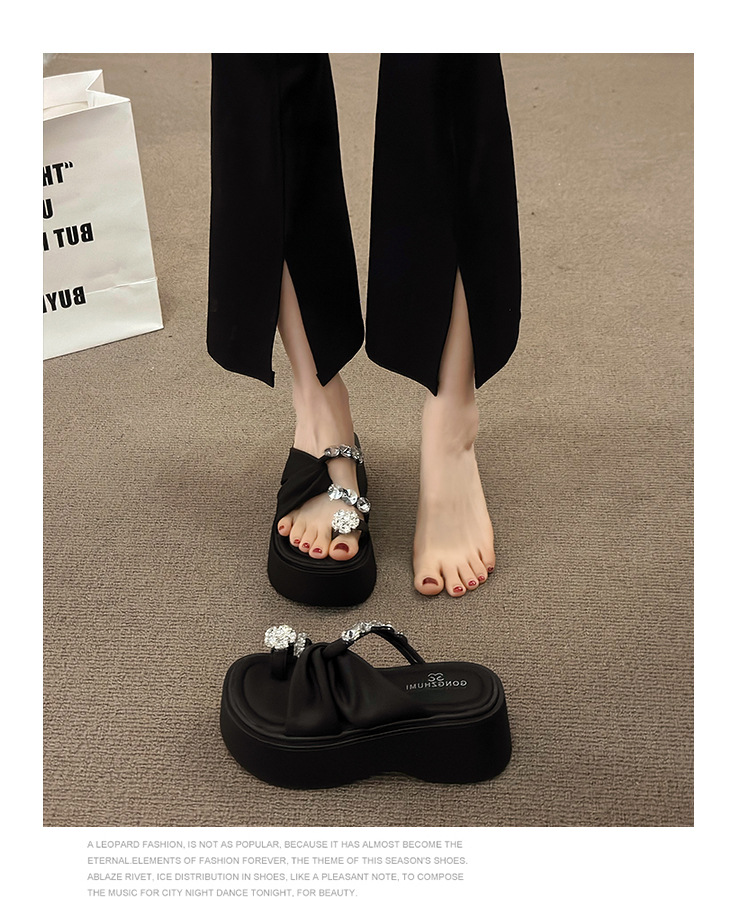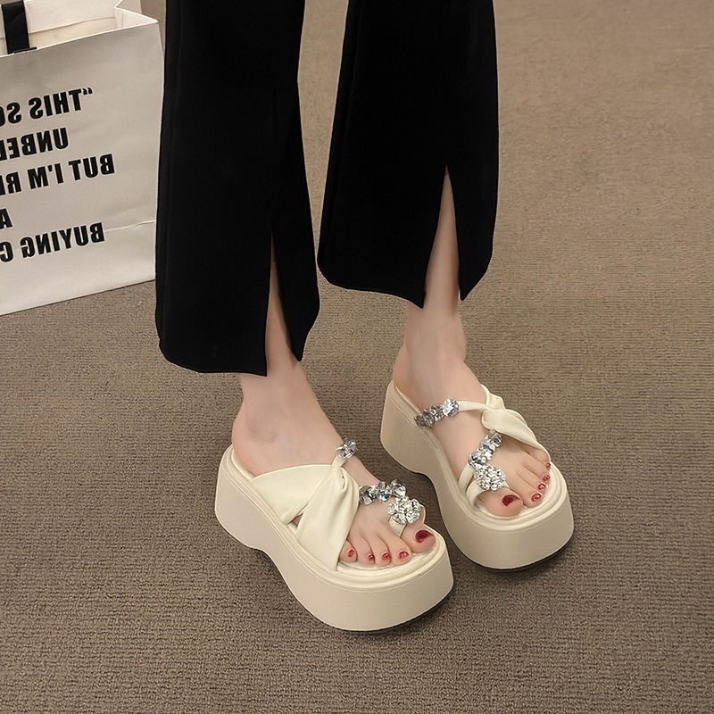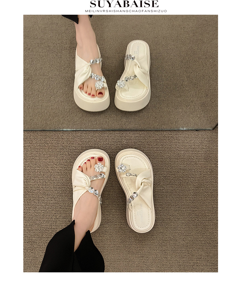 여성을위한 한국 스타일 패션 라인 석 슬리퍼 2024 새로운 요정 스타일 두꺼운 밑창 스커트 샌들와 해변스토어 가기