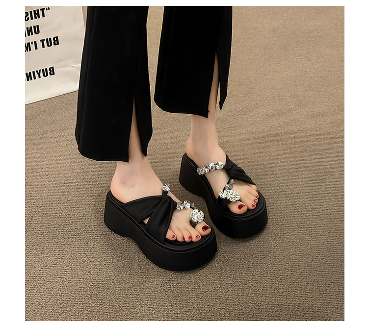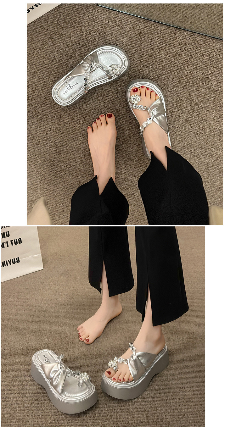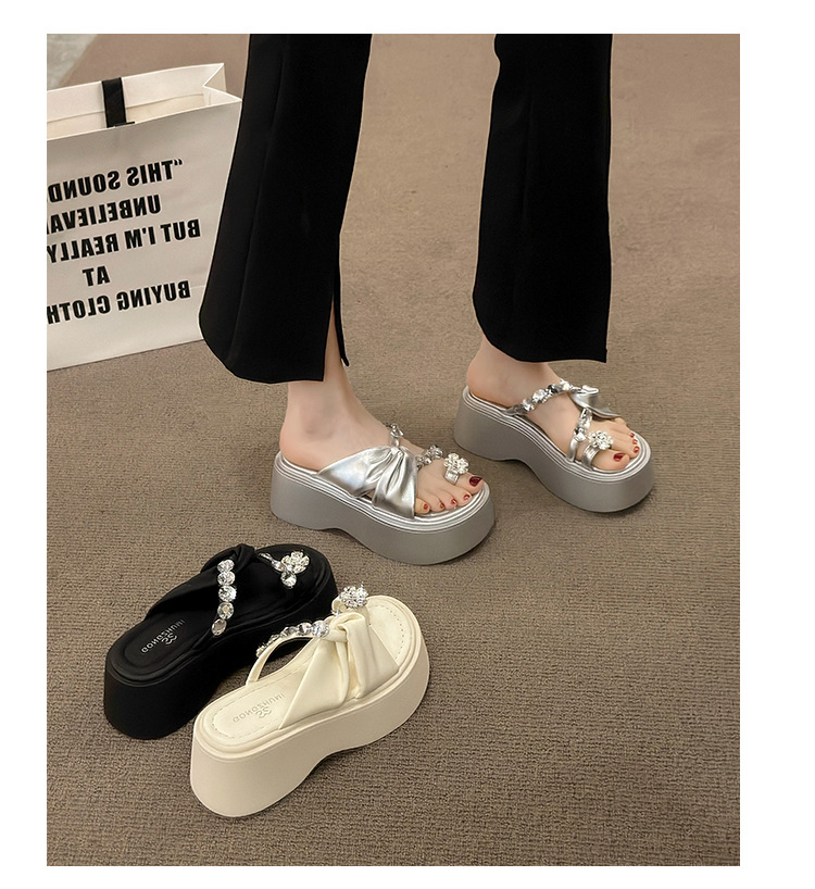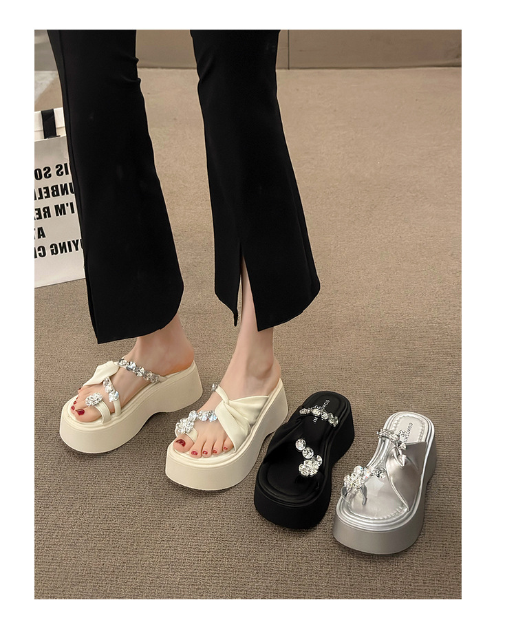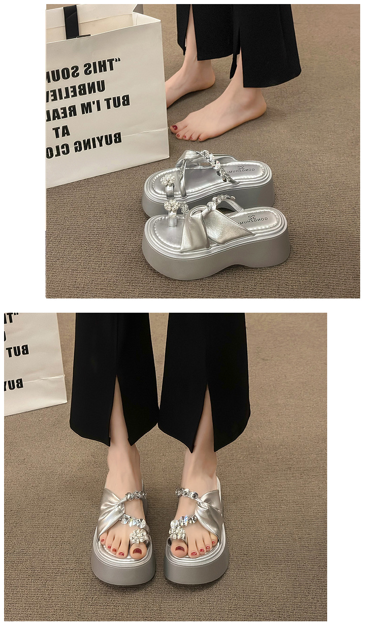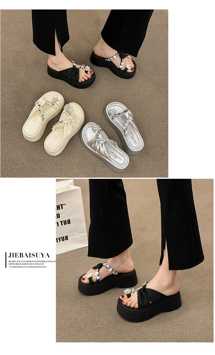 여성을위한 한국 스타일 패션 라인 석 슬리퍼 2024 새로운 요정 스타일 두꺼운 밑창 스커트 샌들와 해변스토어 가기