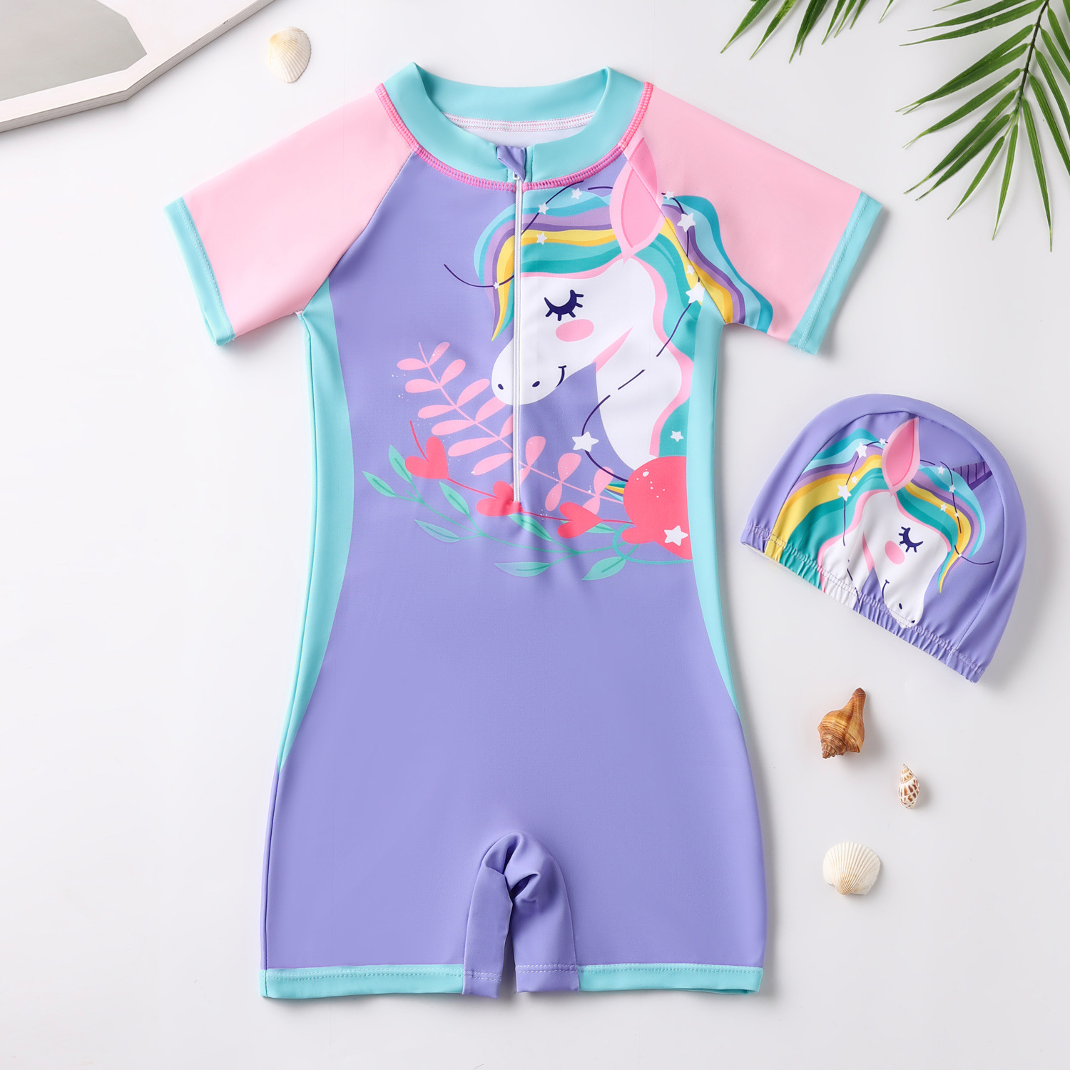 • 보라색 무지개 말 원피스 (수영복+수영모)