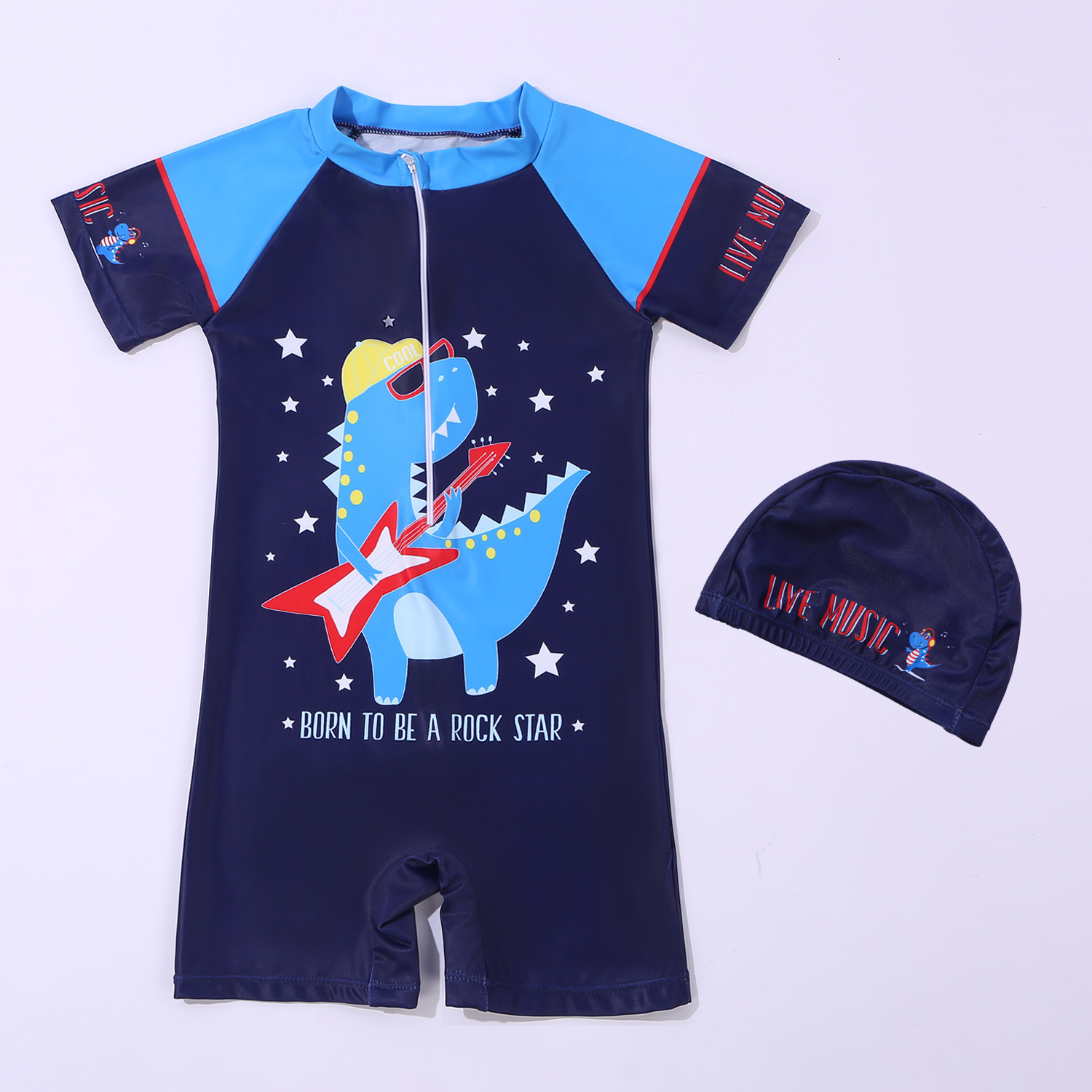 • 원피스 네이비 블루 공룡 (수영복 + 수영모)