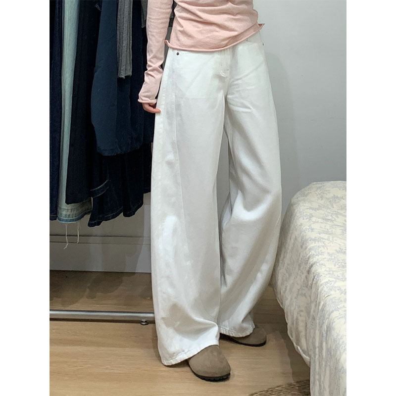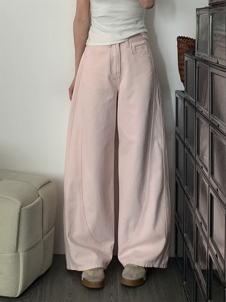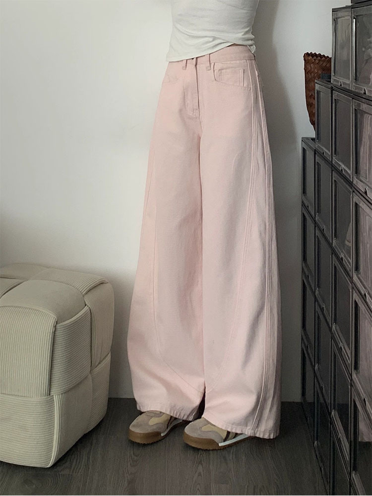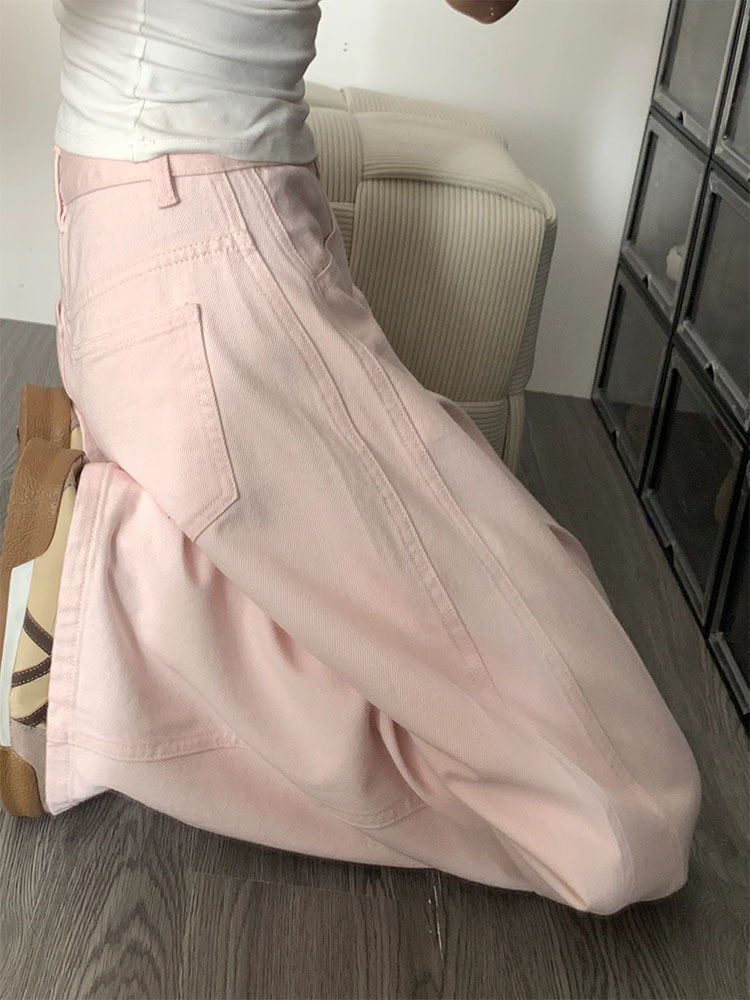 여성용 핑크 와이드 레그 청바지 2025 새로운 스타일 하이 웨이스트 슬림 루즈 스트레이트 레그 쁘띠 플러스 사이즈 뚱뚱한 mm 캐주얼 바지스토어 가기