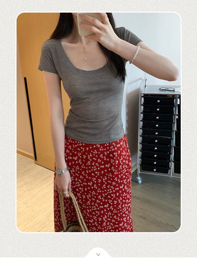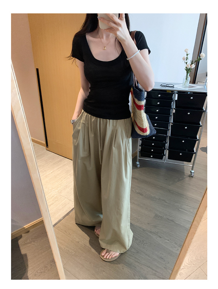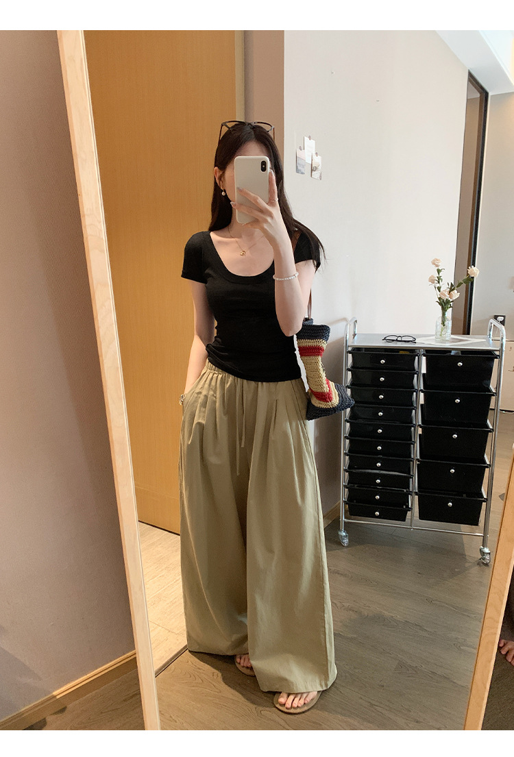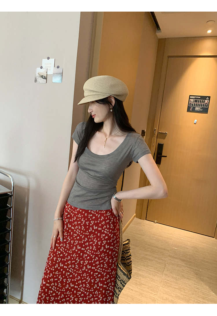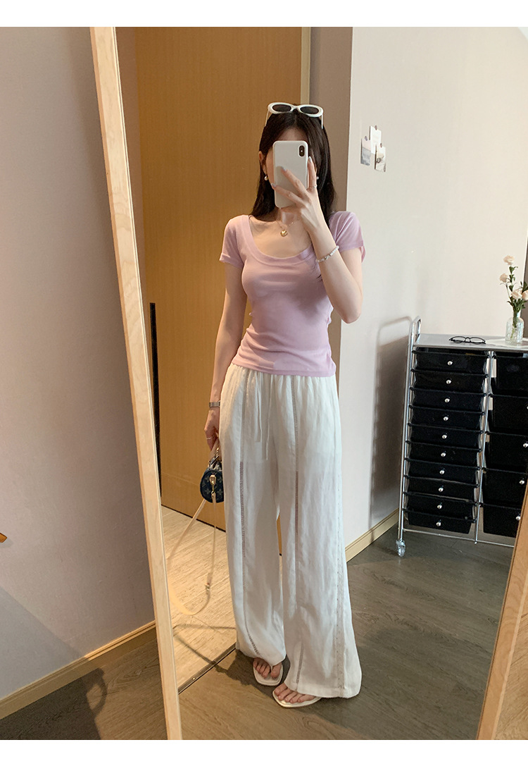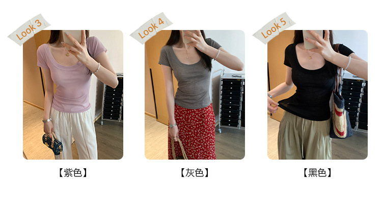 얇은 마이크로 투명 대형 라운드 넥 허리 반팔 티셔츠 여성 2025 년 여름 새로운 슬림 핏 슬리밍 올 매치 웨스턴 스타일 탑