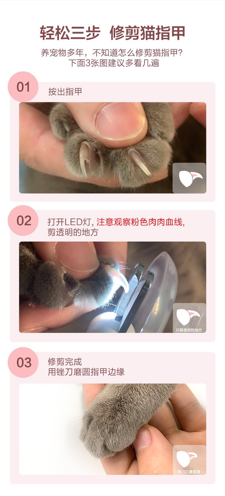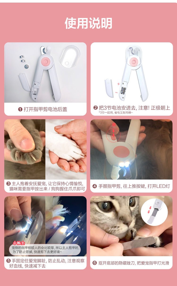 고양이 손톱깎이, 손톱깎이, 강아지 손톱깎이, 애완동물 손톱깎이, LED 조명, 혈액 방지 매니큐어 용품스토어 가기