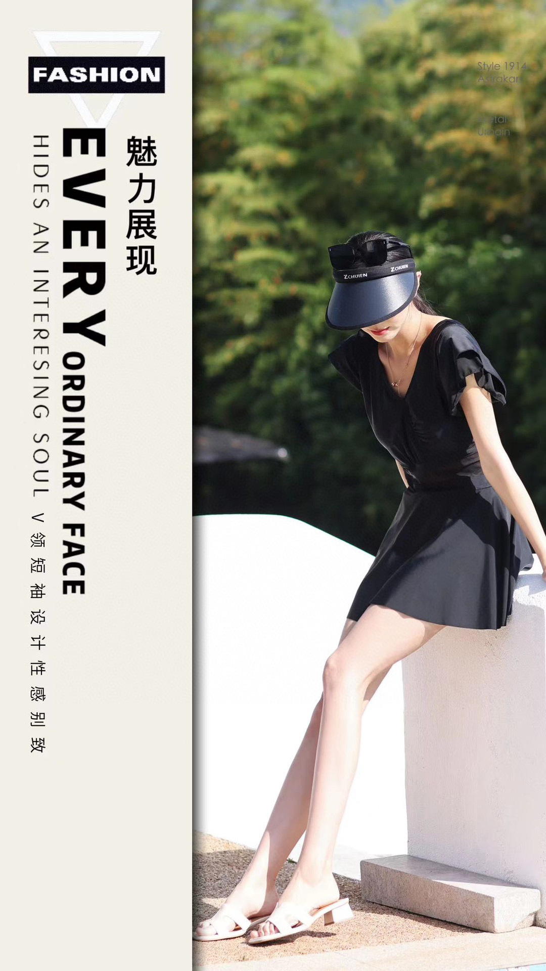 여름 여성용 원피스 복서 스커트 수영복, 배 커버, 슬리밍, 온천 수영, 보수적 단색 플러스 사이즈 섹시 수영복스토어 가기
