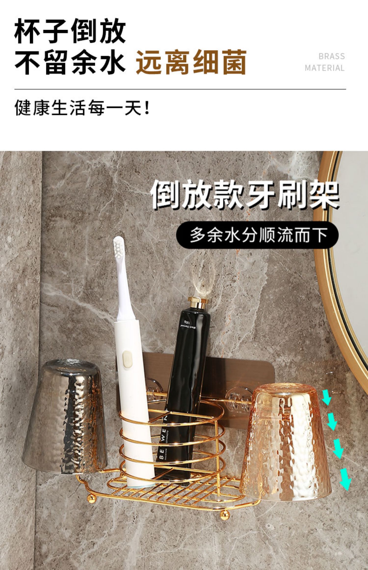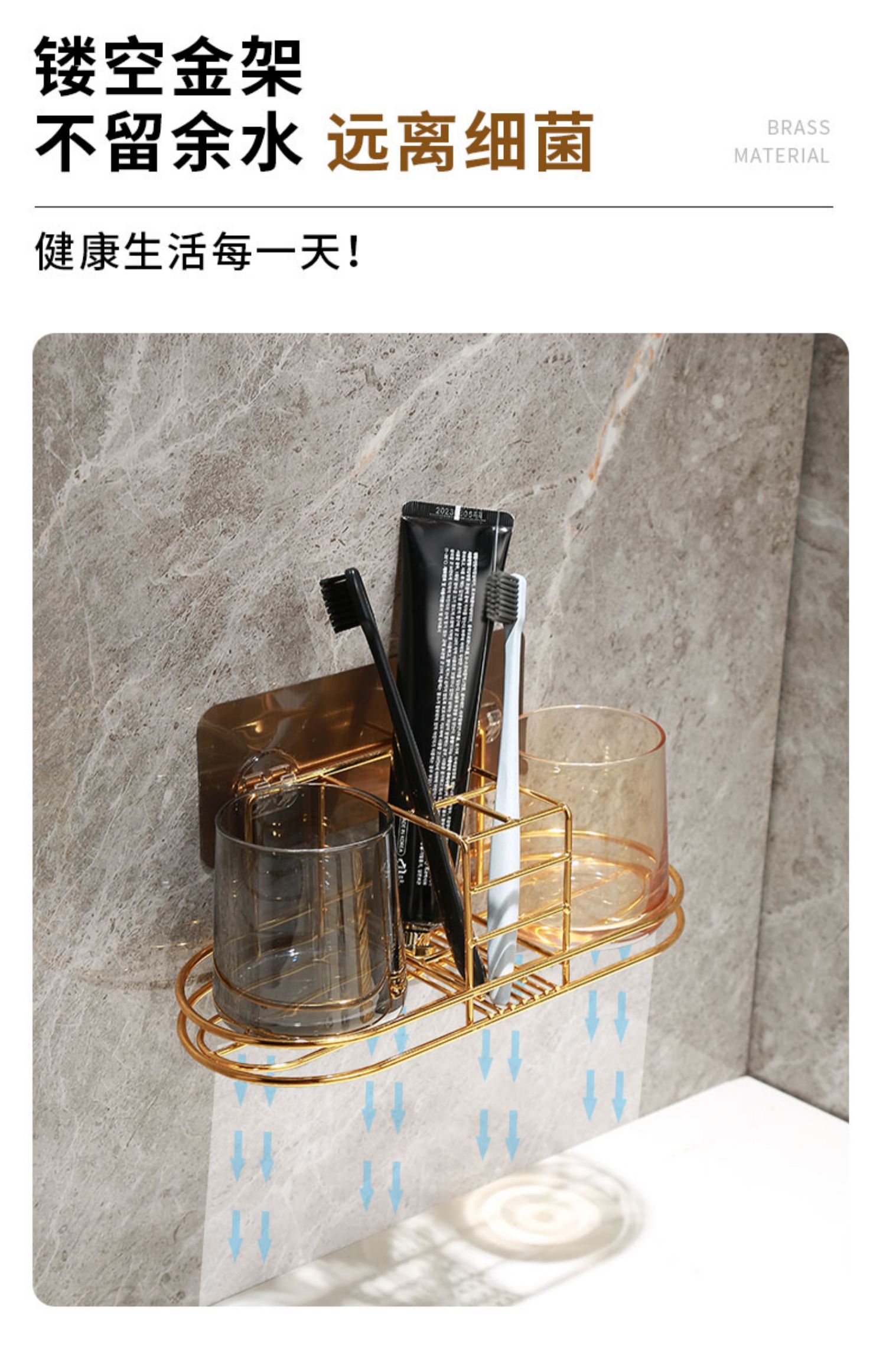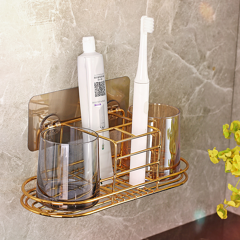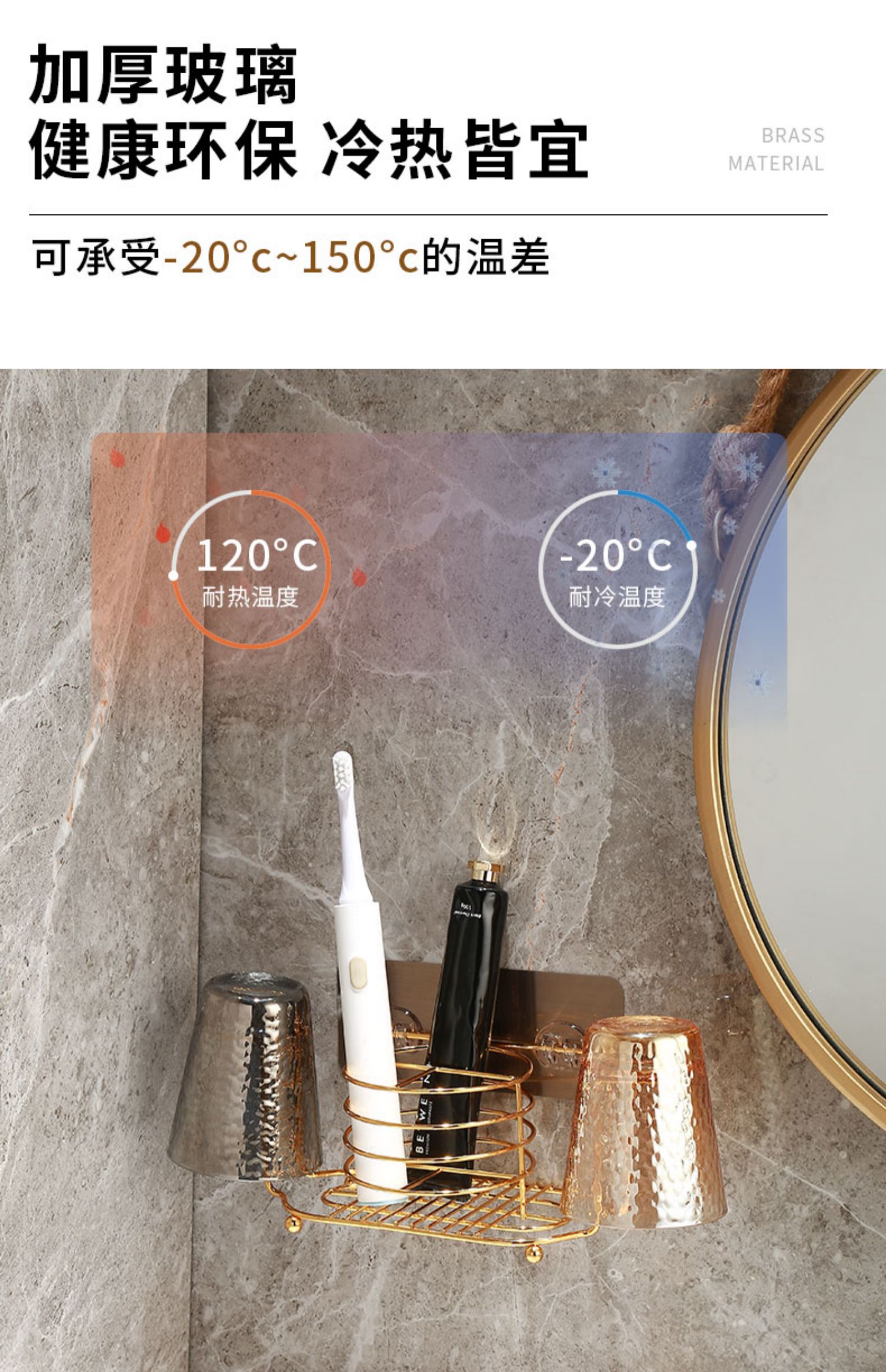 칫솔걸이, 벽걸이형, 구멍없는 욕실수납, 유리구강세정컵, 칫솔컵세트, 라이트 럭셔리