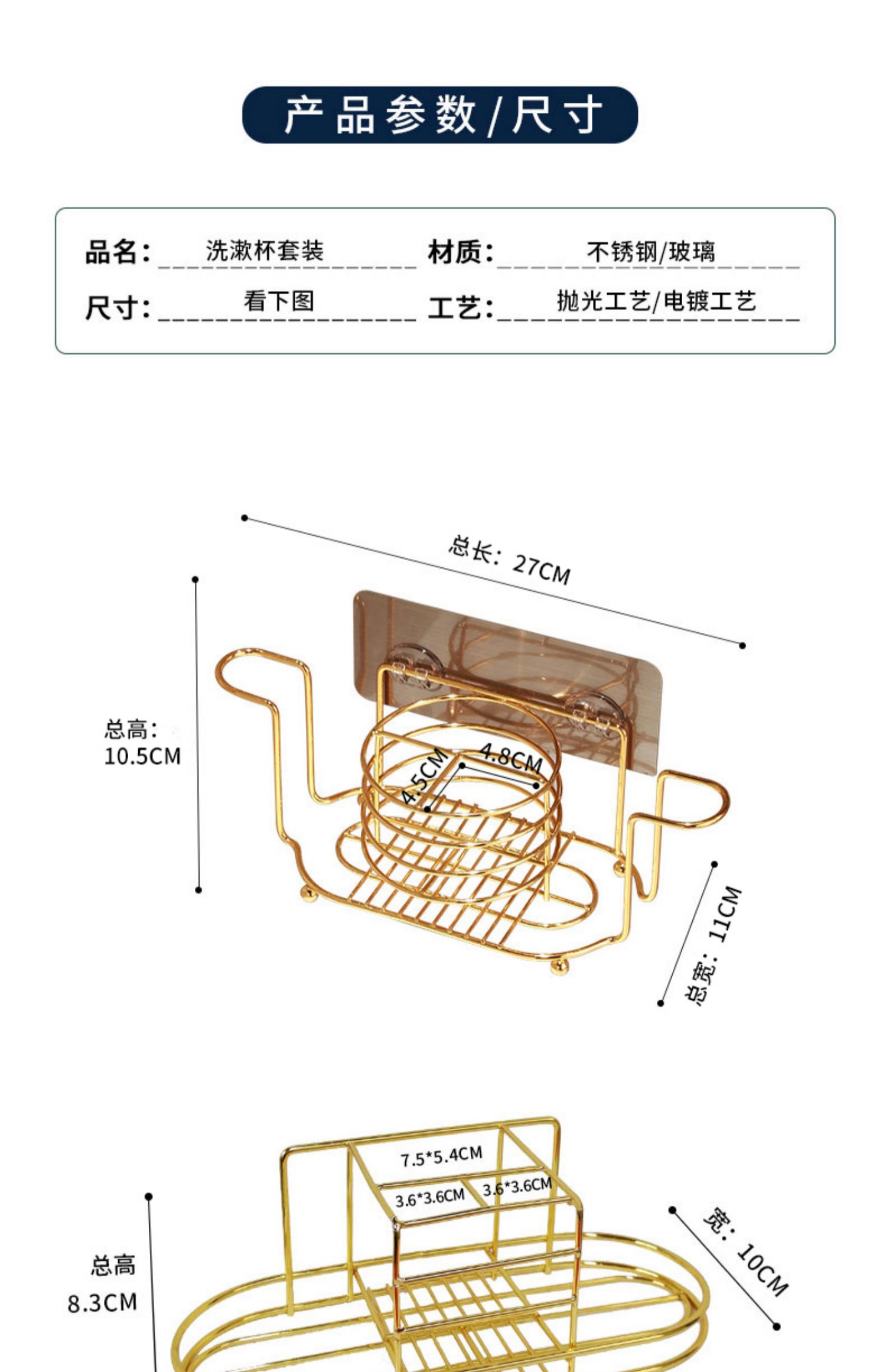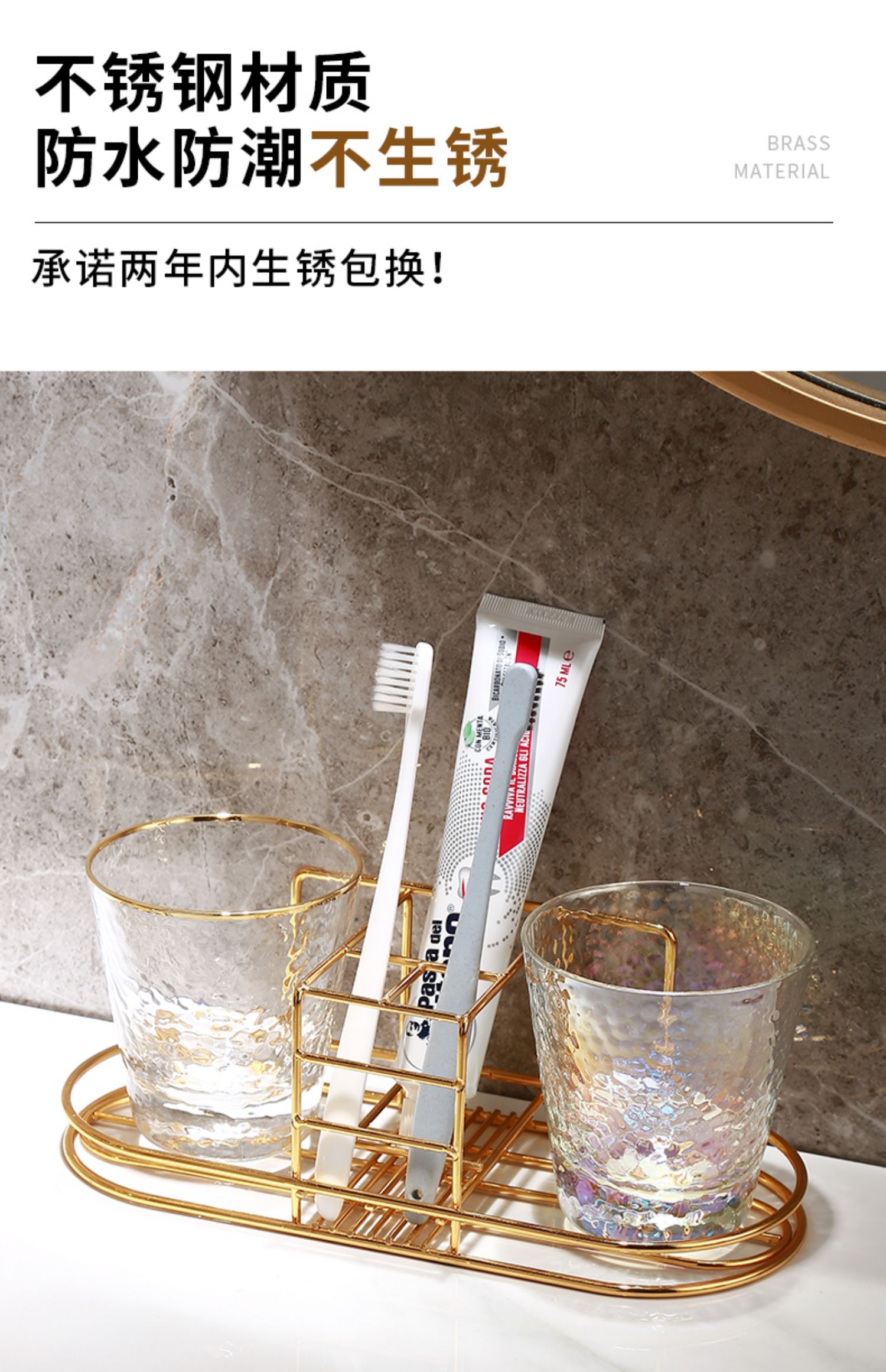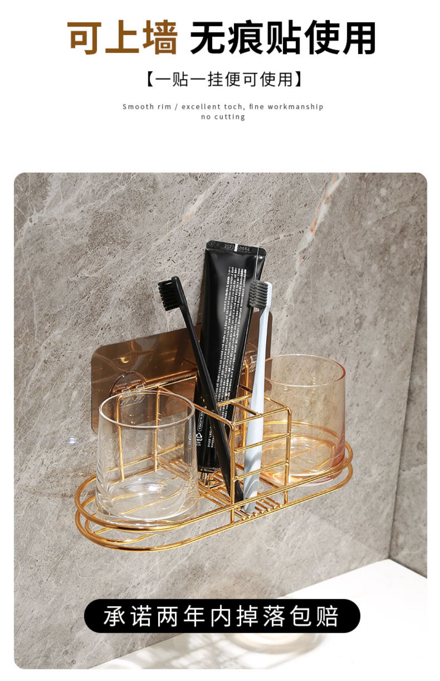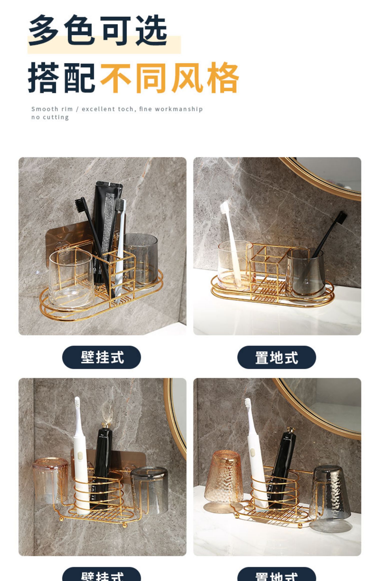 칫솔걸이, 벽걸이형, 구멍없는 욕실수납, 유리구강세정컵, 칫솔컵세트, 라이트 럭셔리