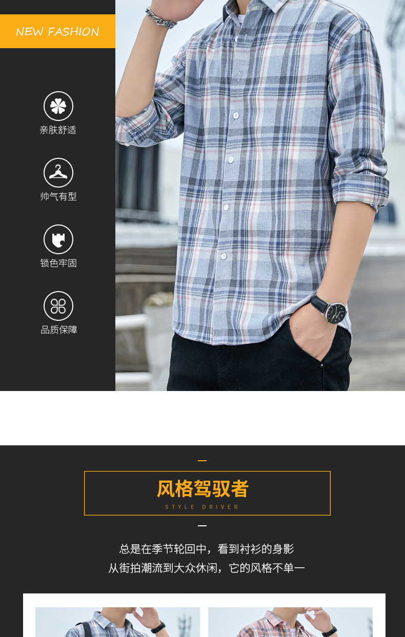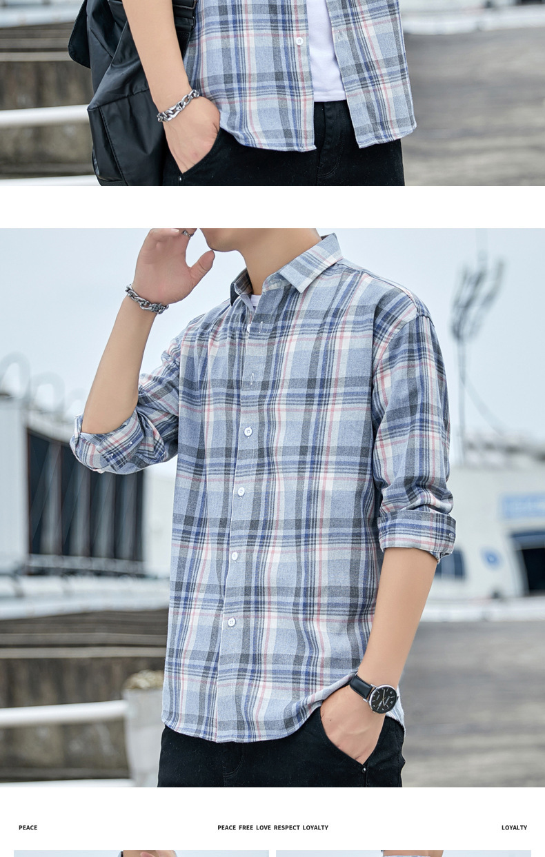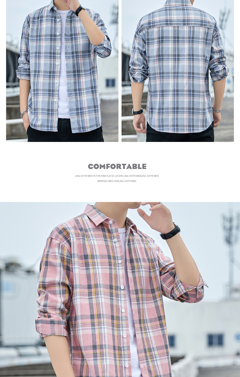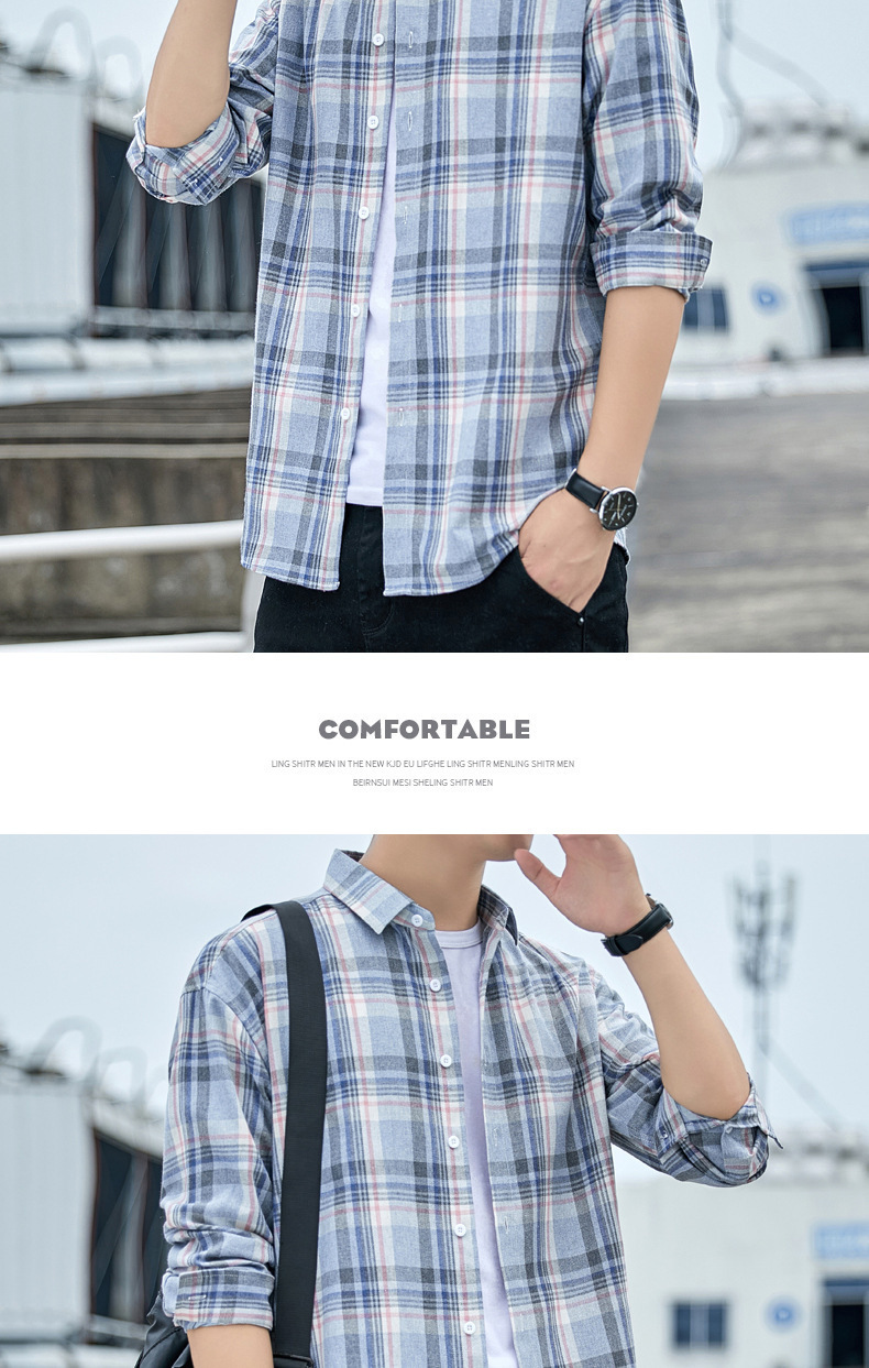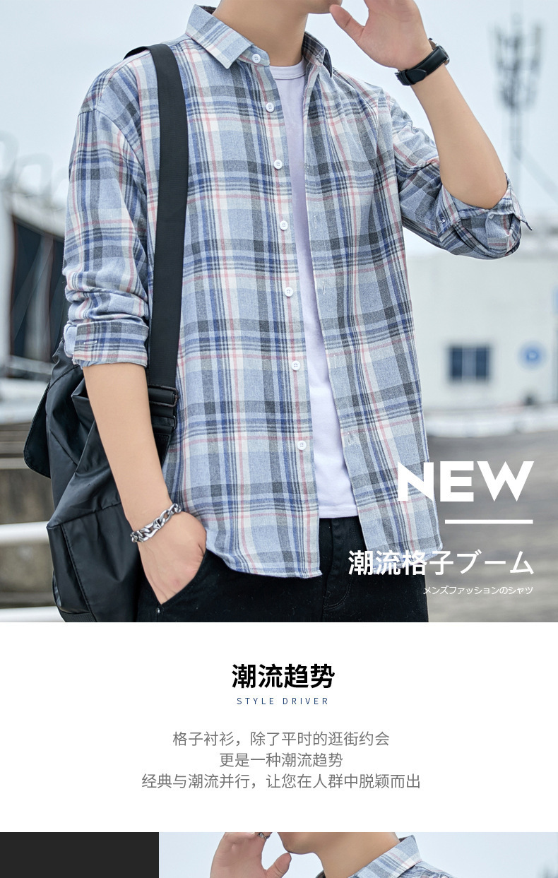 韩版格子潮流长袖衬衣2023时尚新品棉质透气上衣小清新休闲男衬衫