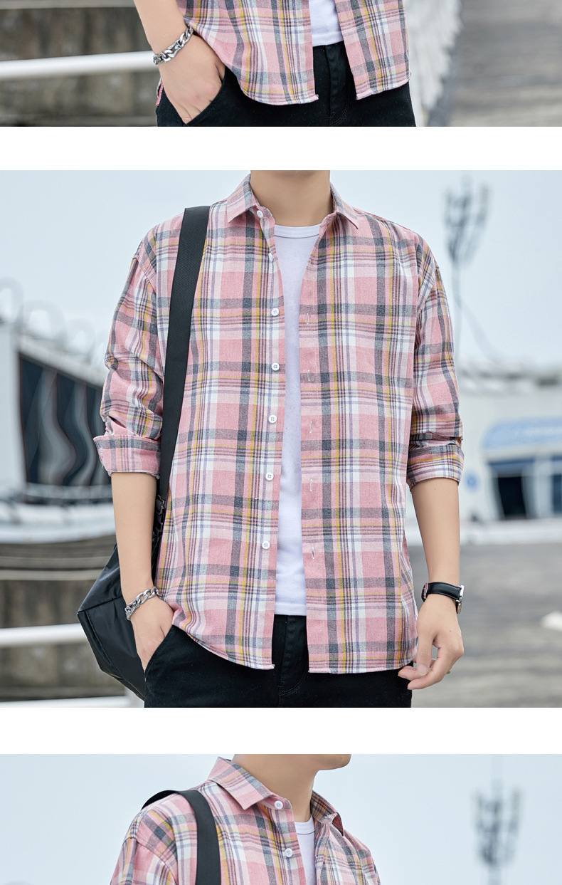 한국 스타일 격자 무늬 유행 긴팔 셔츠 2024 패션 신상품 코튼 통기성 탑 작은 신선한 캐주얼 남성 셔츠스토어 가기