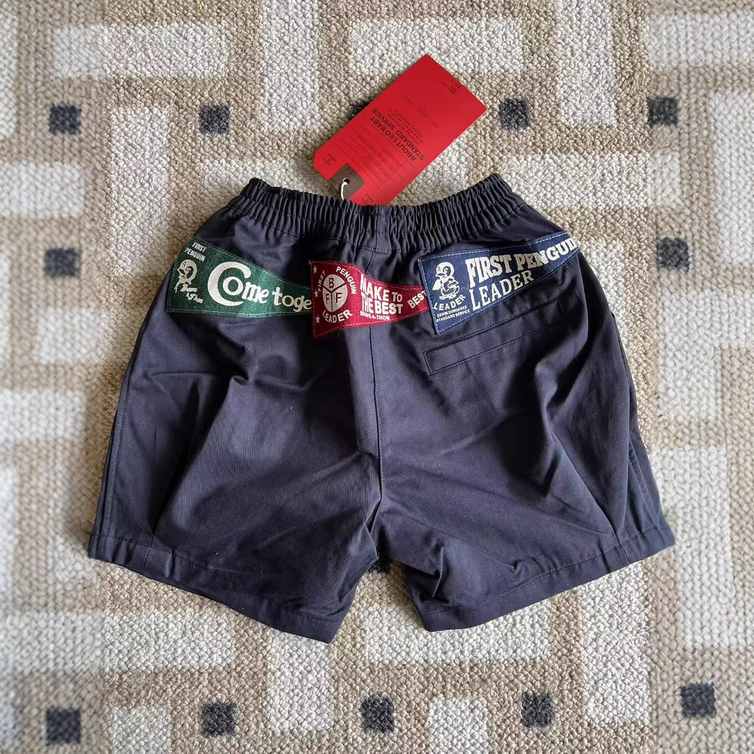 일본 아동복 2025 여름 새로운 삼각형 깃발 펭귄 배지 주름 도구 반바지