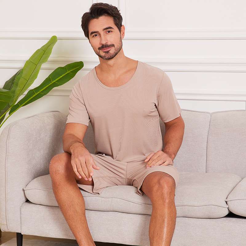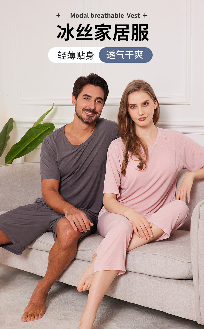 아이스 실크 애호가 세트 가슴 패드가있는 여성의 여름은 간단한 짧은 소매 애호가 홈 의류 도매에 착용 할 수 있습니다.스토어 가기